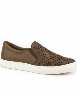 Roper Women’s Burnished Perforated Vamp Western Shoes – Round Toe Tan