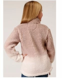 Roper Girls’ Ombre Sherpa 1/4 Zip Pullover Sweater Pink