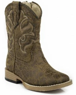Roper Toddler Boys’ Daniel Distressed Saddle Vamp Cowboy Boots – Square Toe For Toddler-Boys’ Brown