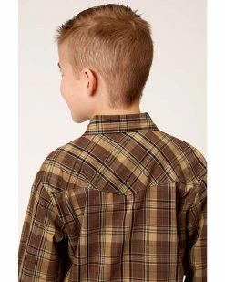 Roper Boys’ Amarillo Plaid Print Long Sleeve Western Snap Shirt Multi