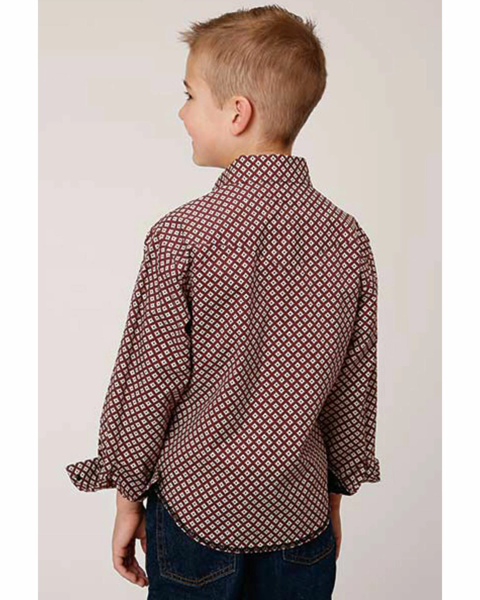 Roper Boys’ Diamond Print Snap Long Sleeve Wine Shirt
