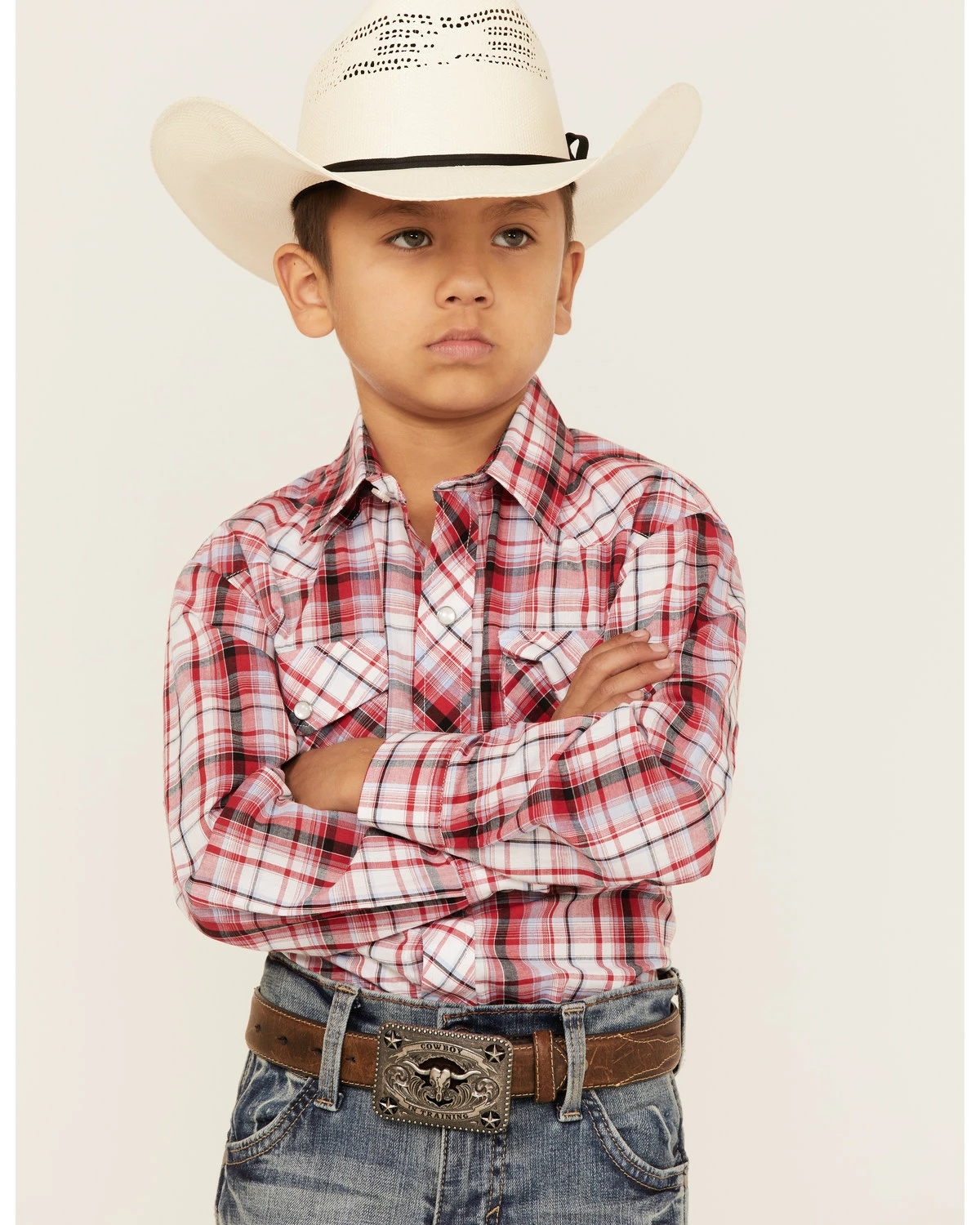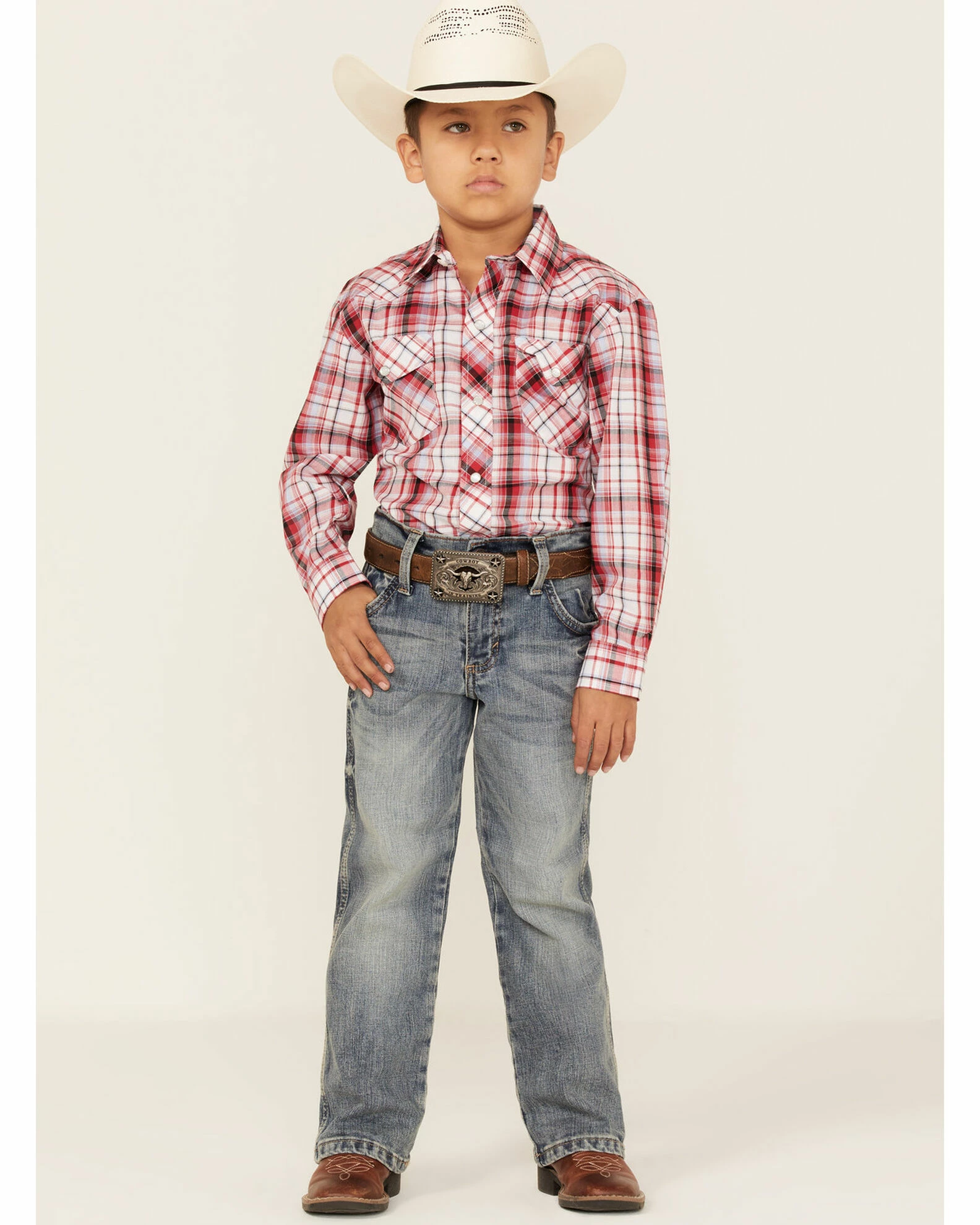 Roper Boys’ Plaid Print Long Sleeve Shirt Red