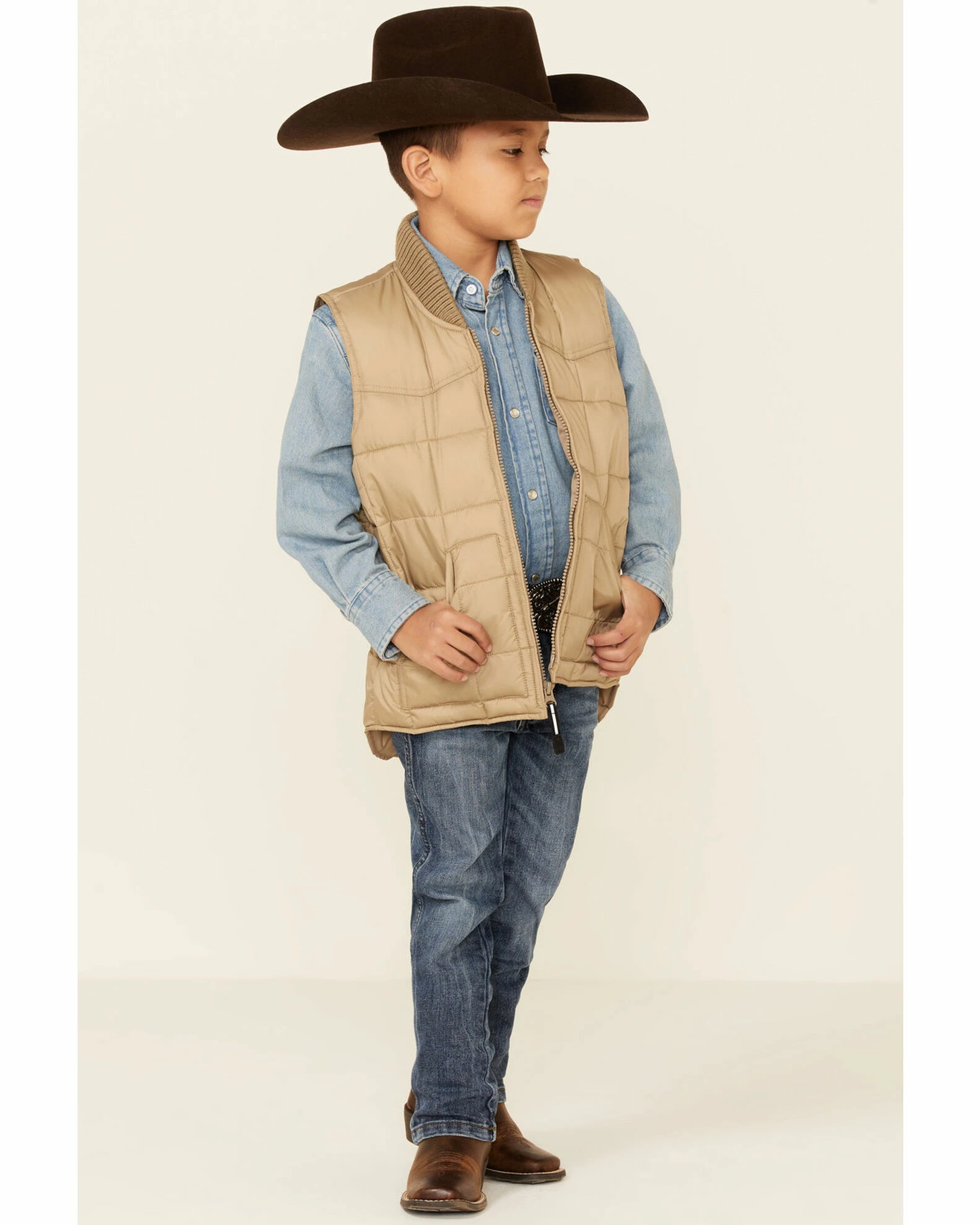 Roper Boys’ Tan Rangewear Down Zip Front Vest