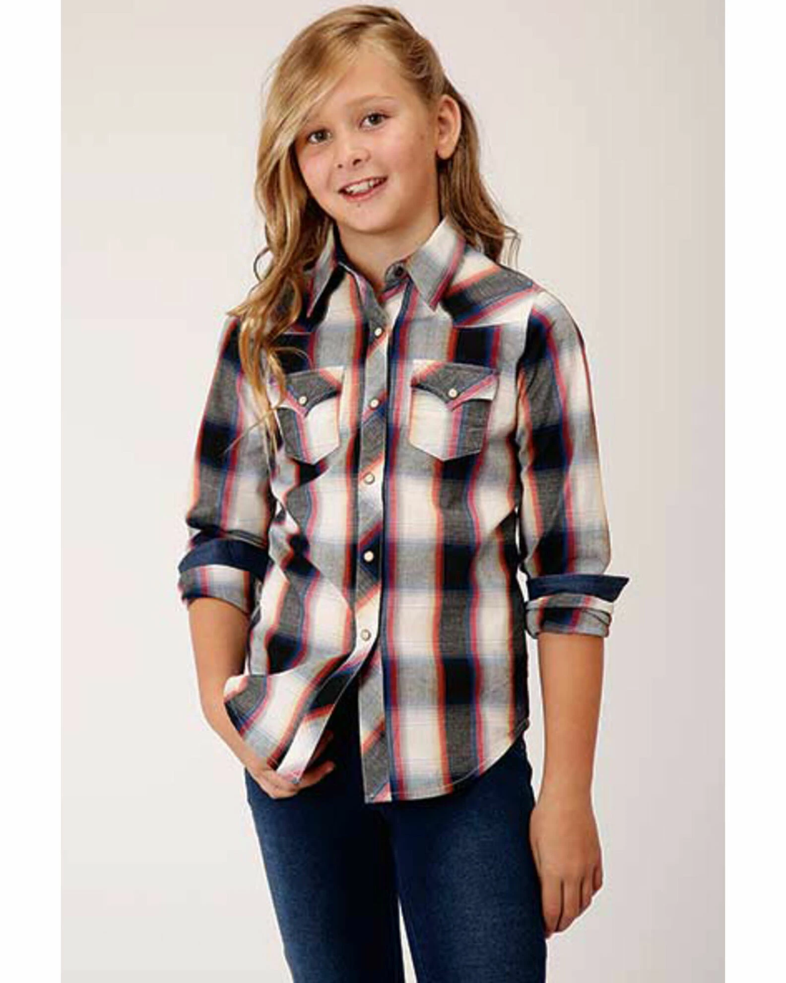 Roper Girls’ Black Ombre Plaid Long Sleeve Snap Western Shirt