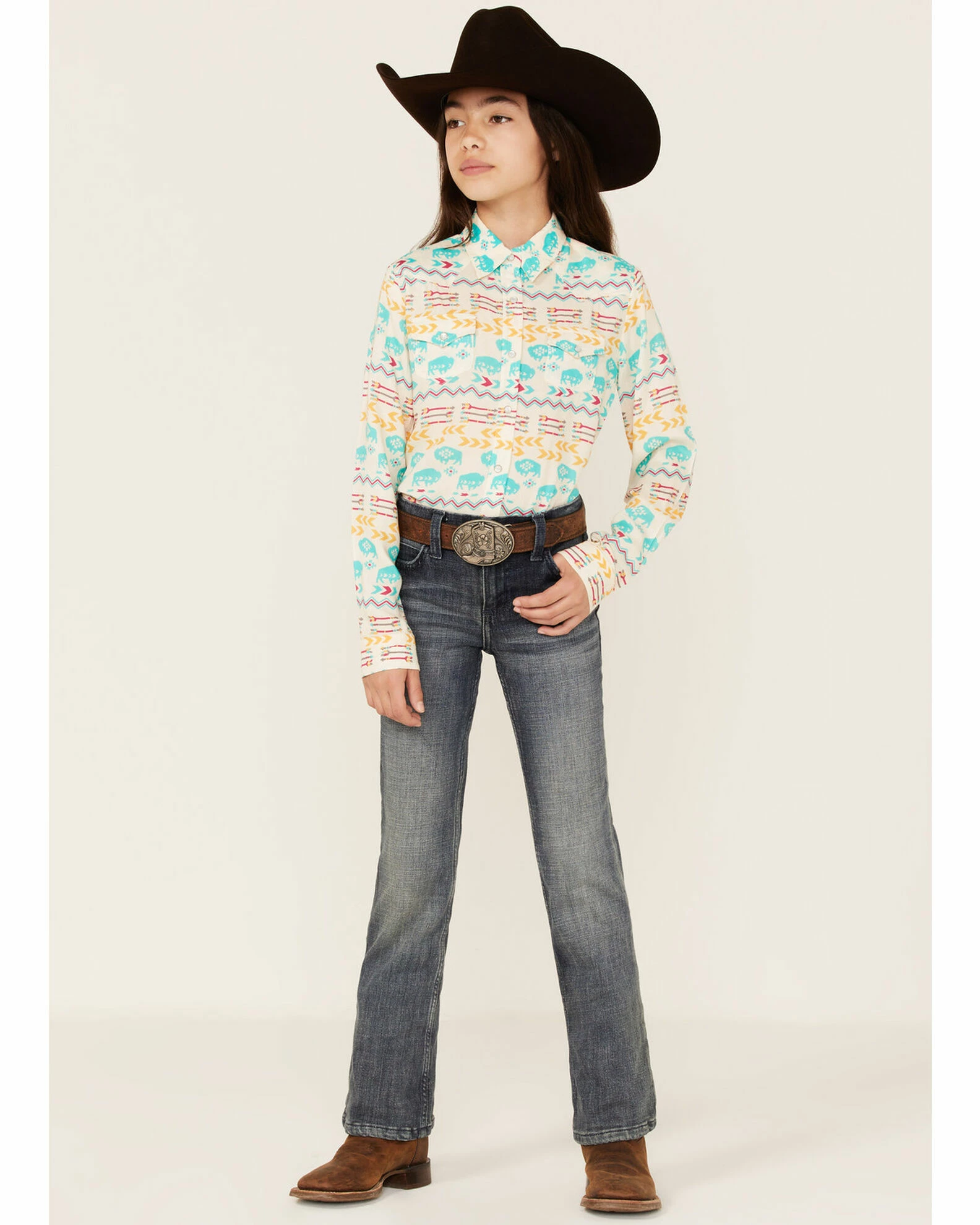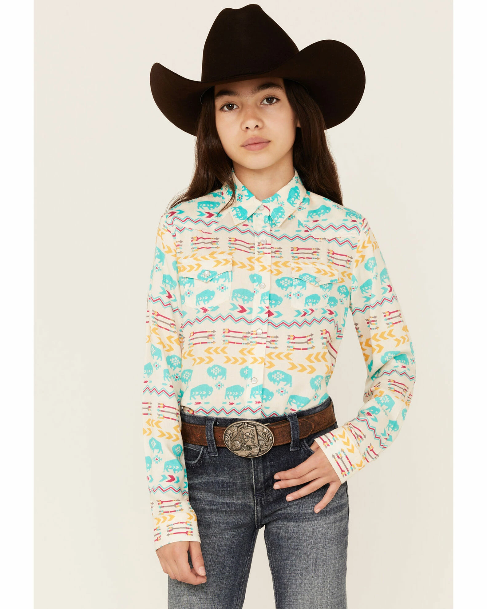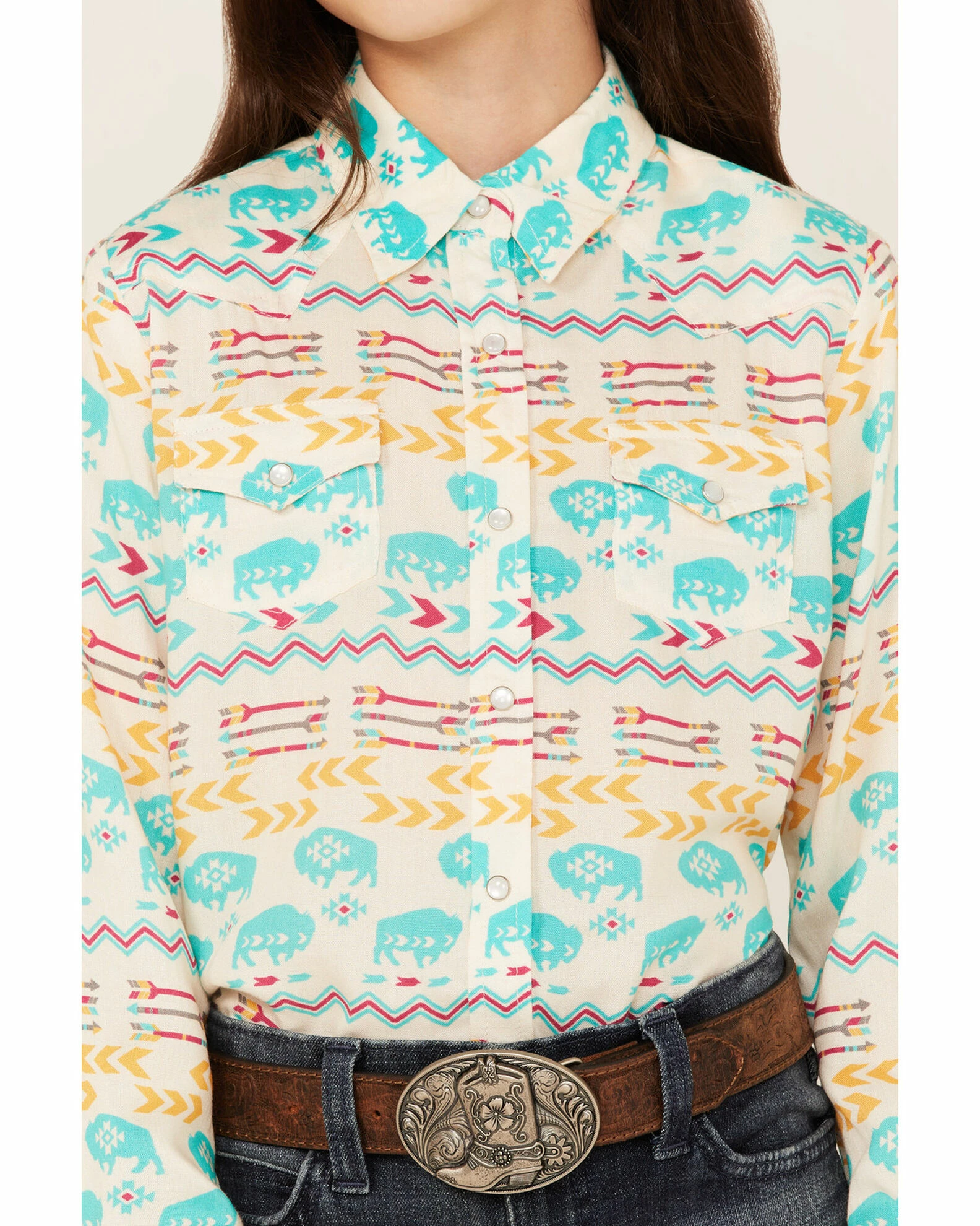 Roper Girls’ Buffalo Southwestern Print Long Sleeve Western Snap Shirt Multi