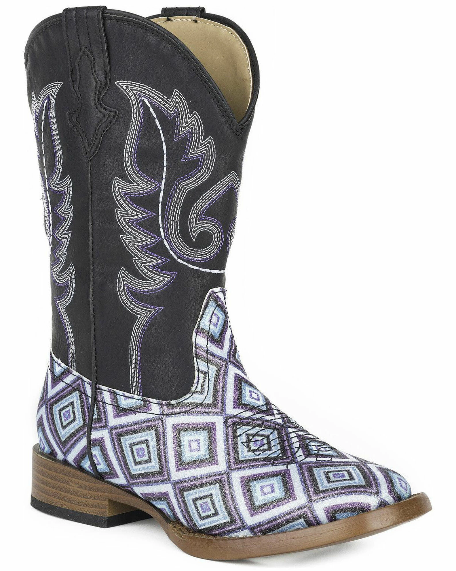 Roper Girls’ Glitter Diamonds Western Boots – Square Toe Blue