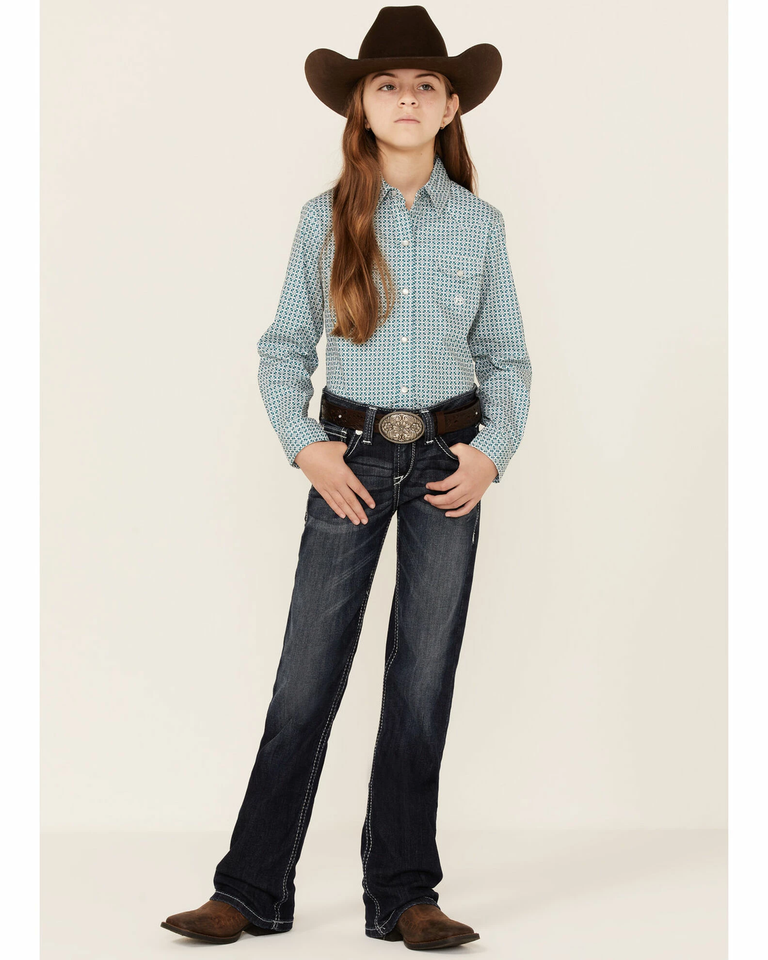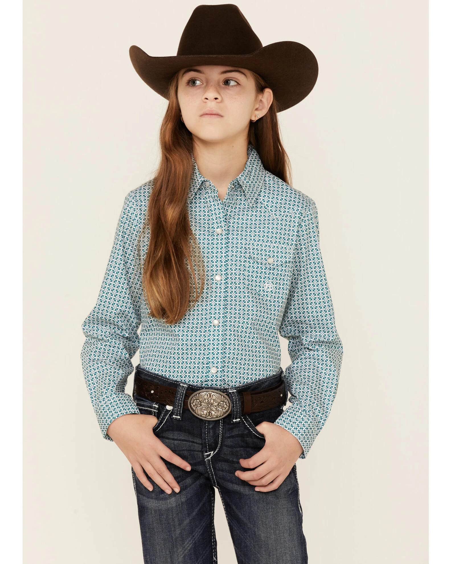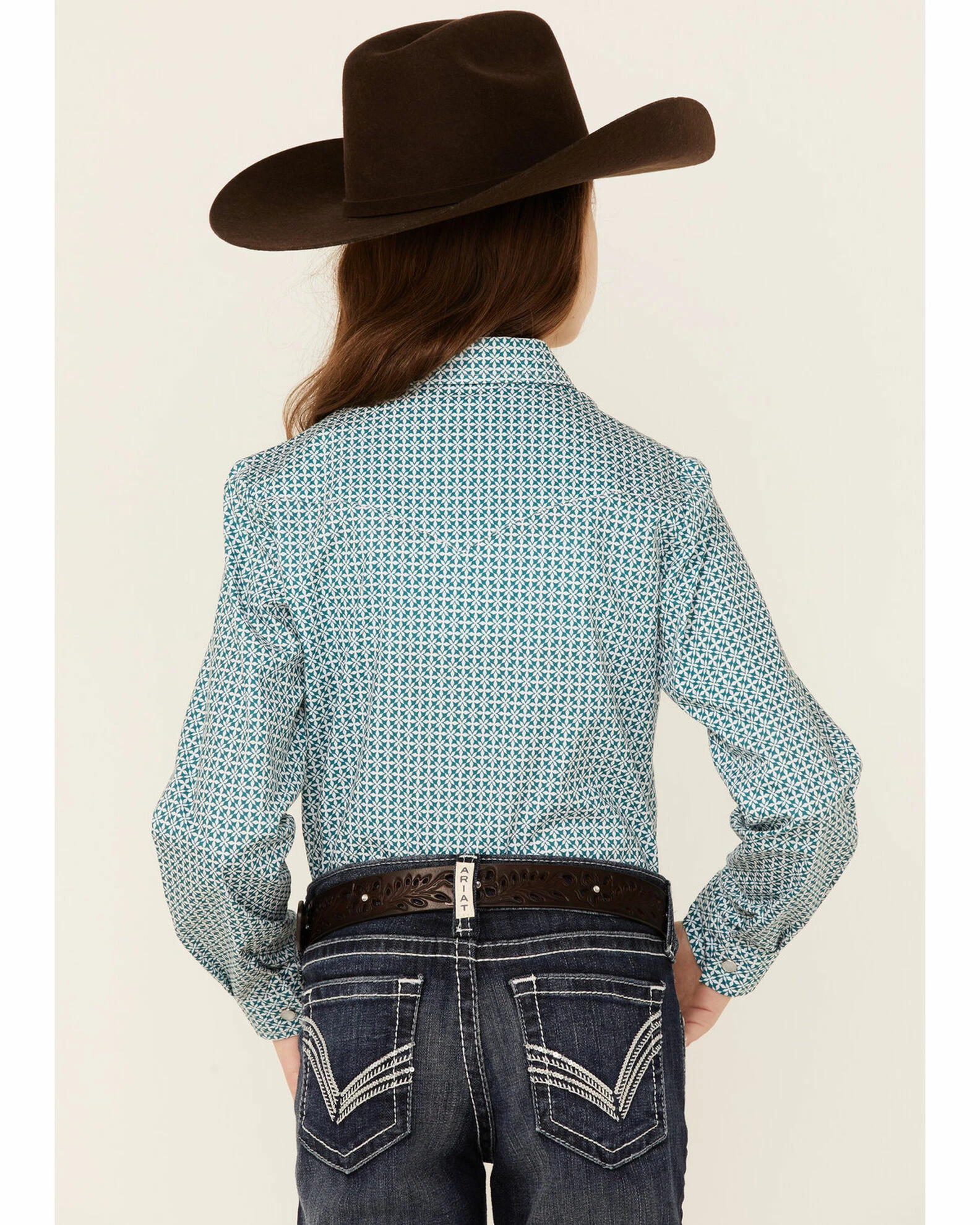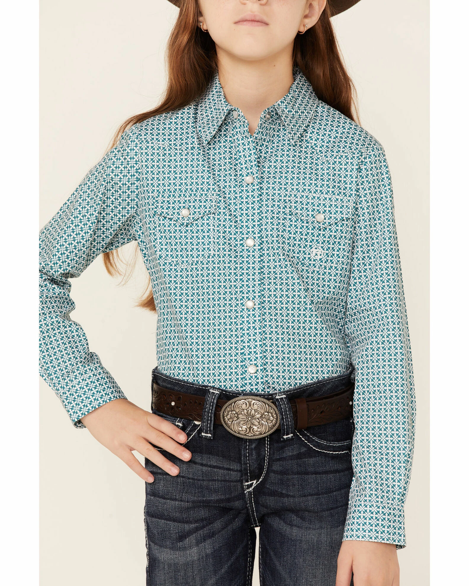 Roper Girls’ Ice Crystal Geo Print Long Sleeve Snap Western Shirt