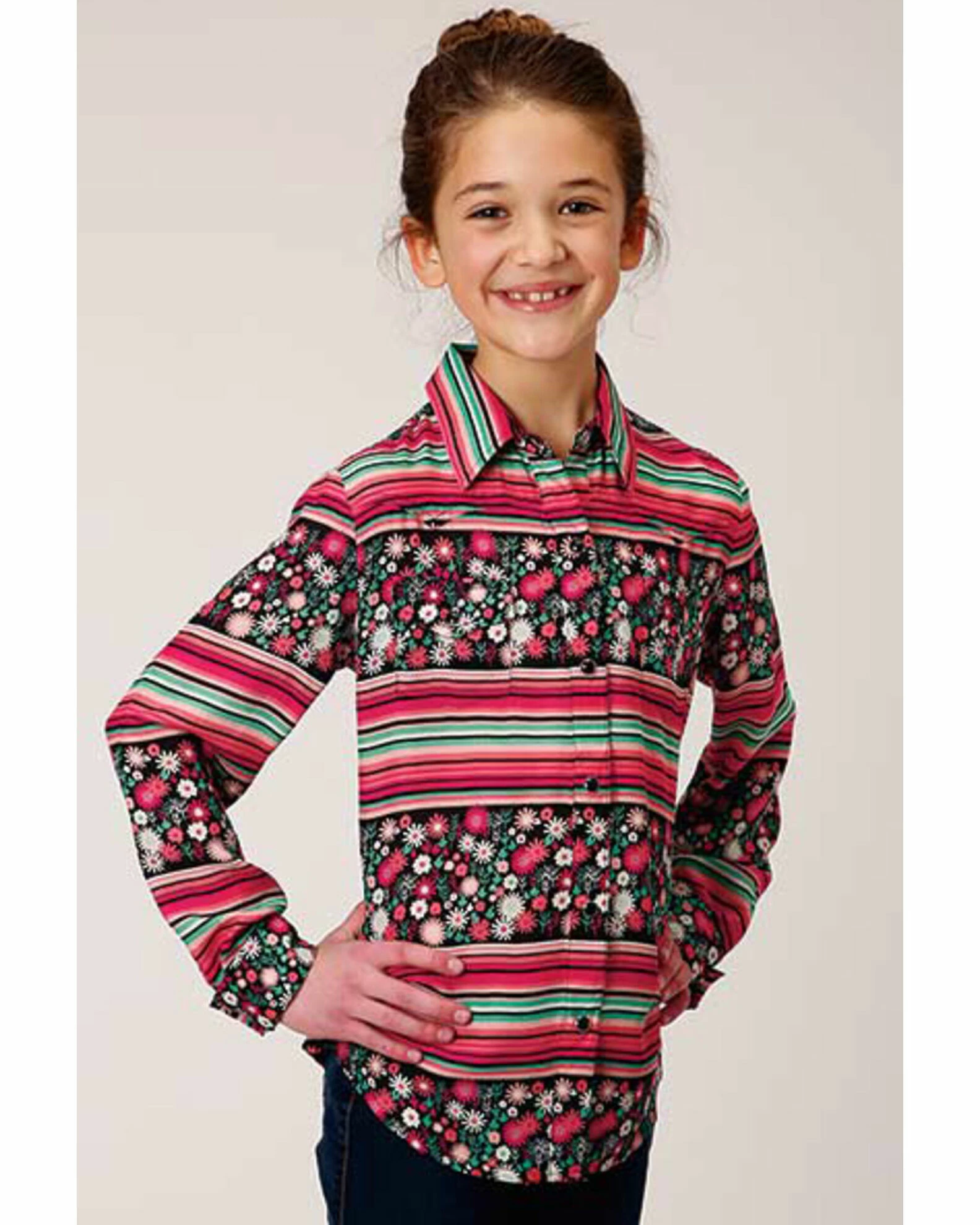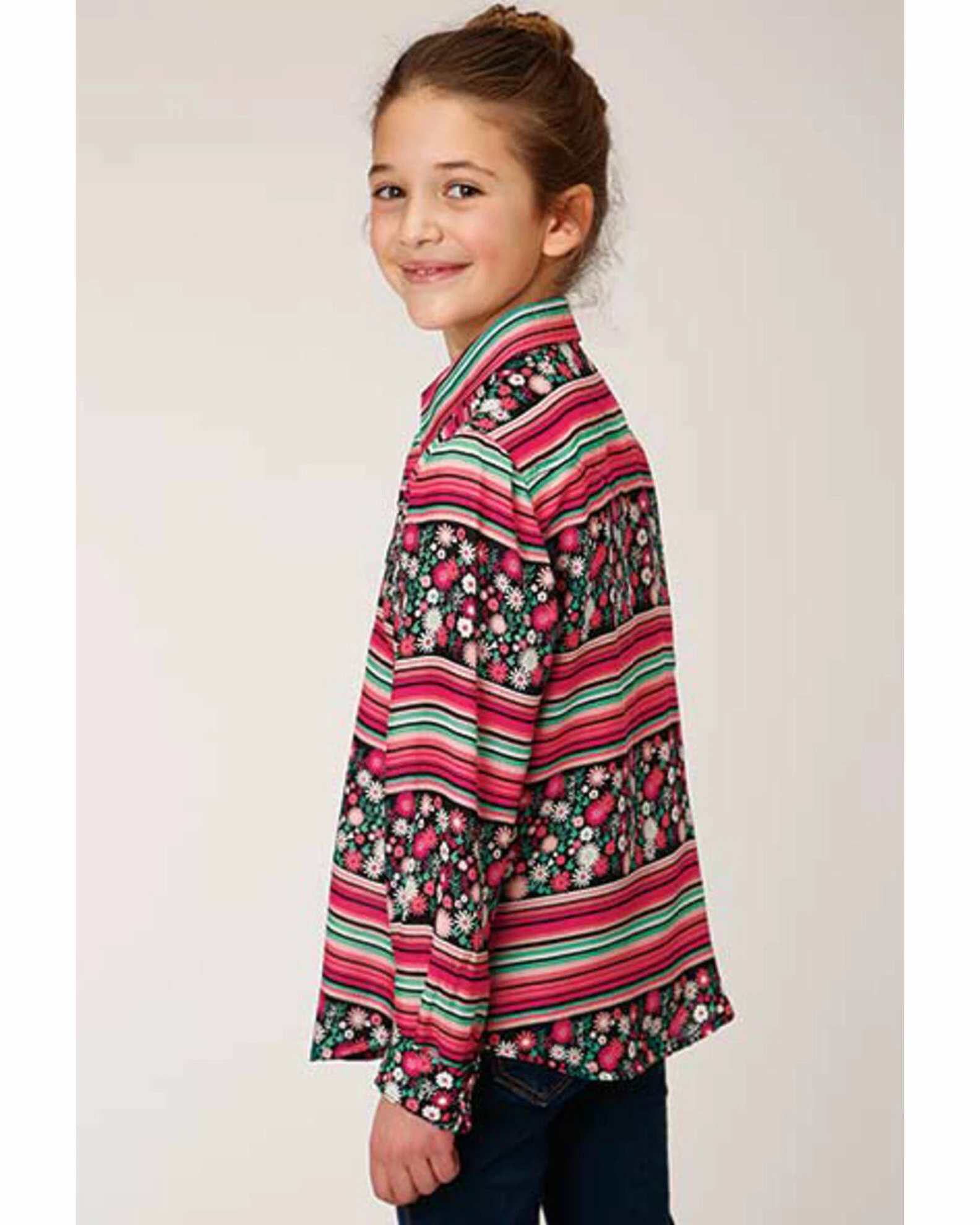 Roper Girls’ Multi Floral And Stripe Long Sleeve Snap Western Shirt