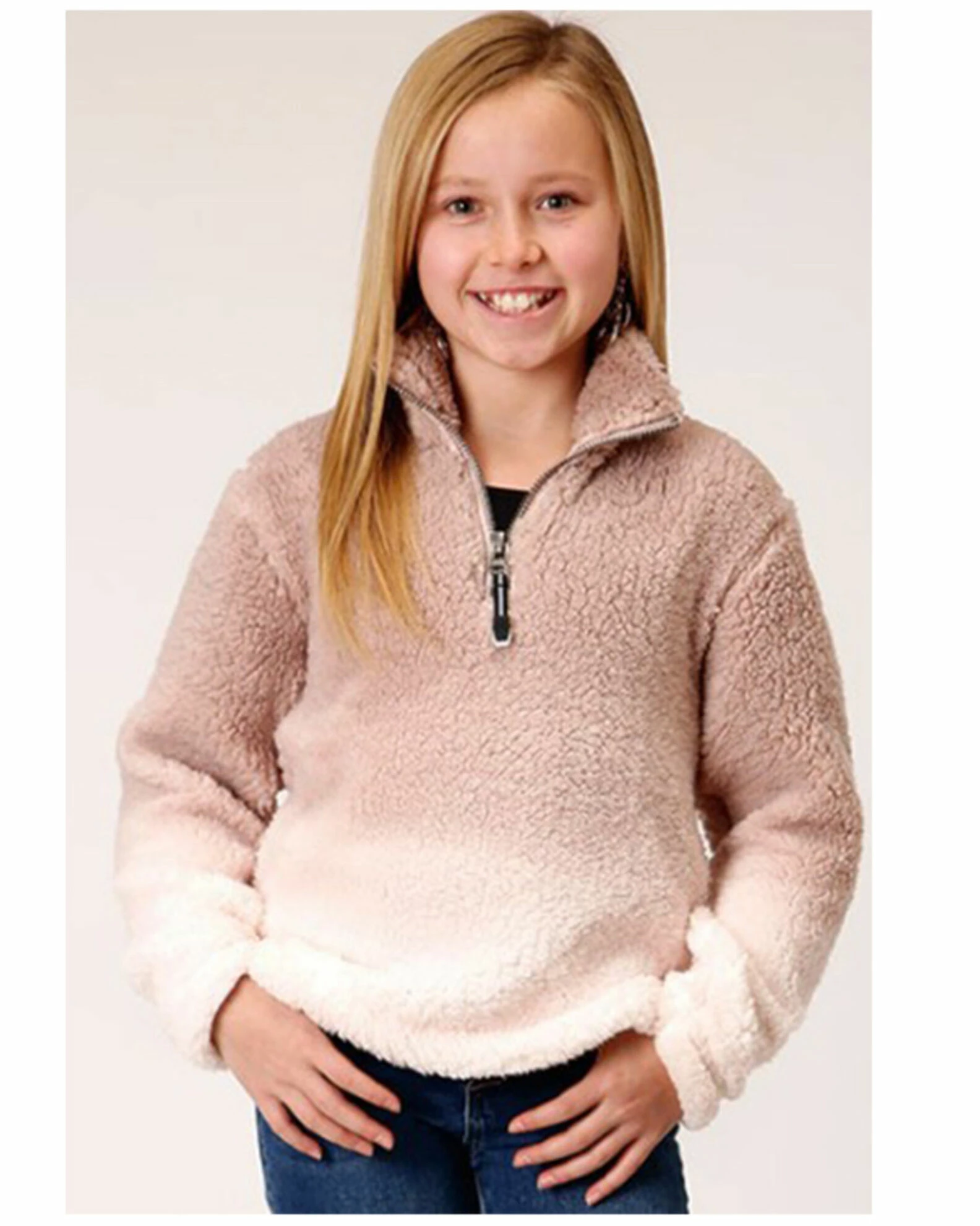 Roper Girls’ Ombre Sherpa 1/4 Zip Pullover Sweater Pink