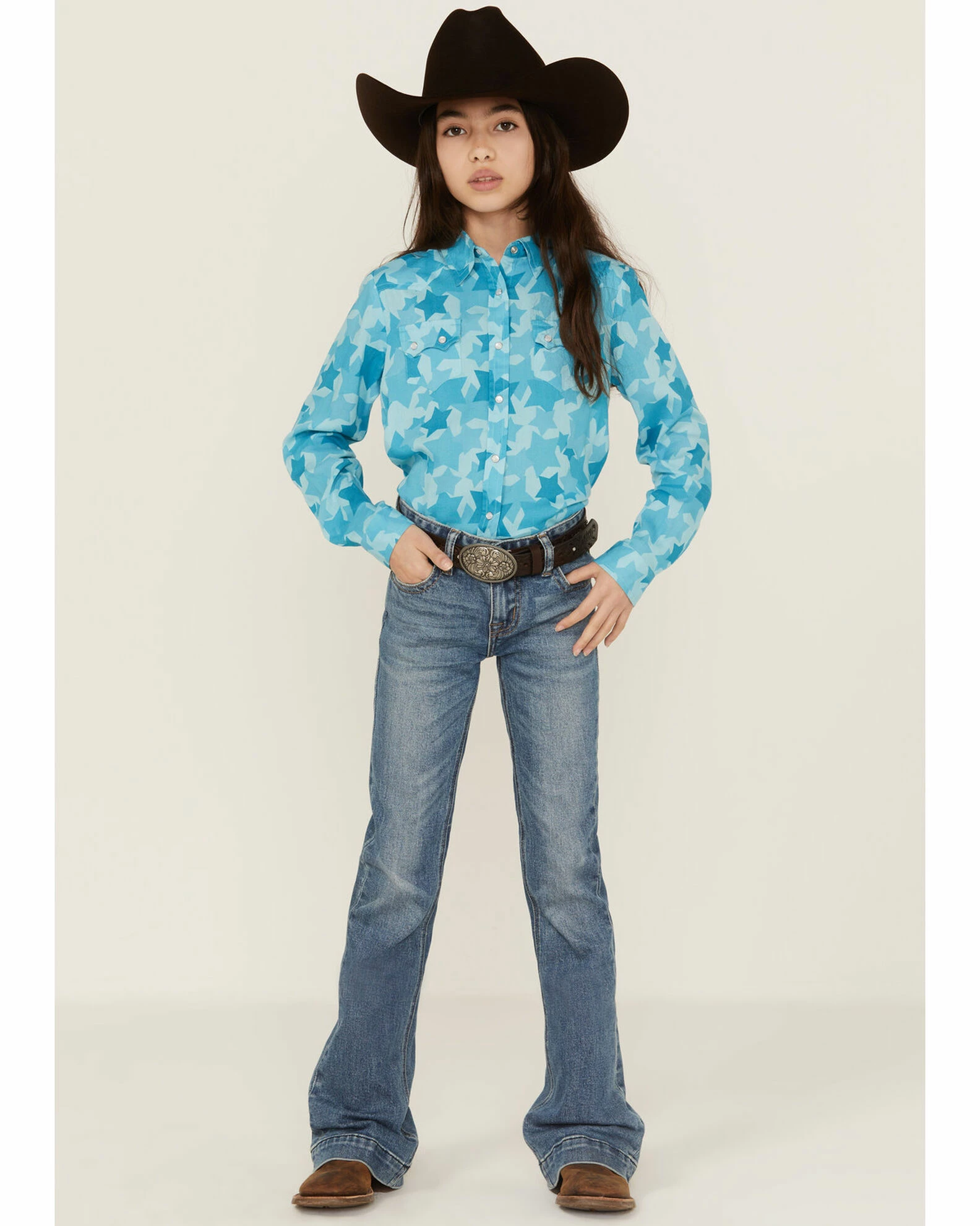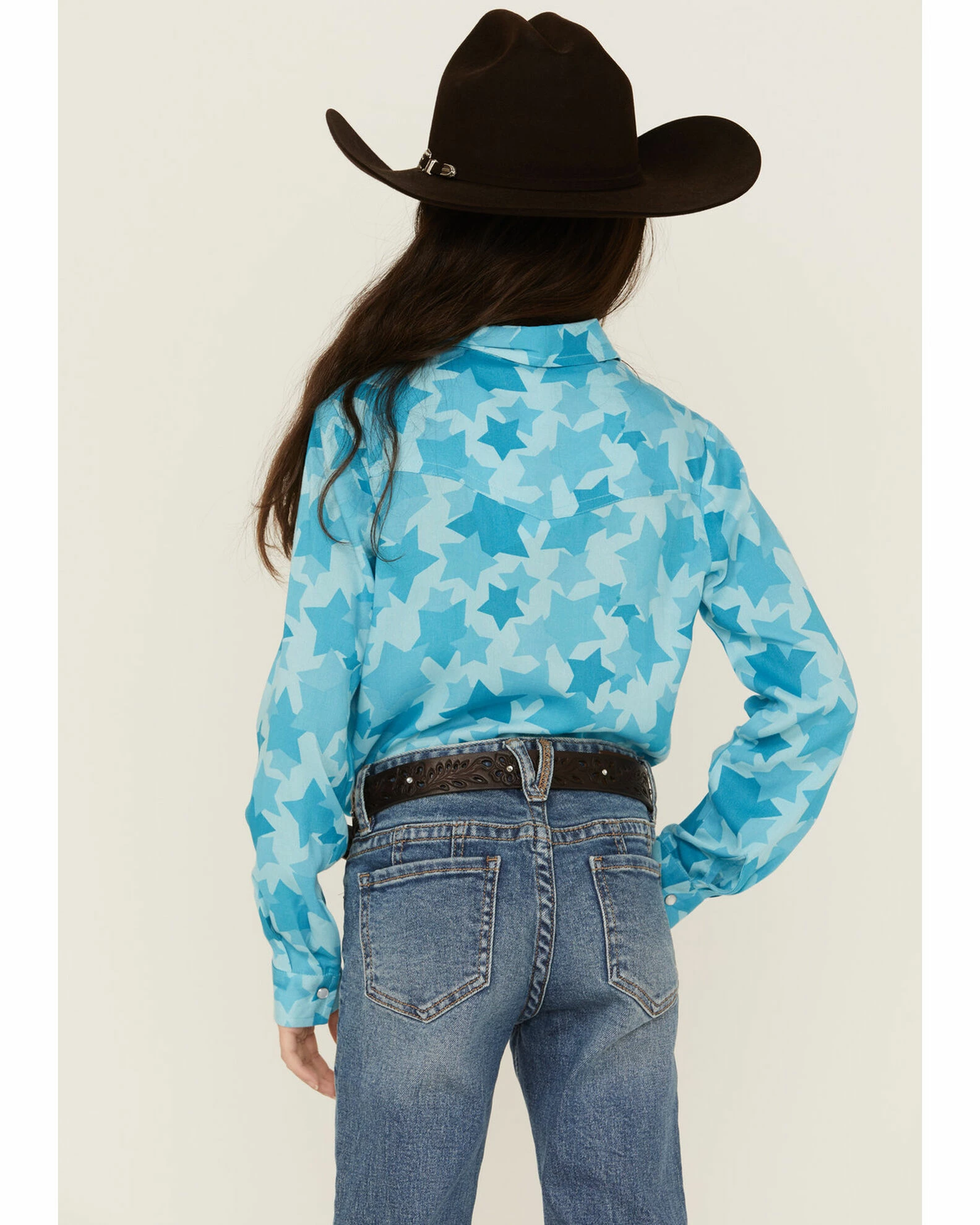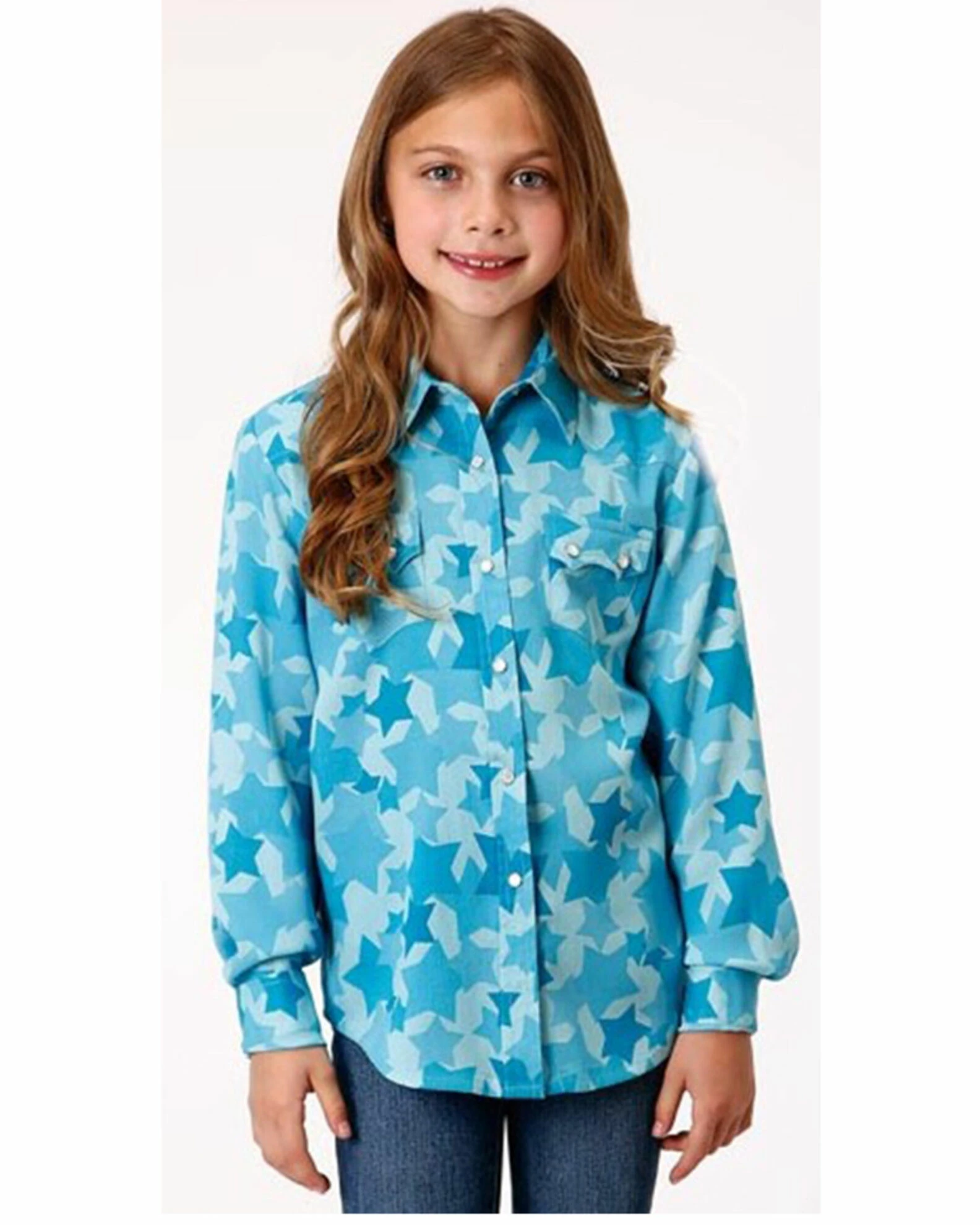 Roper Girls’ Rodeo Star Printed Western Snap Shirt Blue