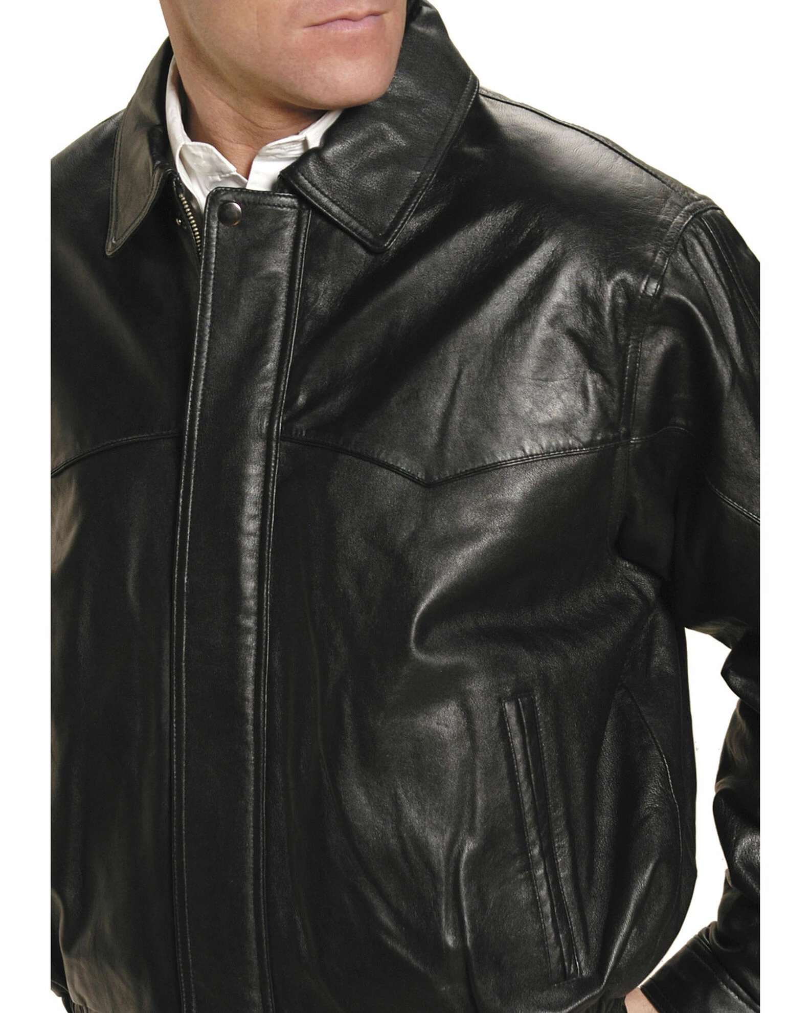 This Men’s Roper Lamb Touch Nappa Bomber Jacket has a one point front yokes and a two point back yoke. This handsome jacket has a covered placket and a zip front. It’s quite striking with a double snap cuff and side elastic waistband. It has a angled double welt front pockets and is fully lined.