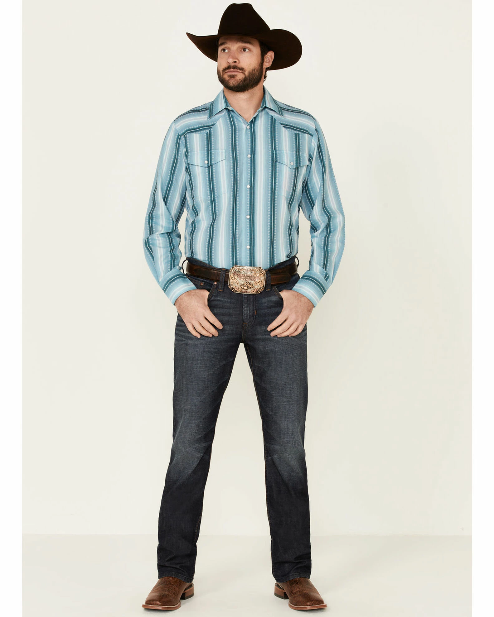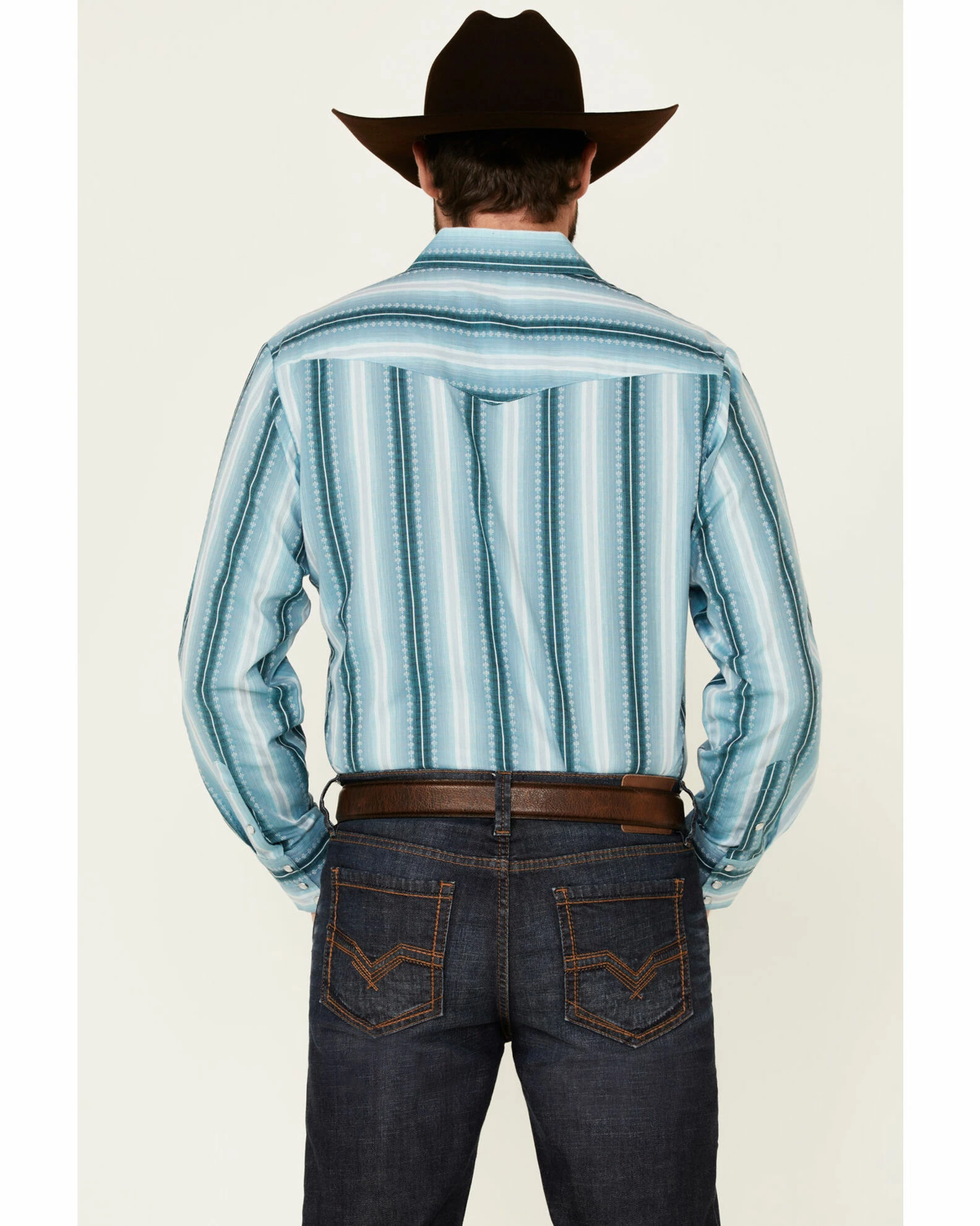 Be the first to review “Roper Men’s Aqua Ombre Dobby Stripe Long Sleeve Snap Western Shirt Blue” Cancel reply