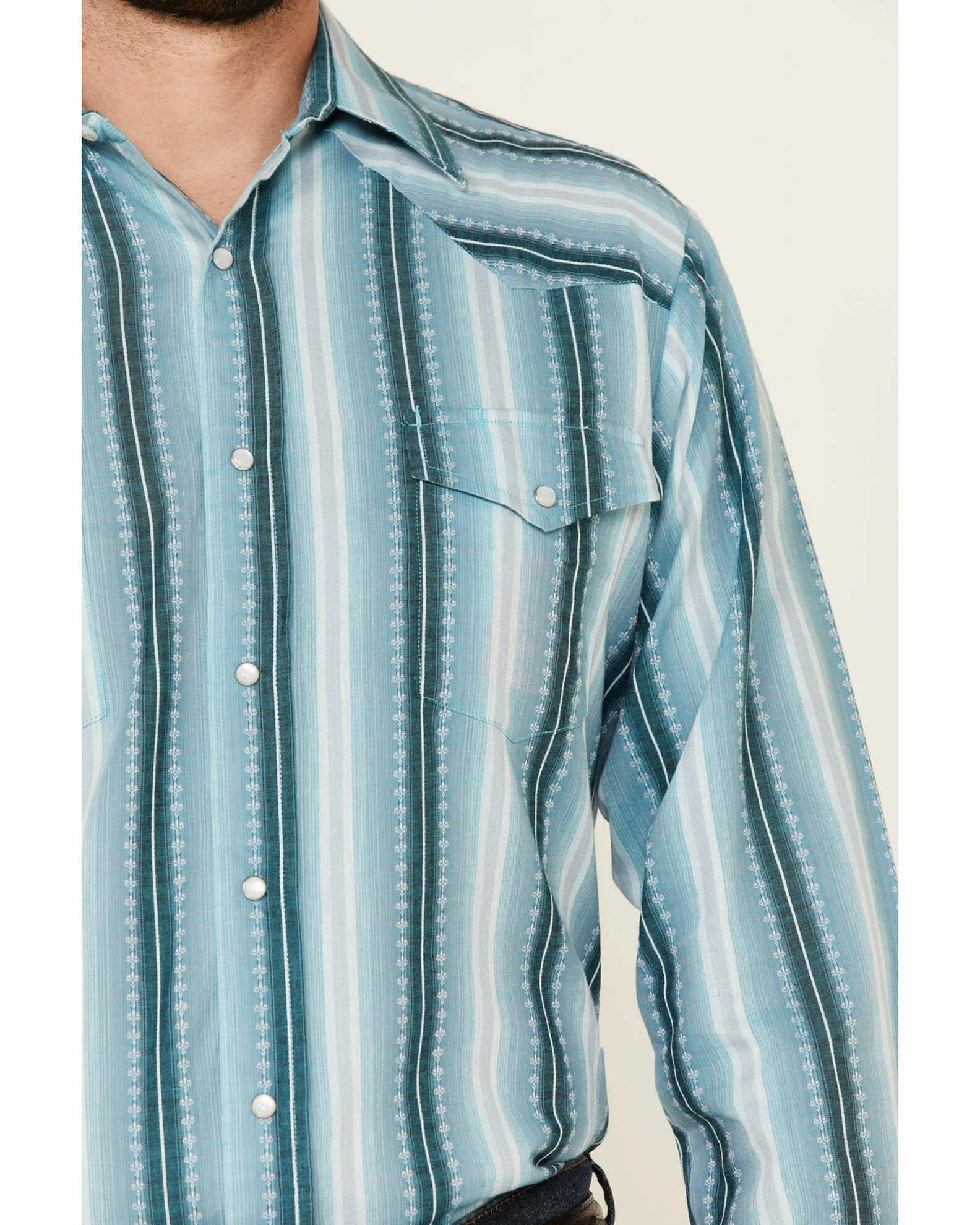 Roper Men’s Aqua Ombre Dobby Stripe Long Sleeve Snap Western Shirt Blue