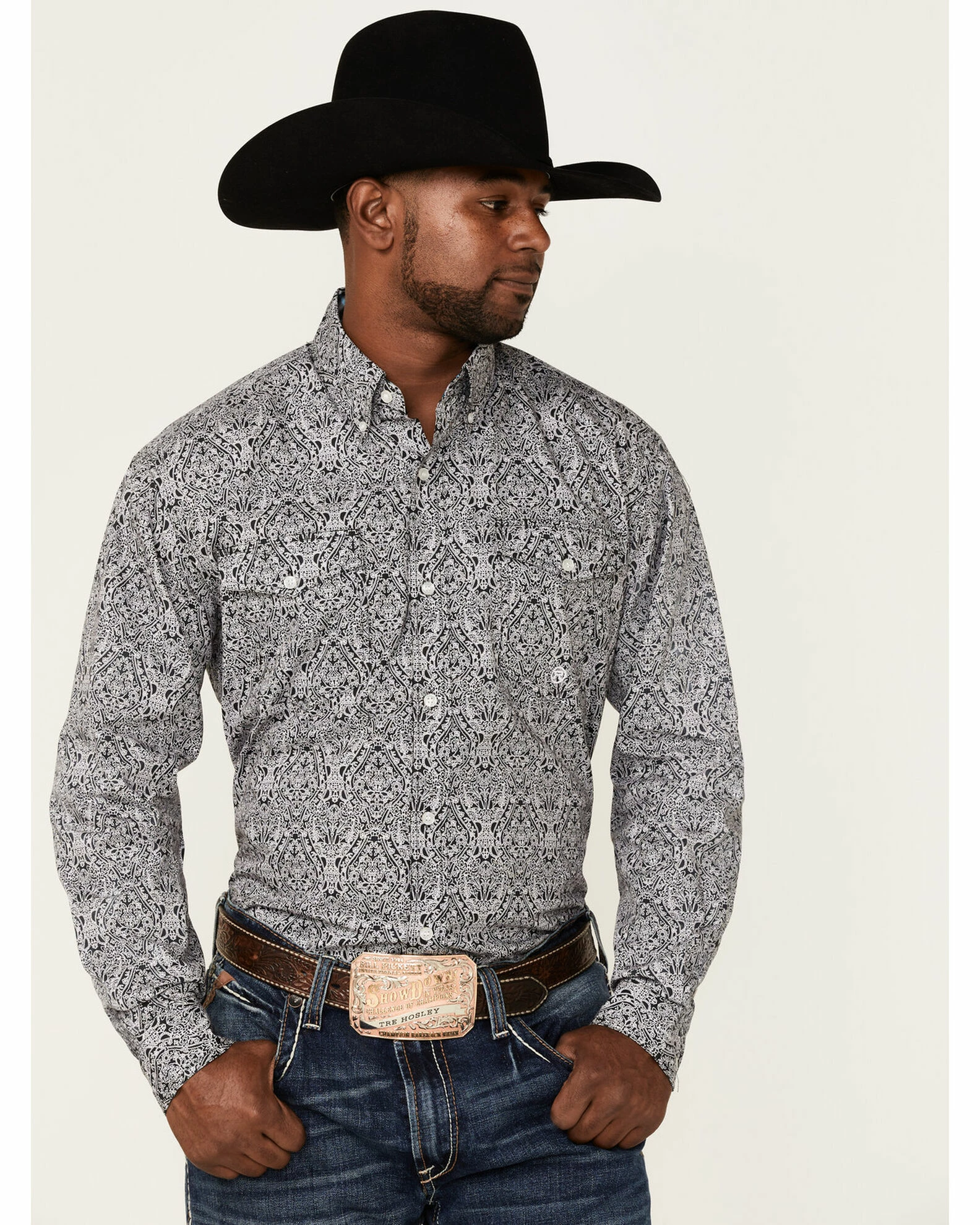 Roper Men’s Black Hills Medallion Paisley Print Long Sleeve Button-Down Western Shirt