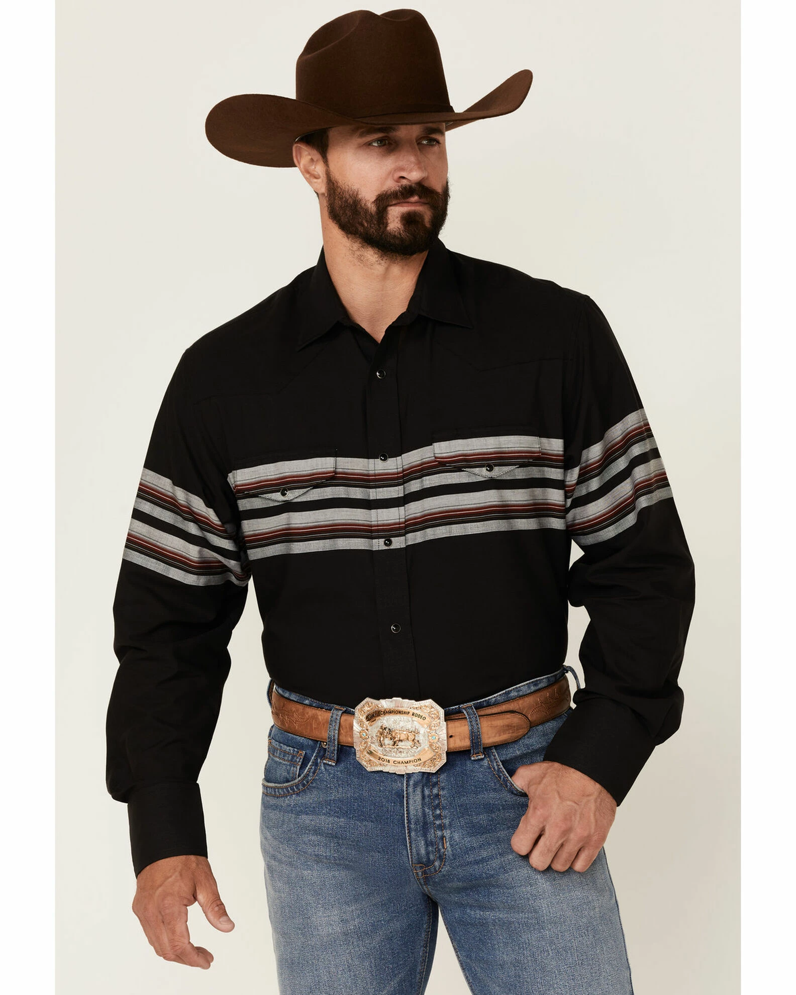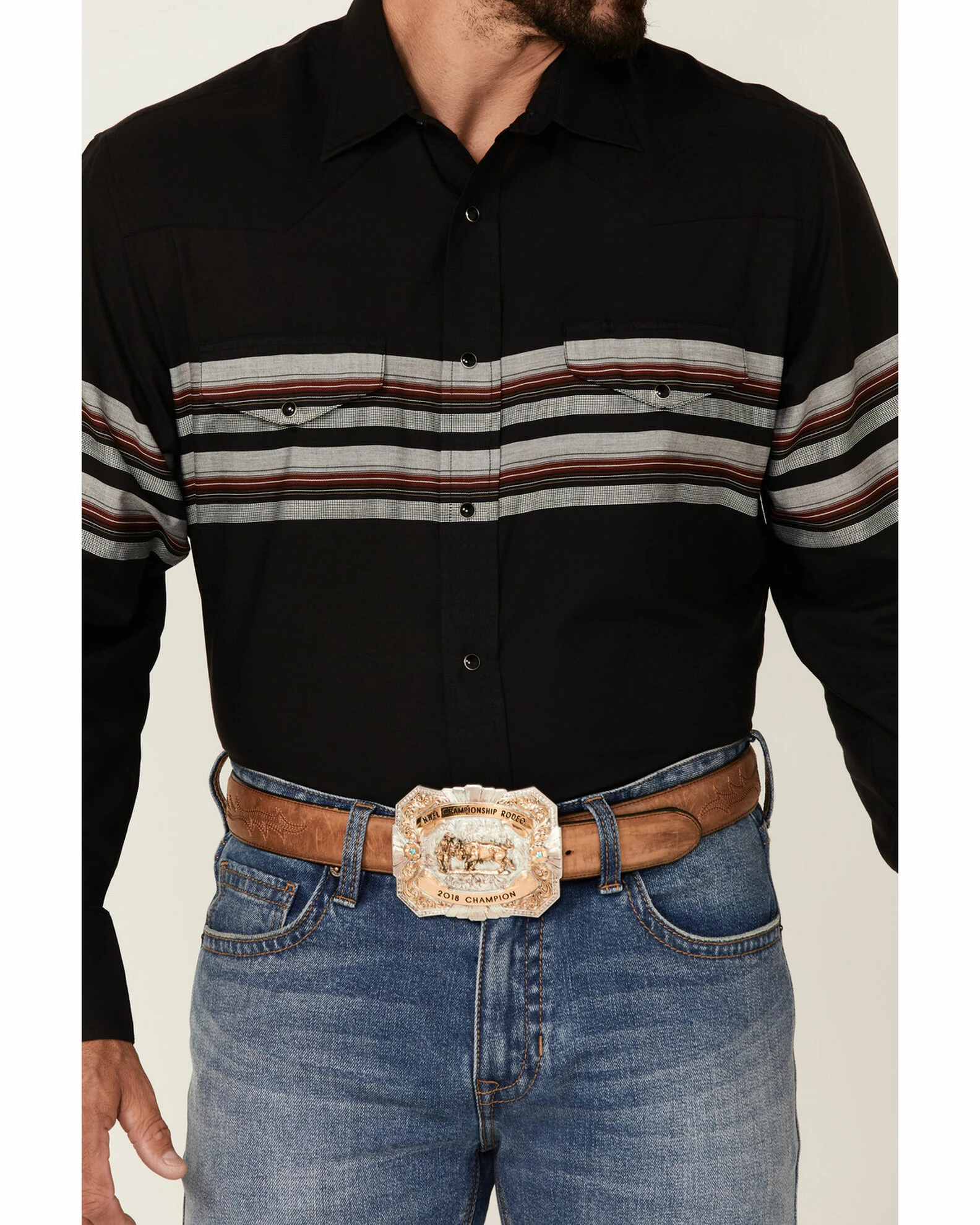 Roper Men’s Black & Wine Border Stripe Long Sleeve Snap Western Shirt