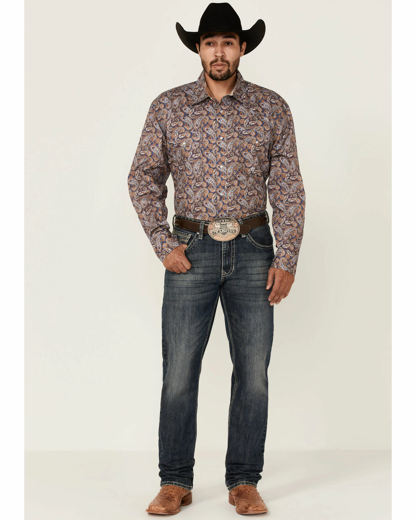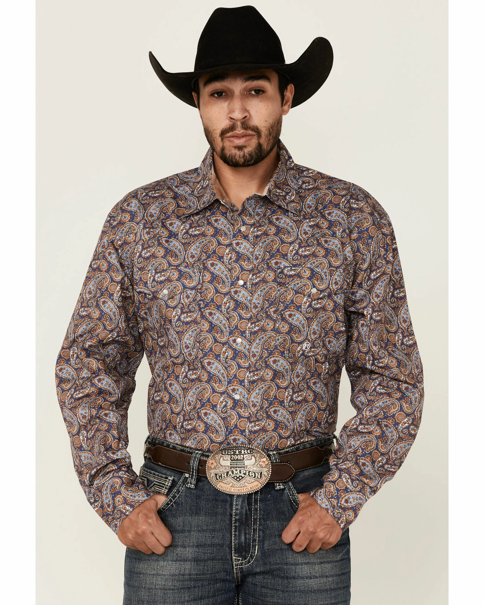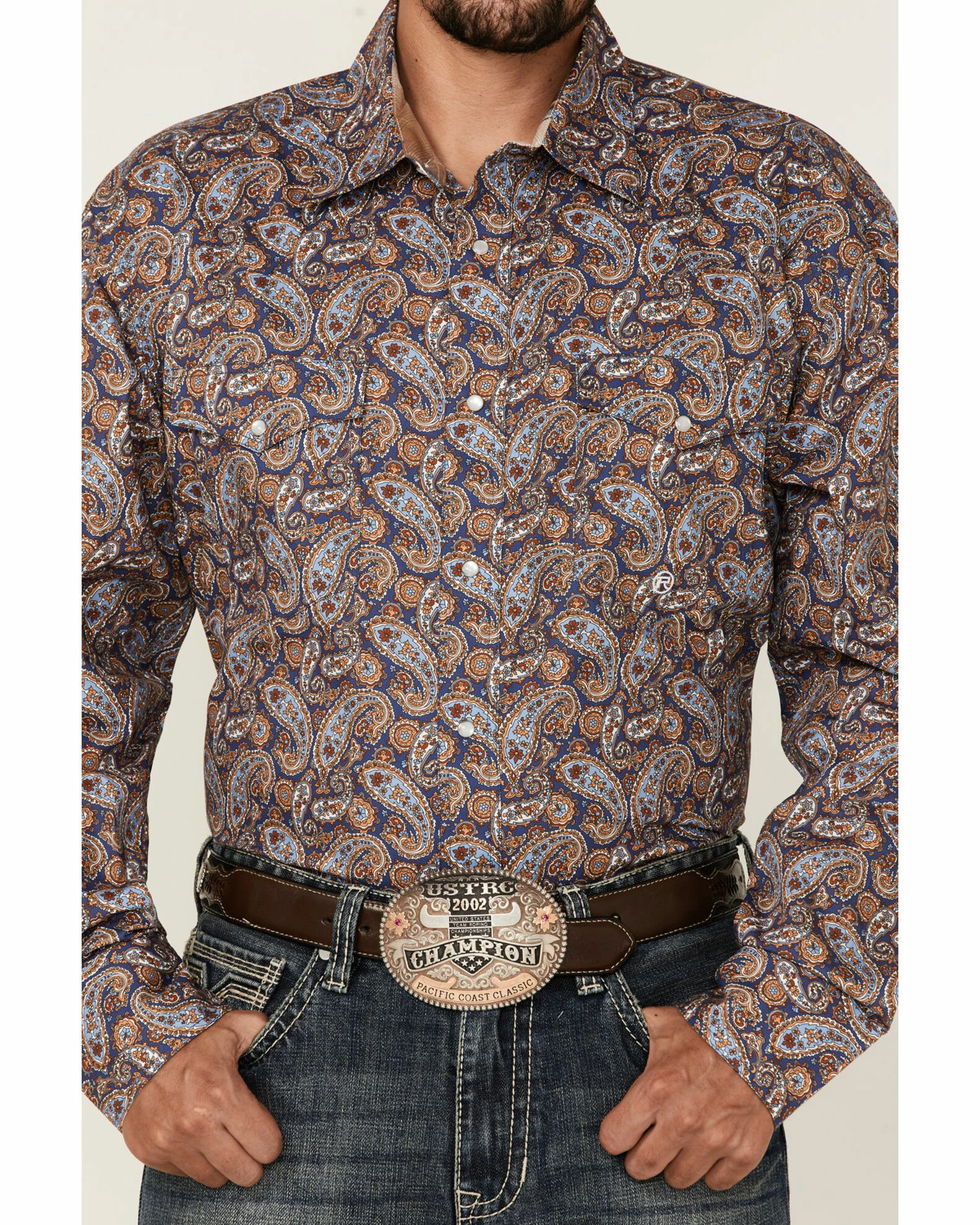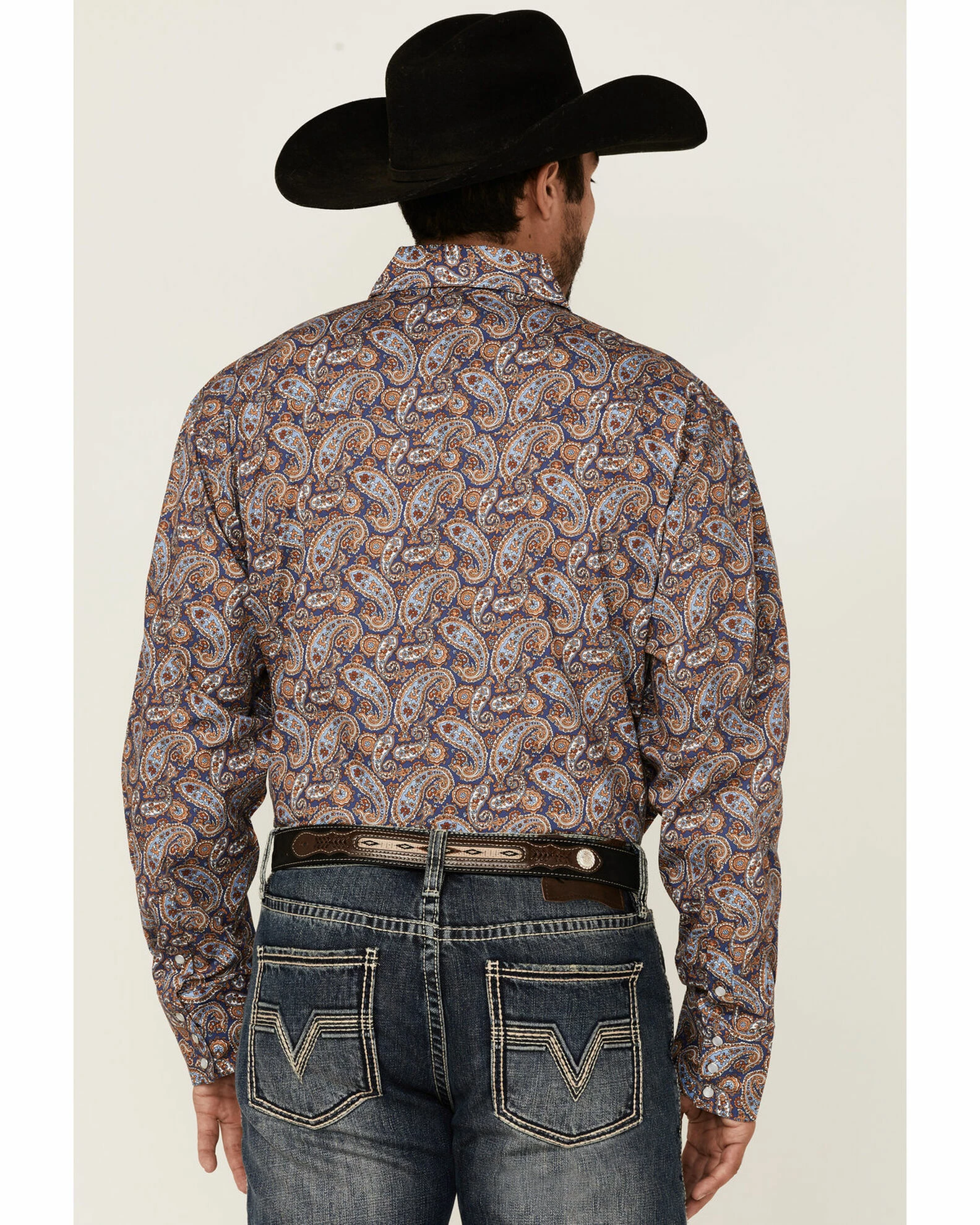 Roper Men’s Blue Country Paisley Print Long Sleeve Snap Western Shirt