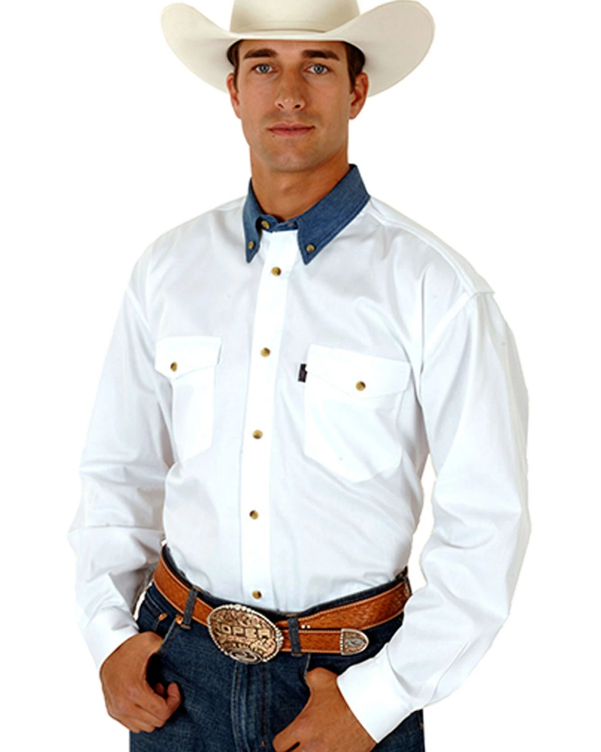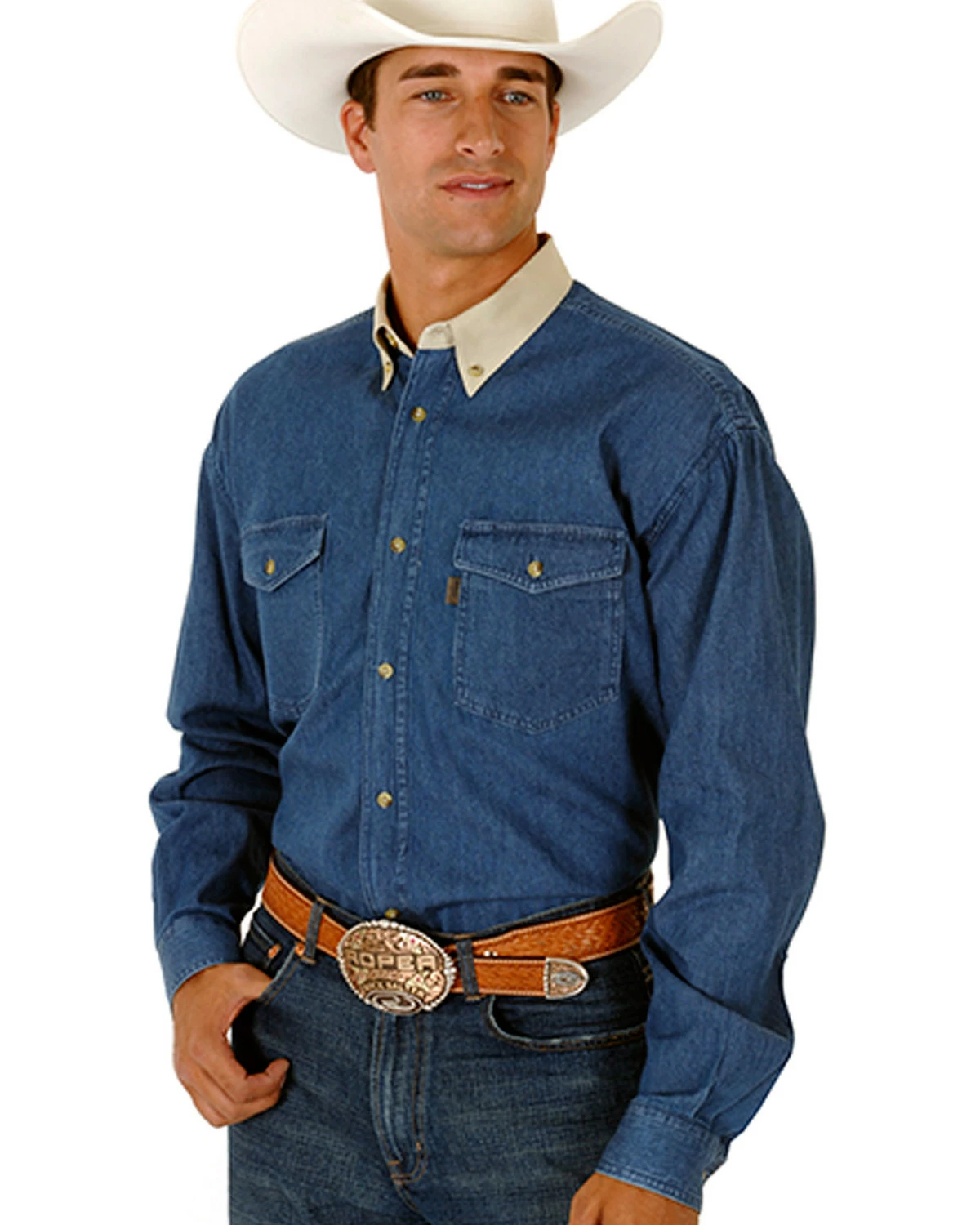 Roper Men’s Contrasting Collar Twill Long Sleeve Western Shirt – Big & Tall Denim
