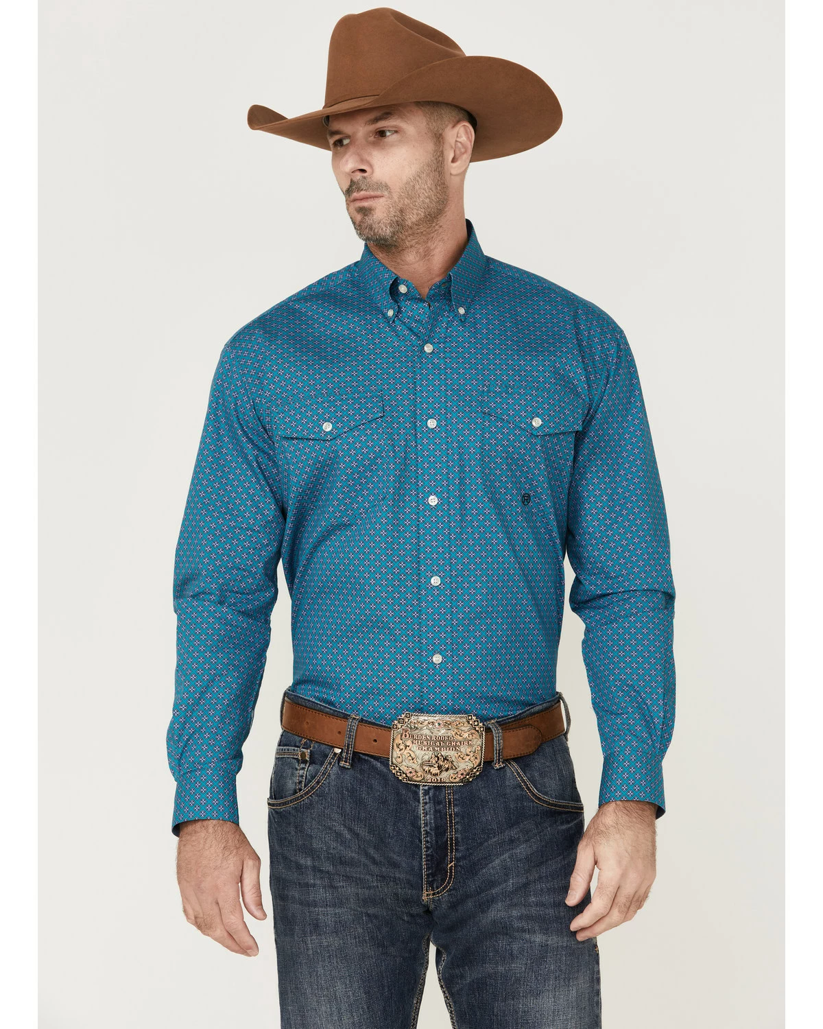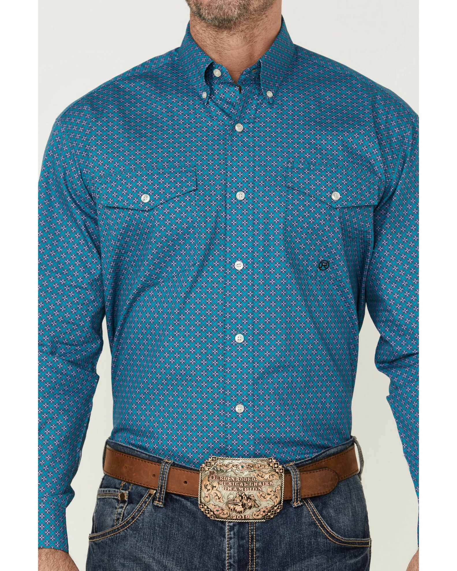 Roper Men’s Curcuit Foulard Geo Print Long Sleeve Button-Down Western Shirt Purple