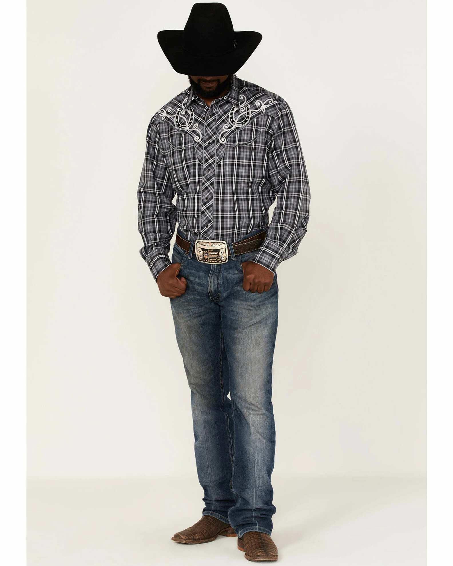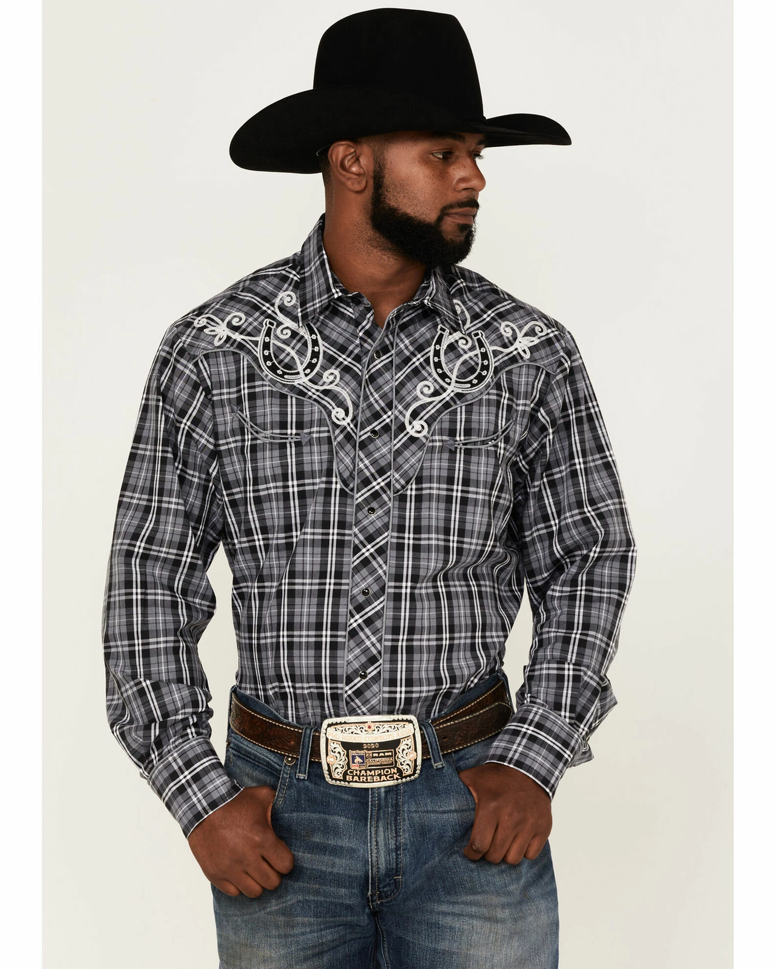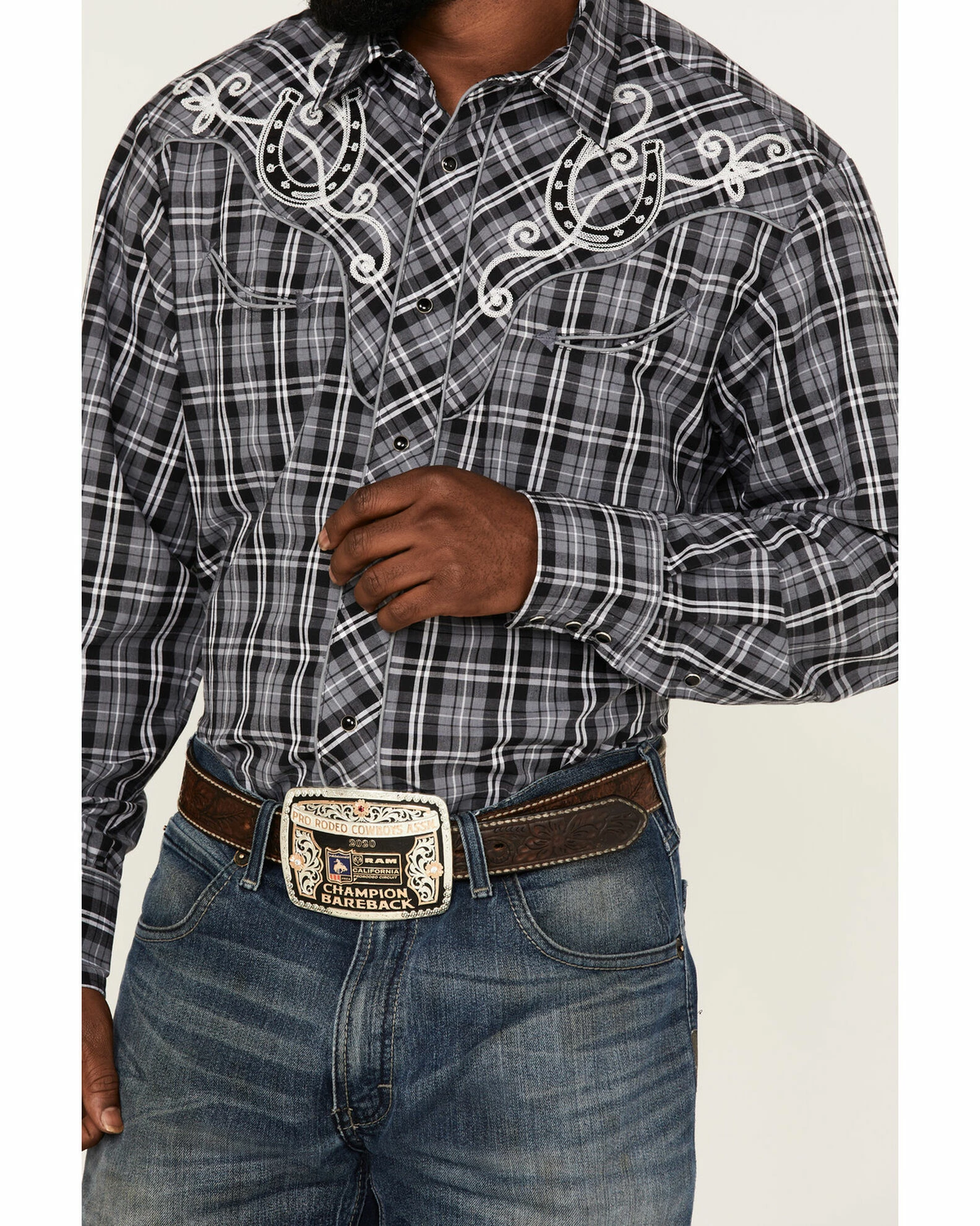 Roper Men’s Embroidered Horseshoe Large Plaid Long Sleeve Snap Western Shirt