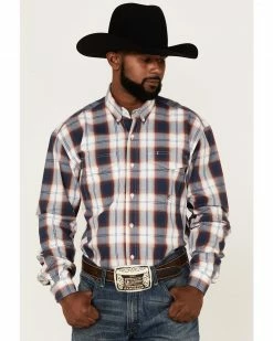 Roper Men’s Liberty Bell Large Plaid Long Sleeve Button-Down Western Shirt Blue