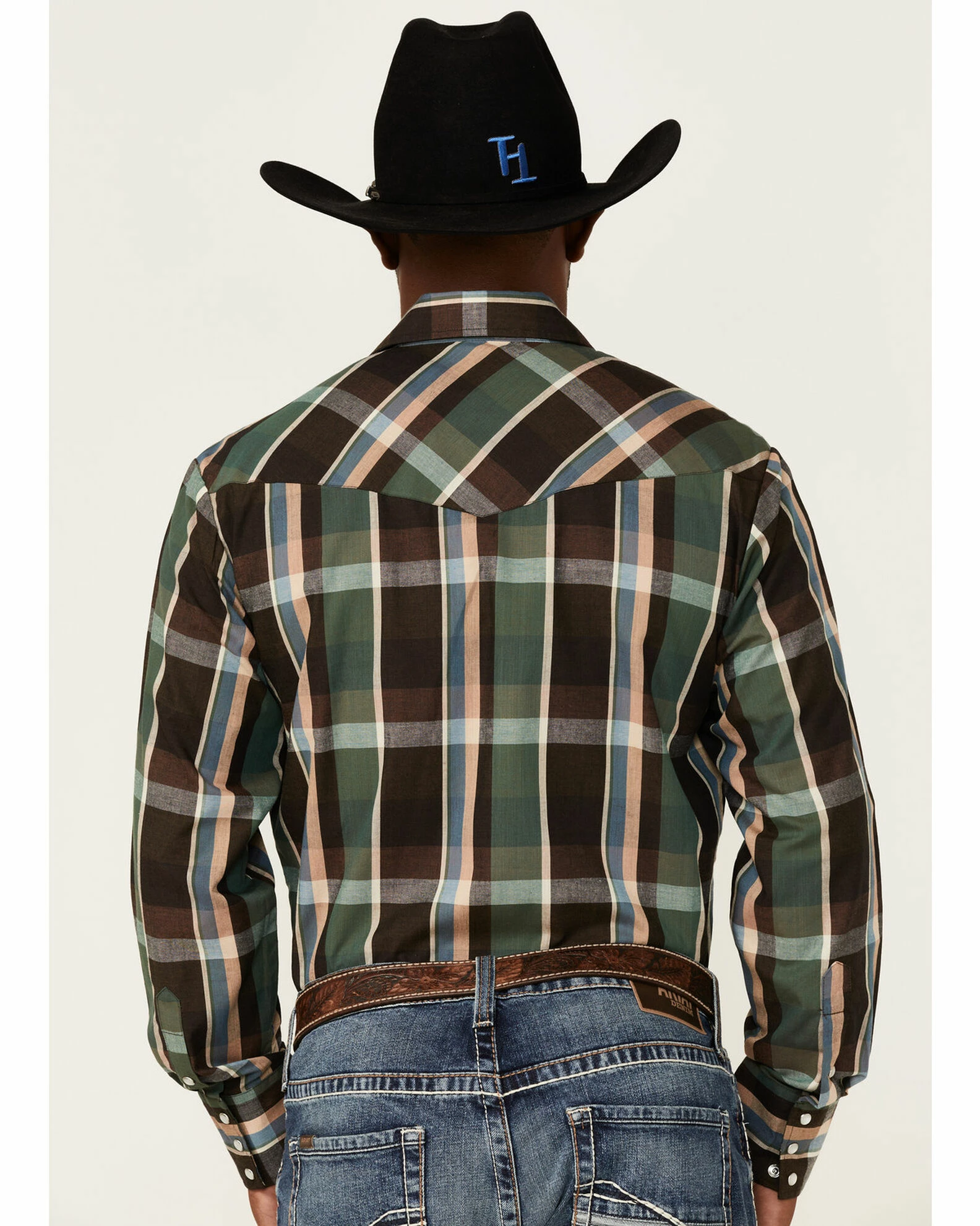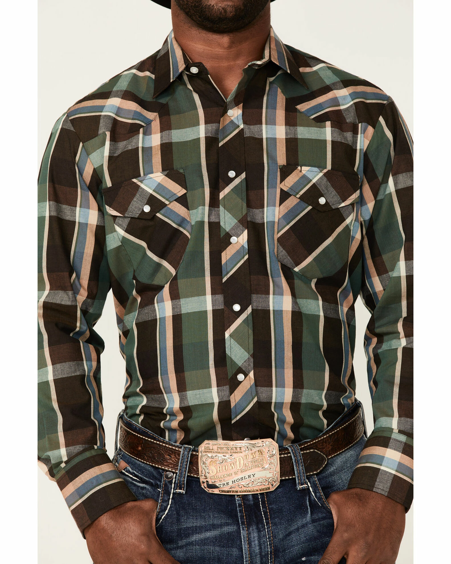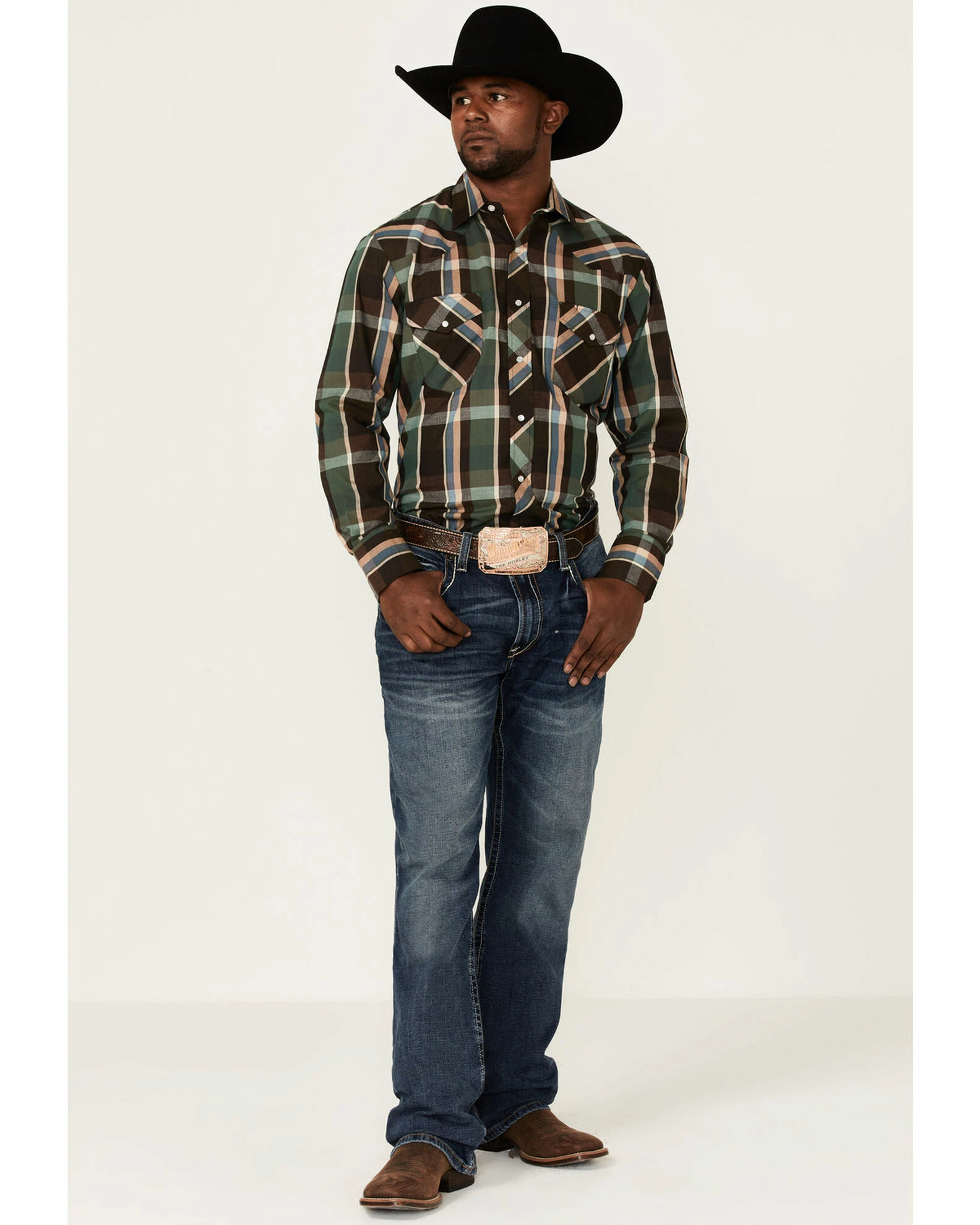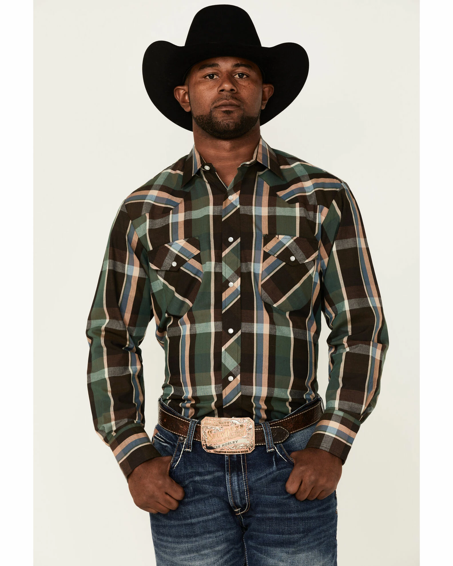 Roper Men’s Olive Large Plaid Long Sleeve Snap Western Shirt Green