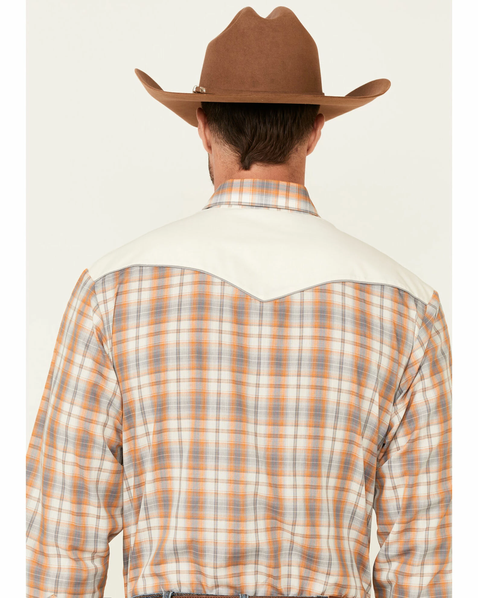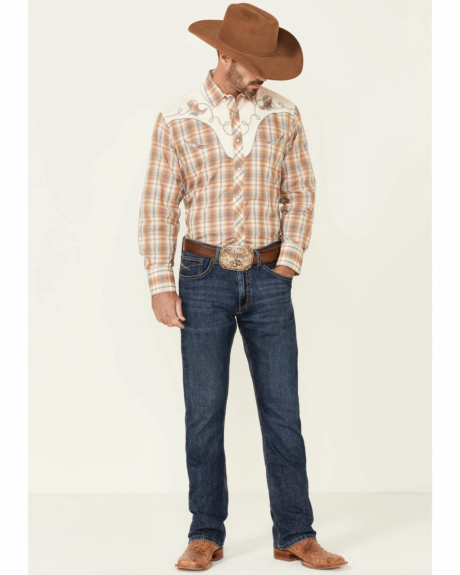 Roper Men’s Orange Embroidered Plaid Long Sleeve Snap Western Shirt