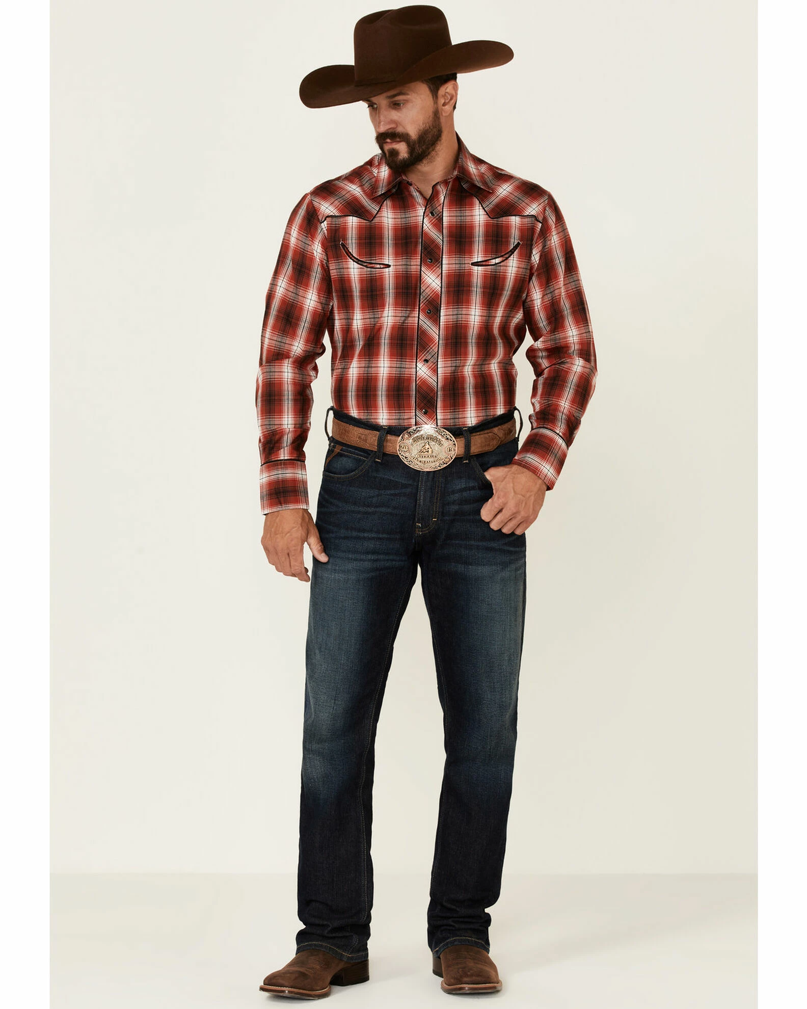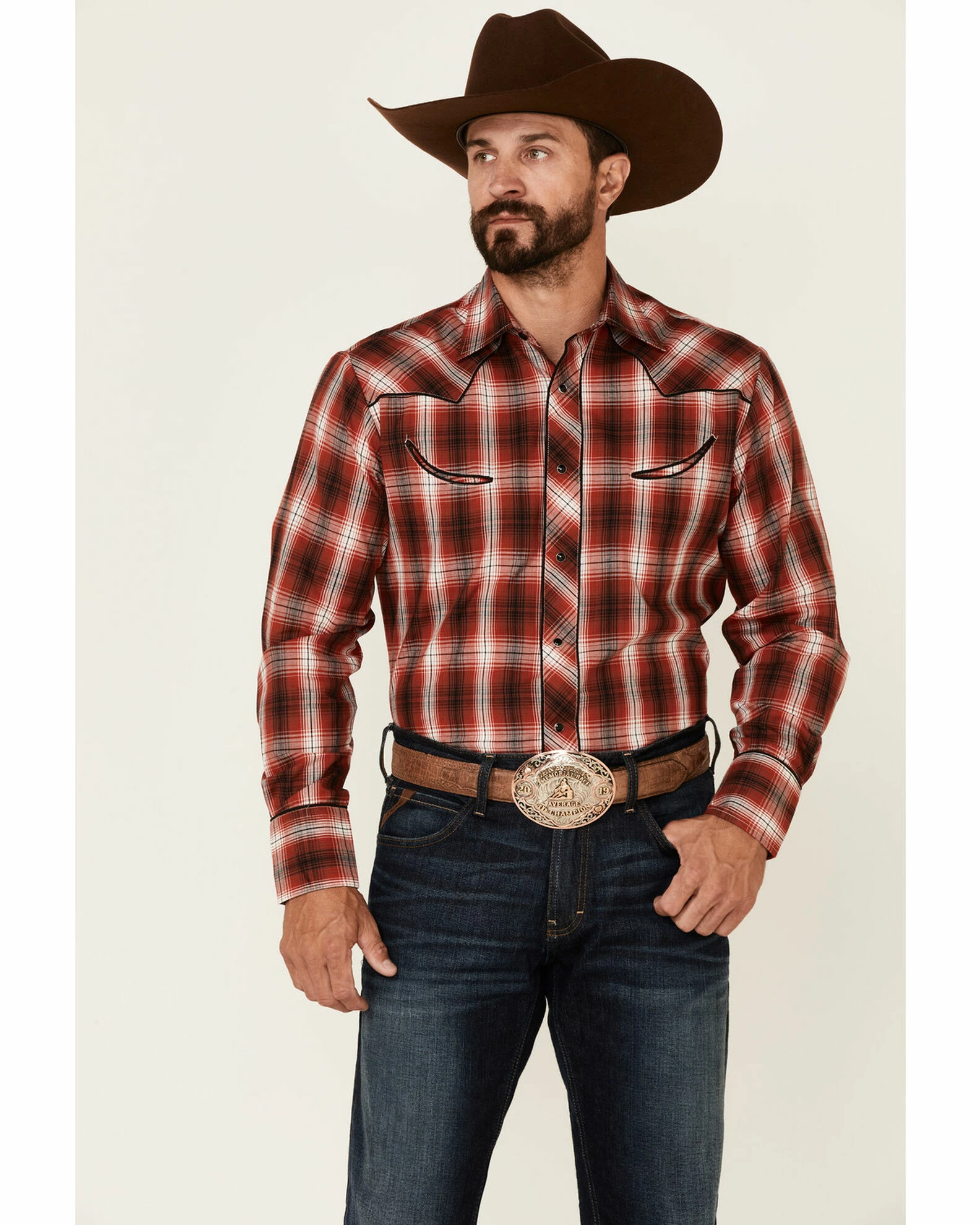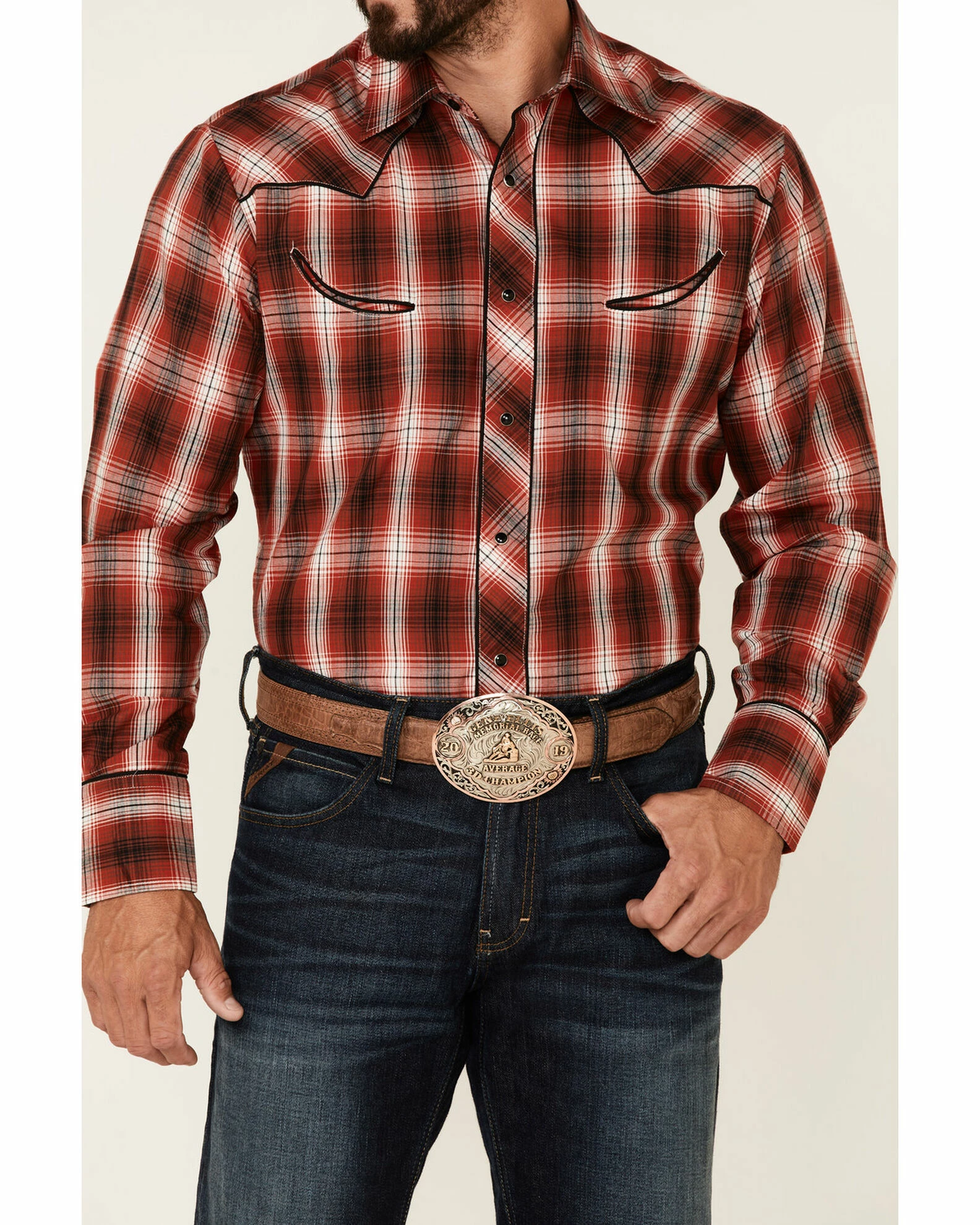 Roper Men’s Red Fancy Plaid Long Sleeve Snap Western Shirt