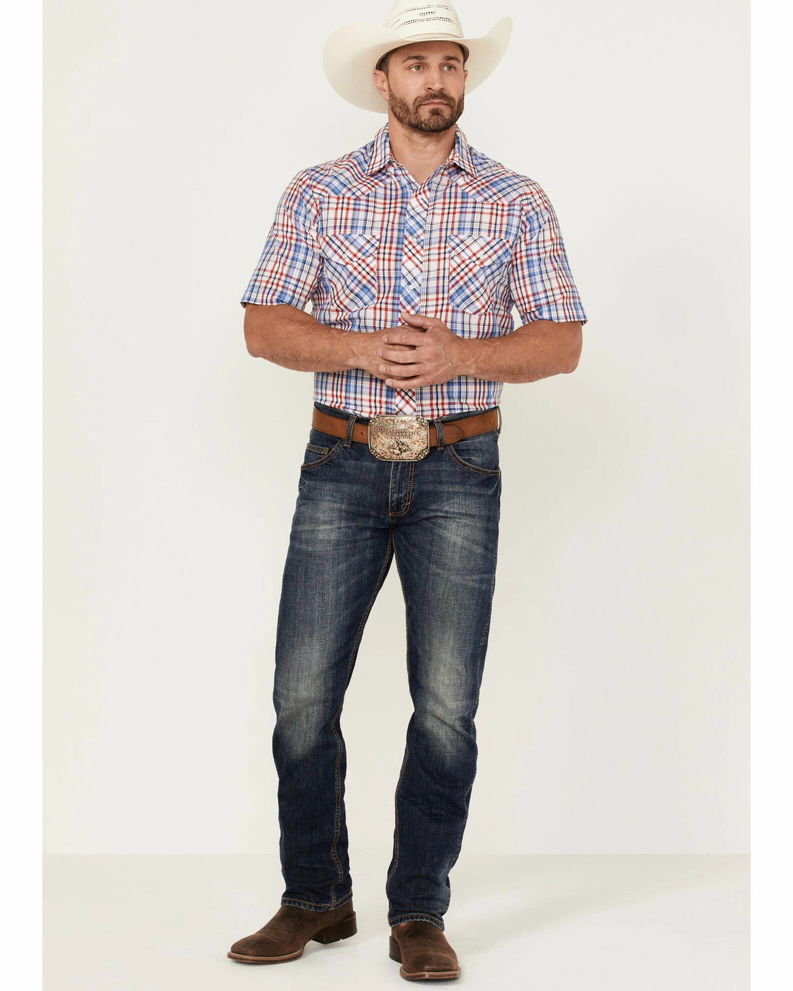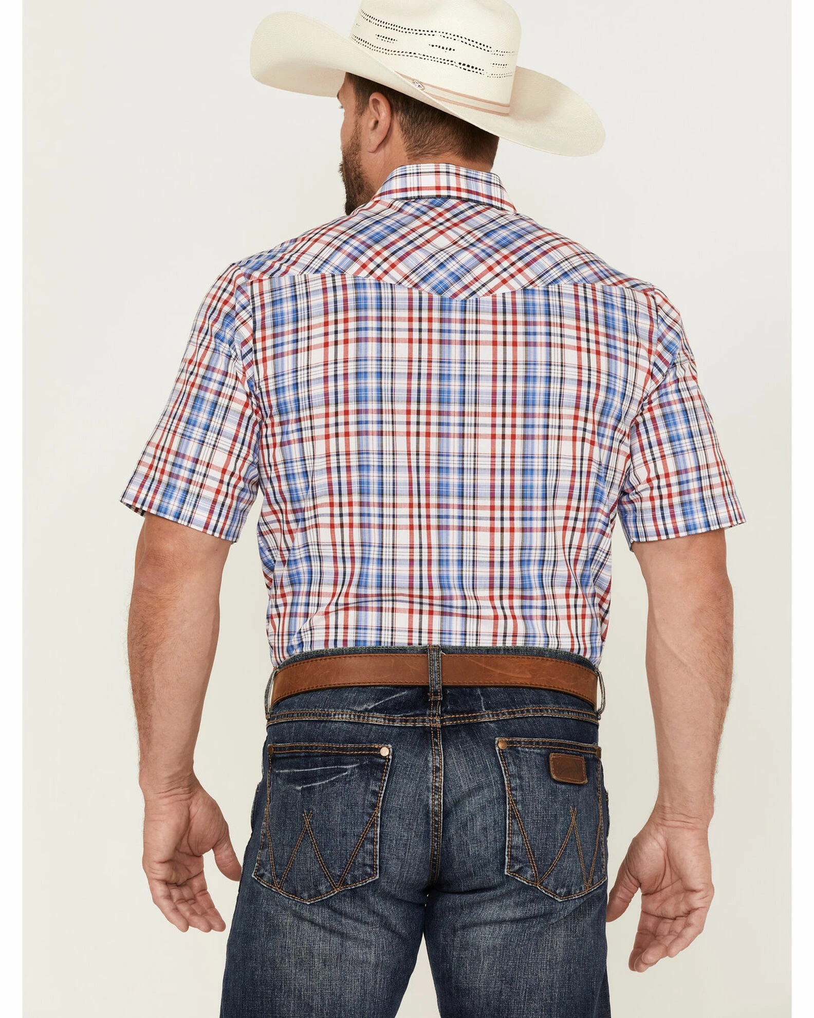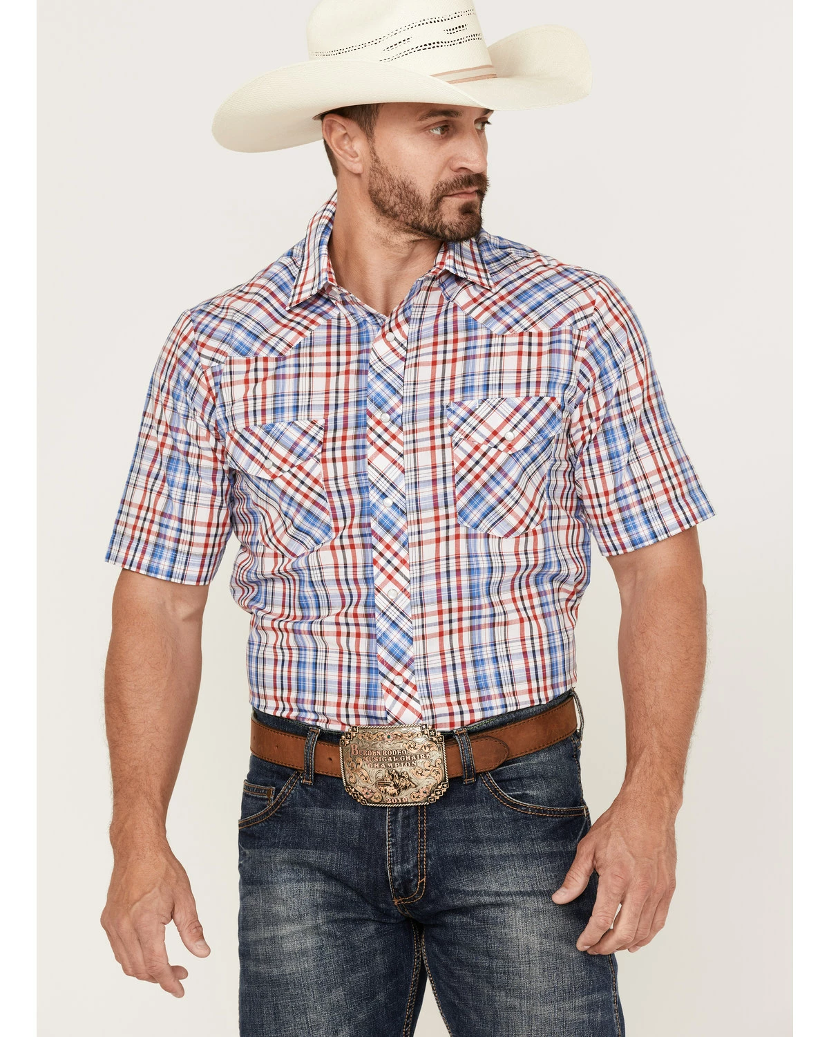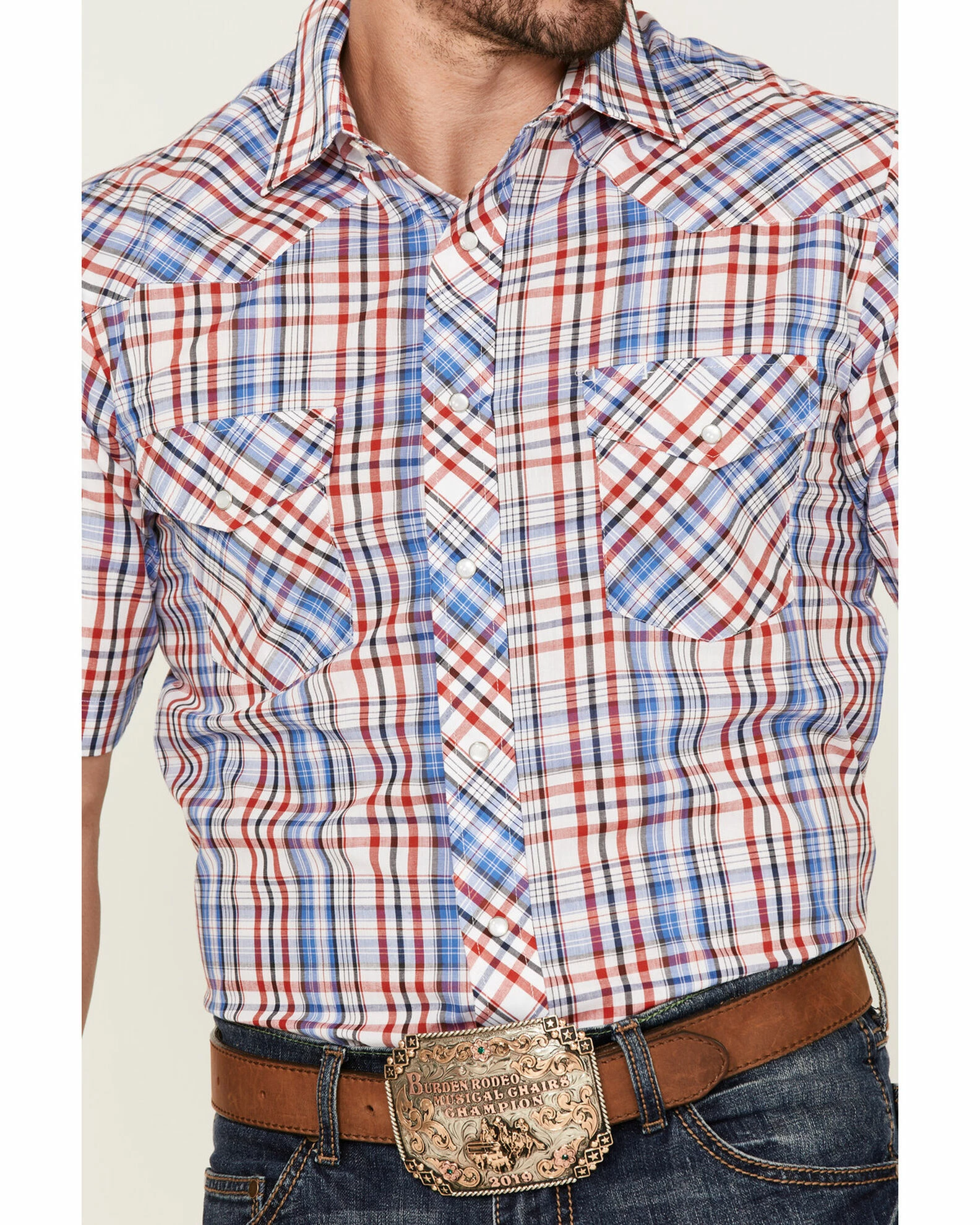Roper Men’s Red White & Blue Large Plaid Short Sleeve Snap Western Shirt