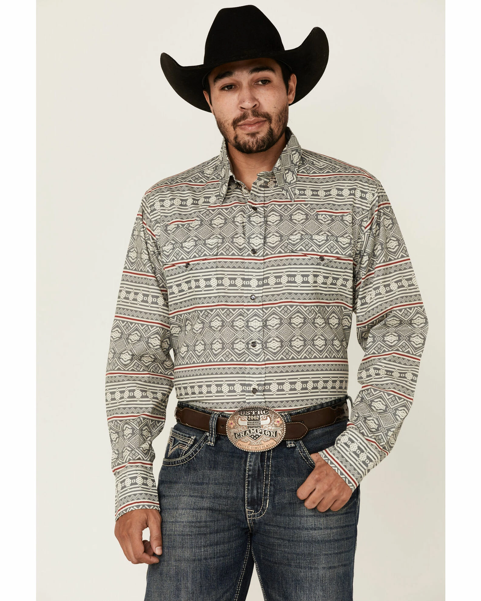 Be the first to review “Roper Men’s Southwestern Textured Geo Print Long Sleeve Snap Western Shirt Grey” Cancel reply