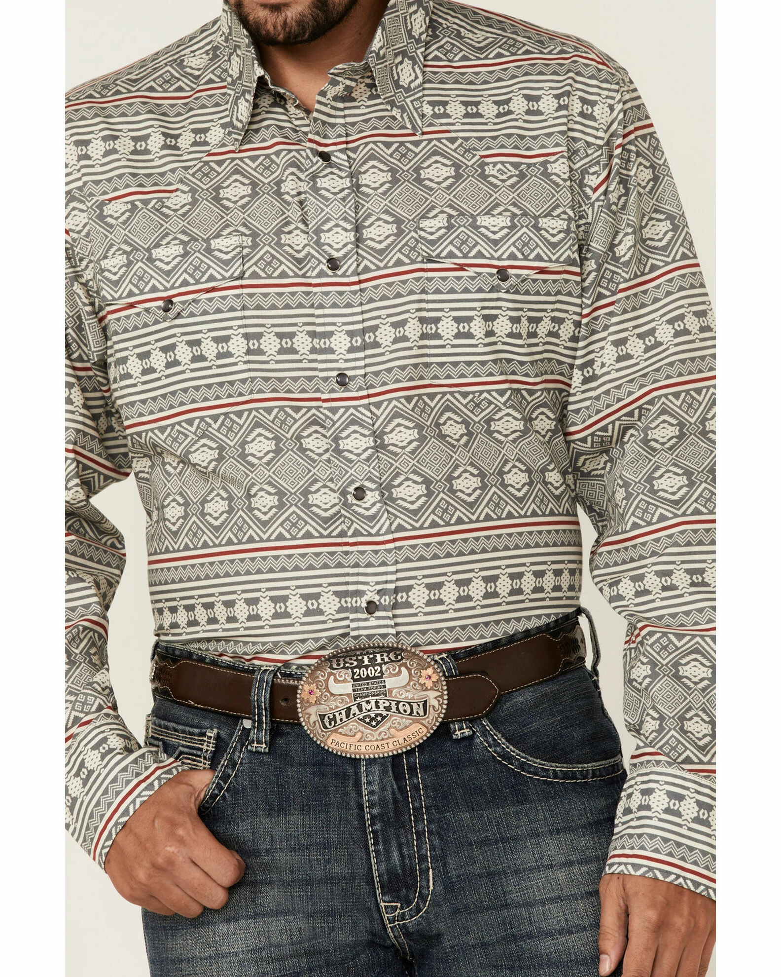 - Pearl snap down placket