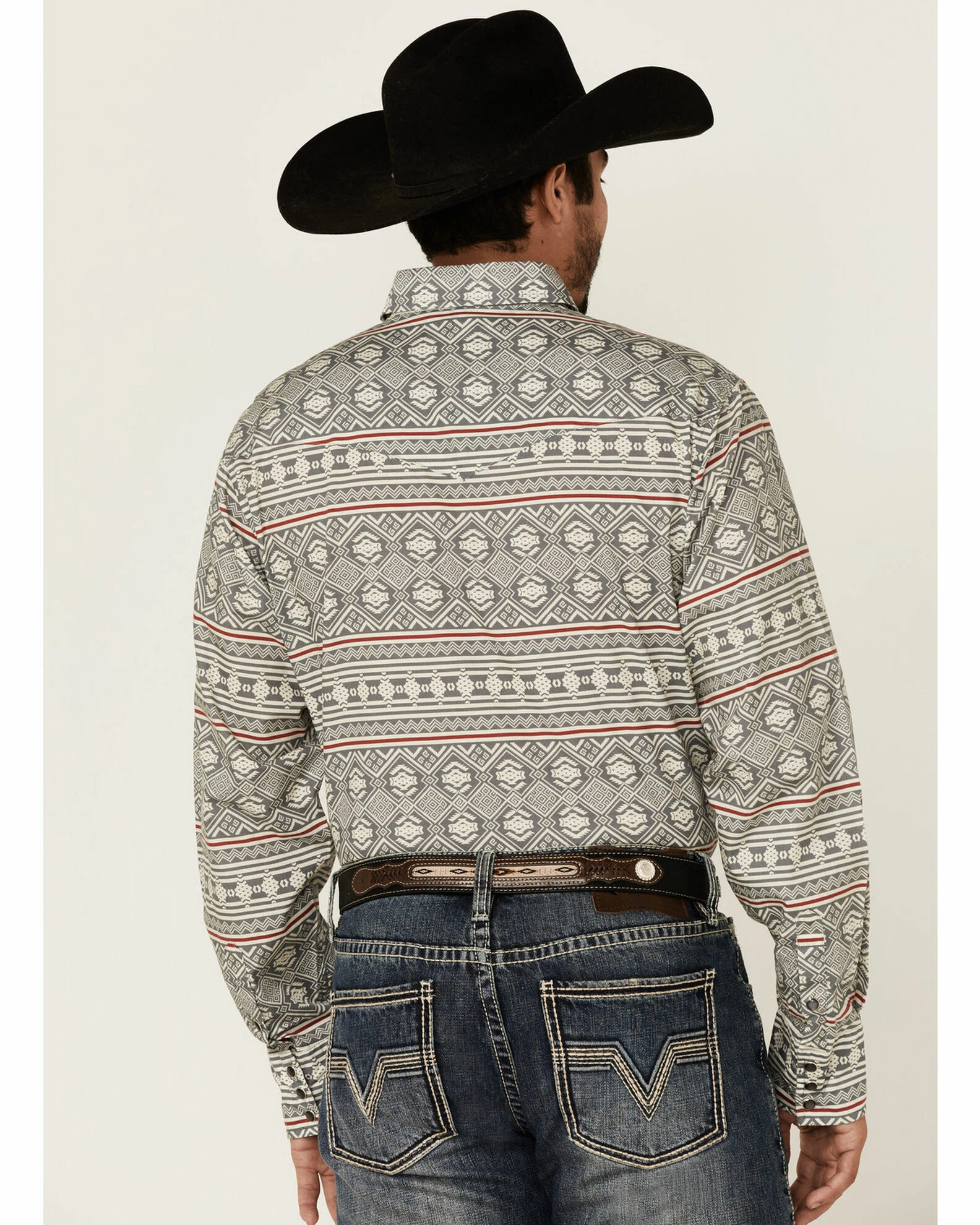Roper Men’s Southwestern Textured Geo Print Long Sleeve Snap Western Shirt Grey