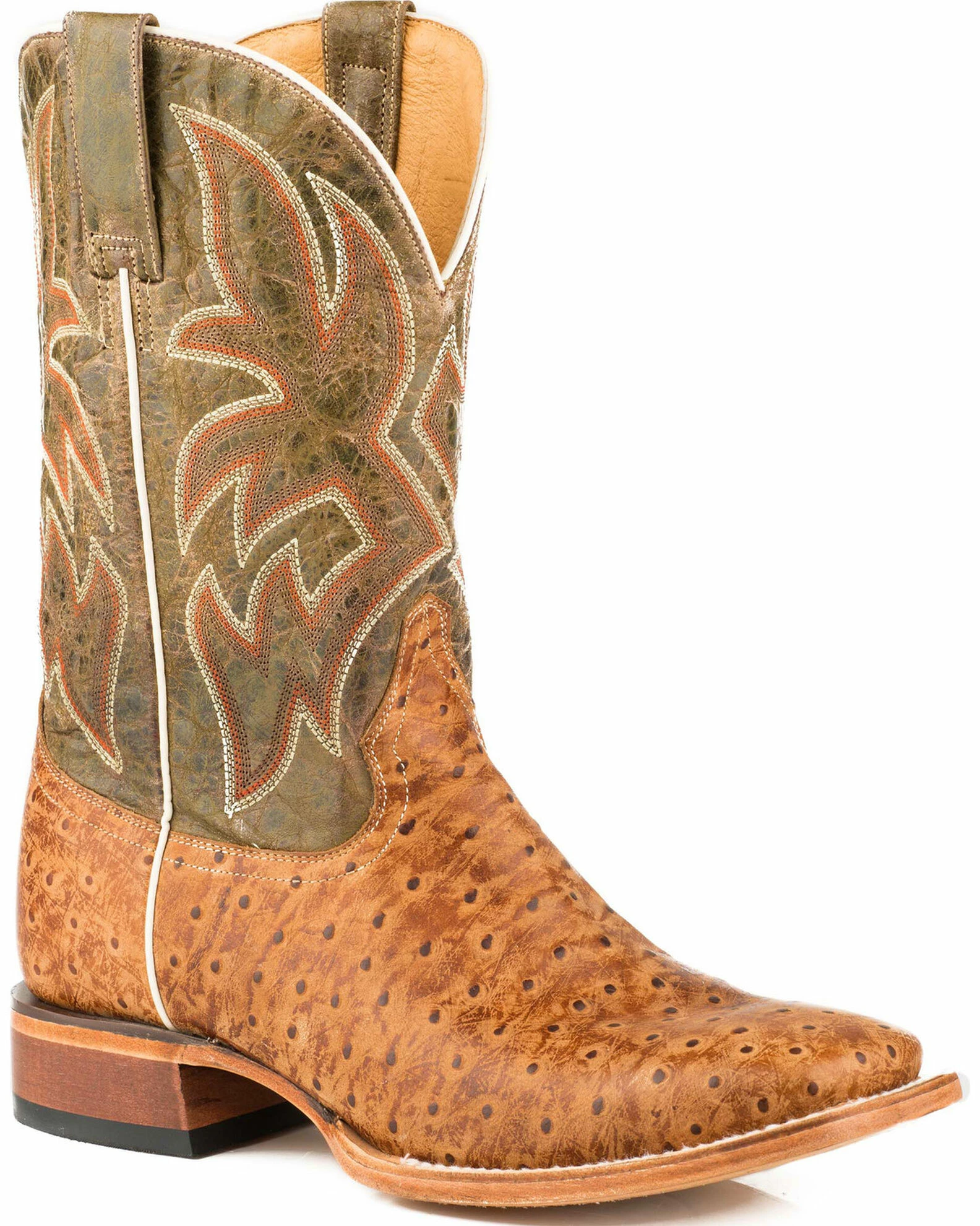 Roper Men’s Stretch Embossed Ostrich Cowboy Boots – Square Toe Tan