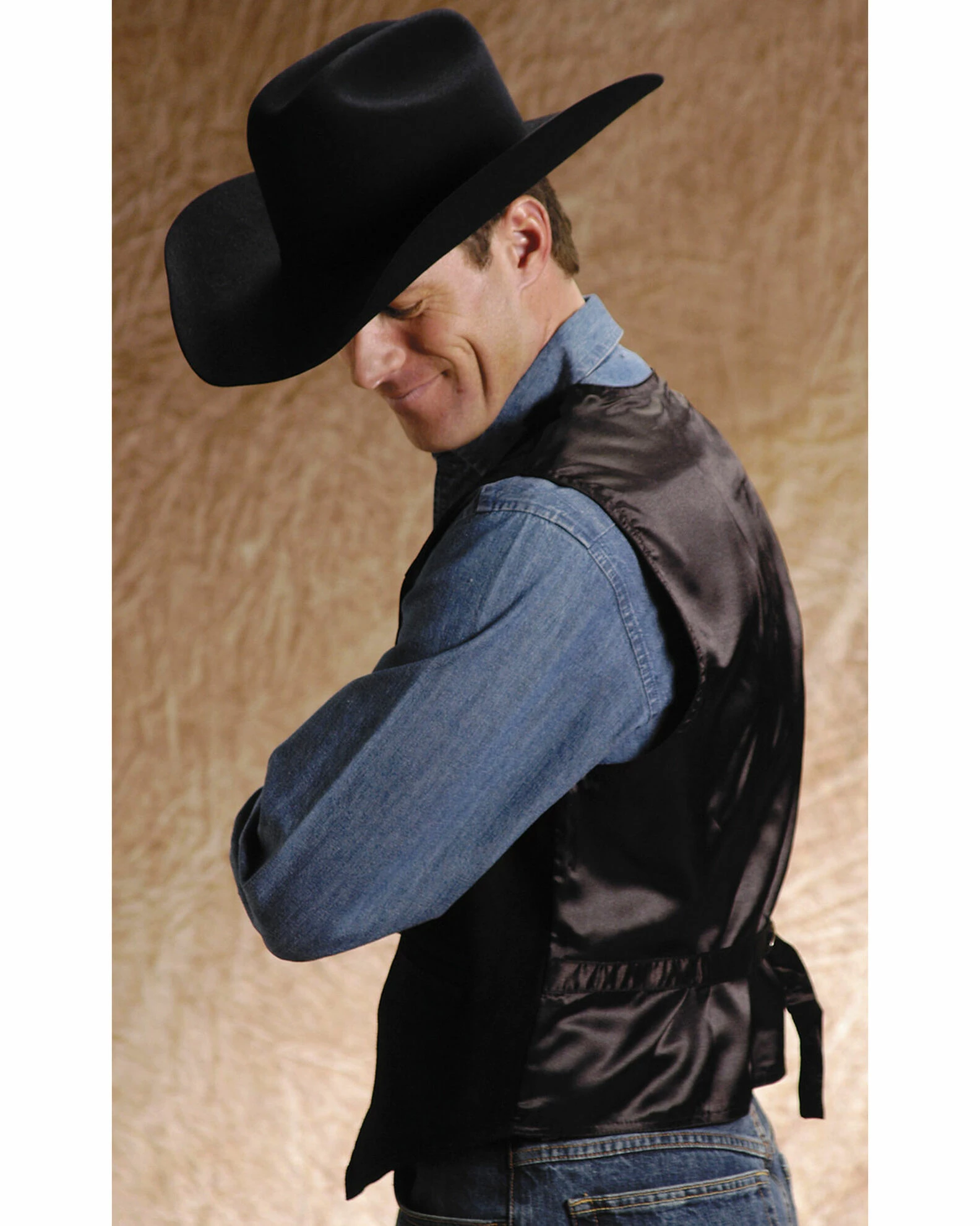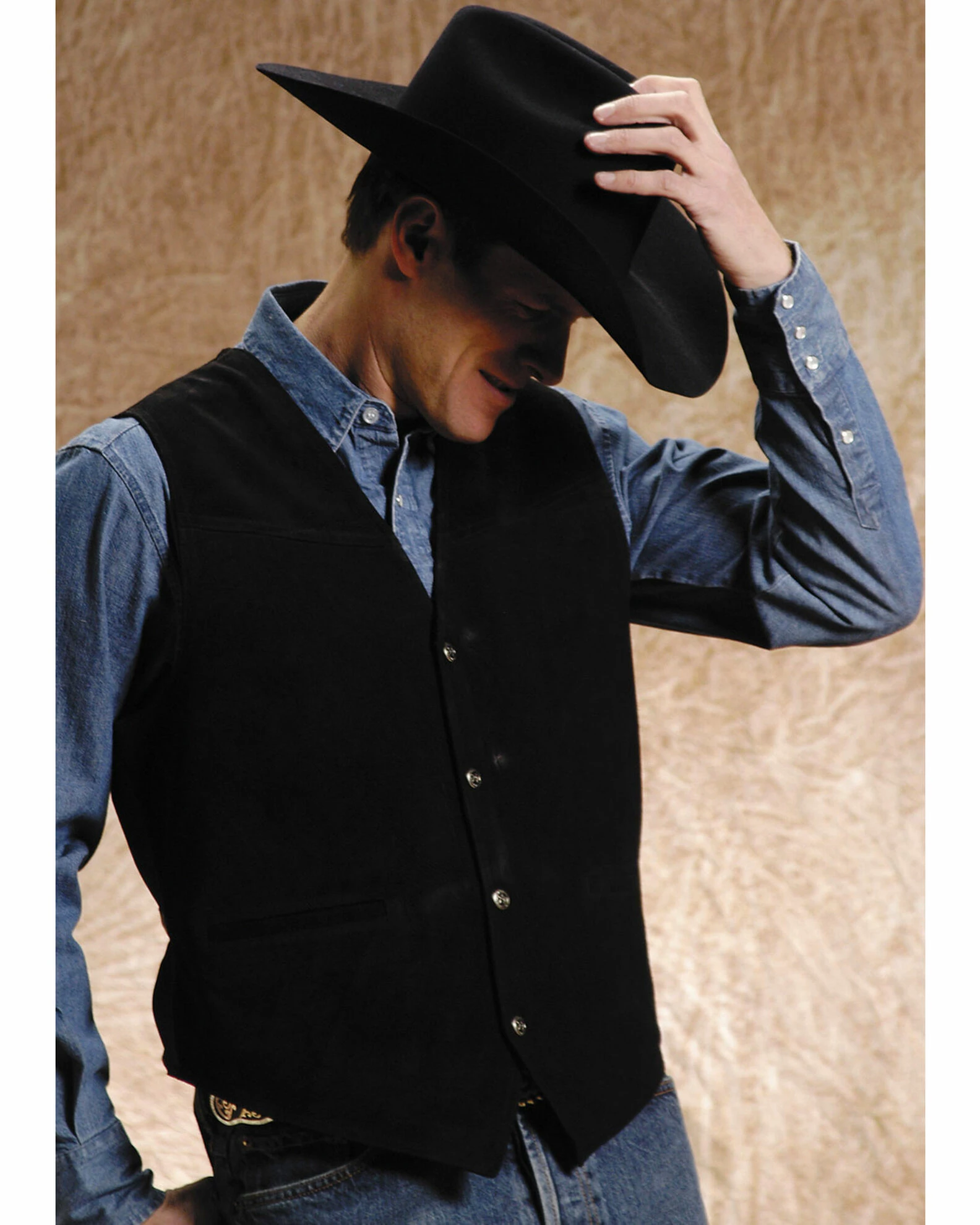 Dress up any western outfit with this men’s black suede western vest by Roper. The durable suede front and polyester lining is a great combination for a traditional western feel. This vest will look great over a solid long sleeve shirt. You will be ready to hit the town in style in this classic western vest.