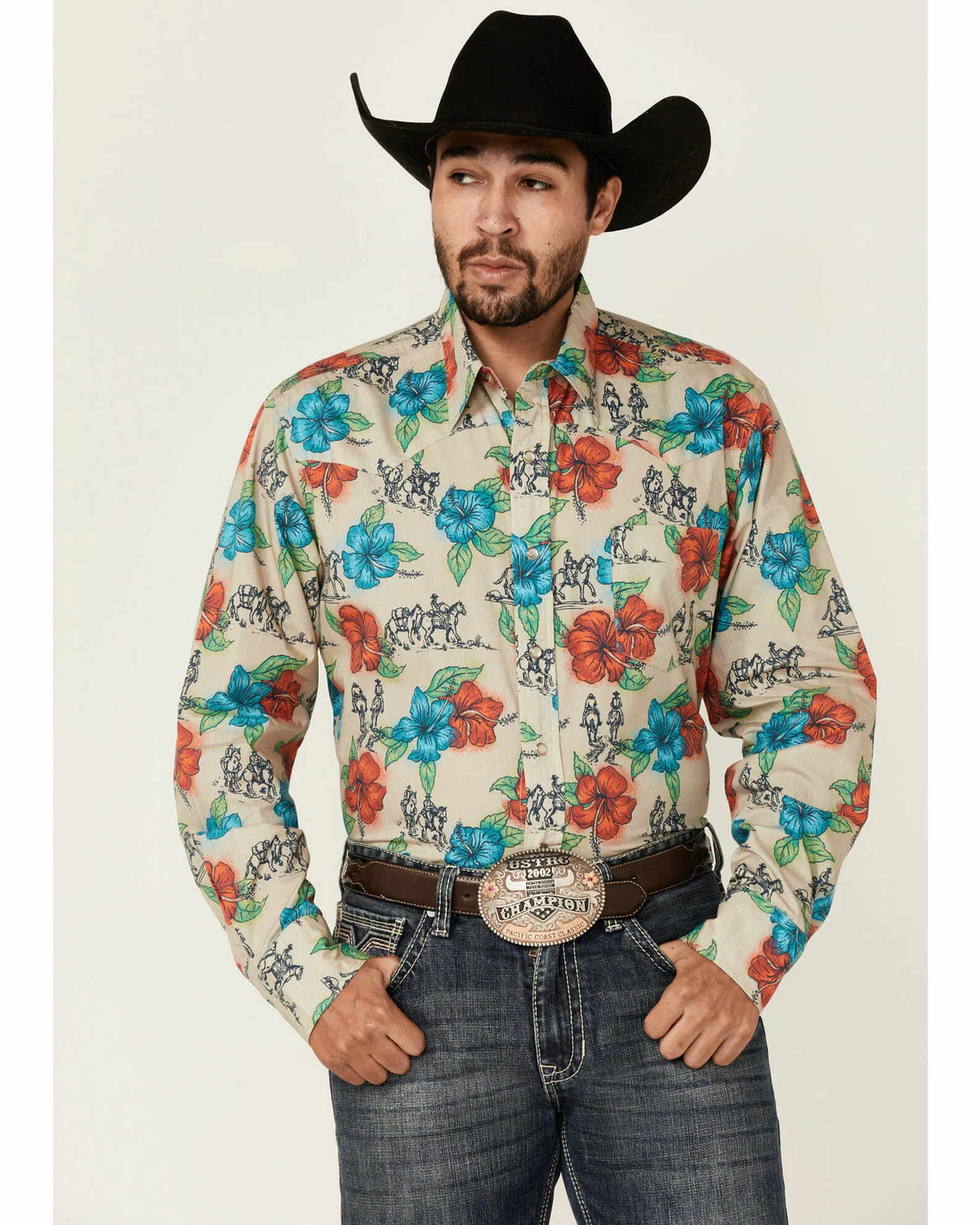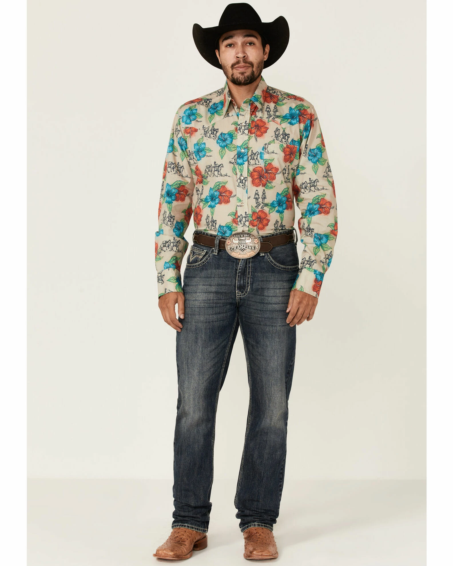 Roper Men’s Trail Ride Tropical Floral Print Long Sleeve Snap Western Shirt Multi