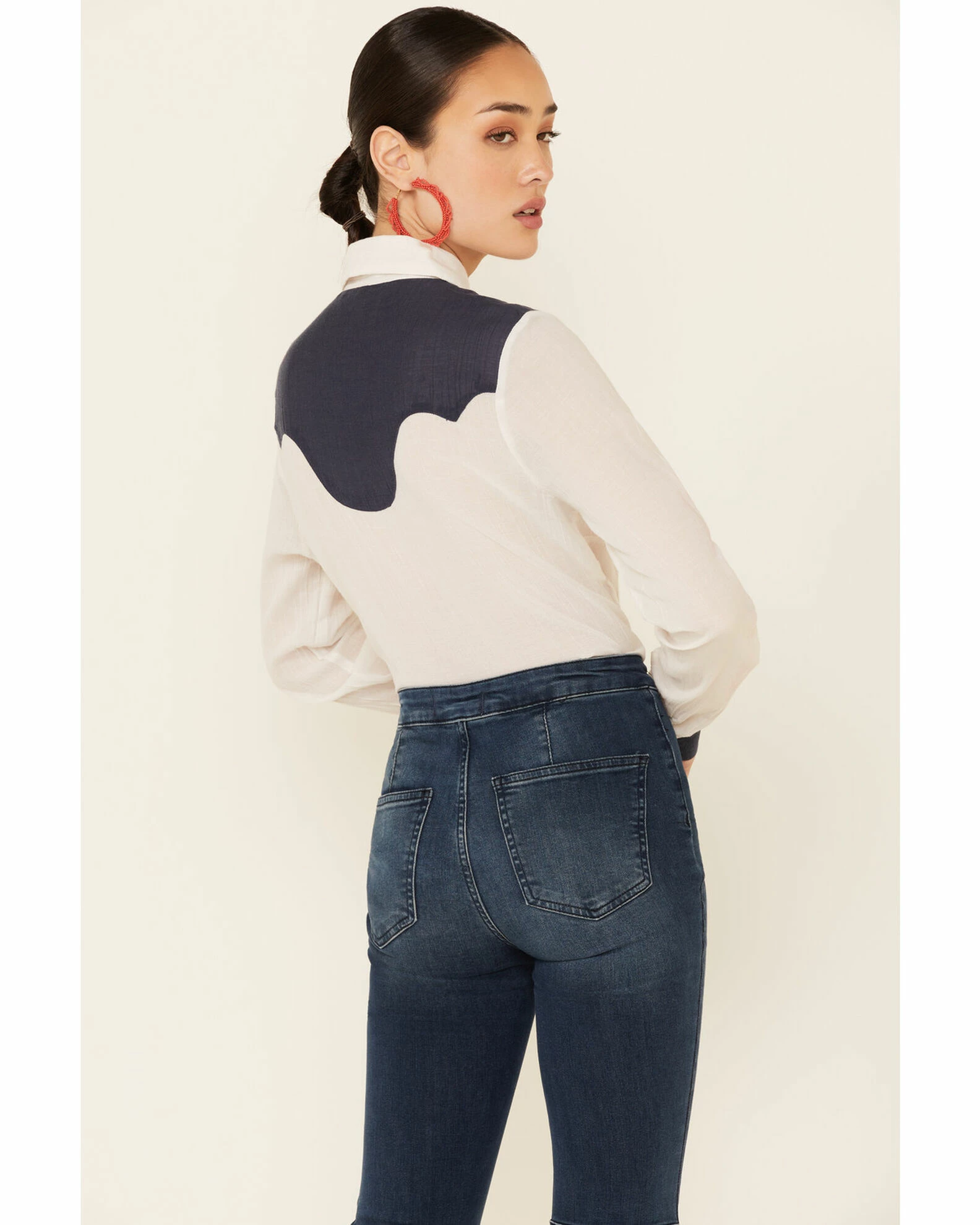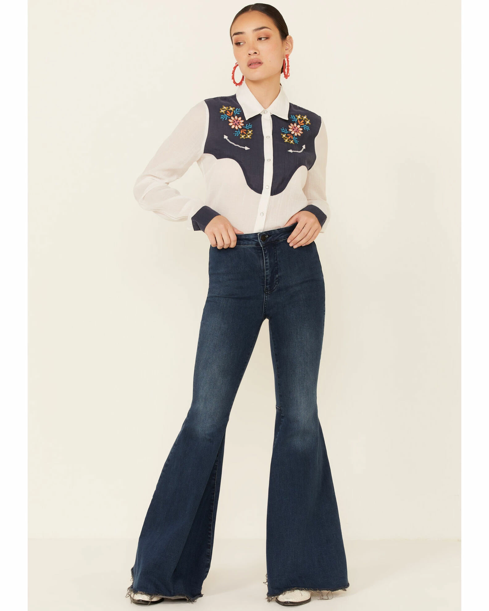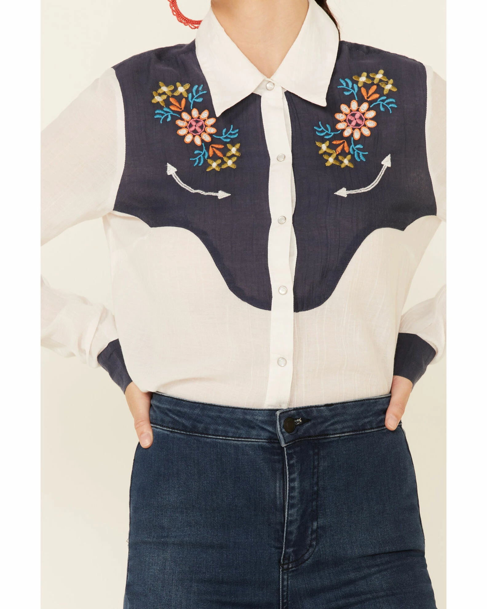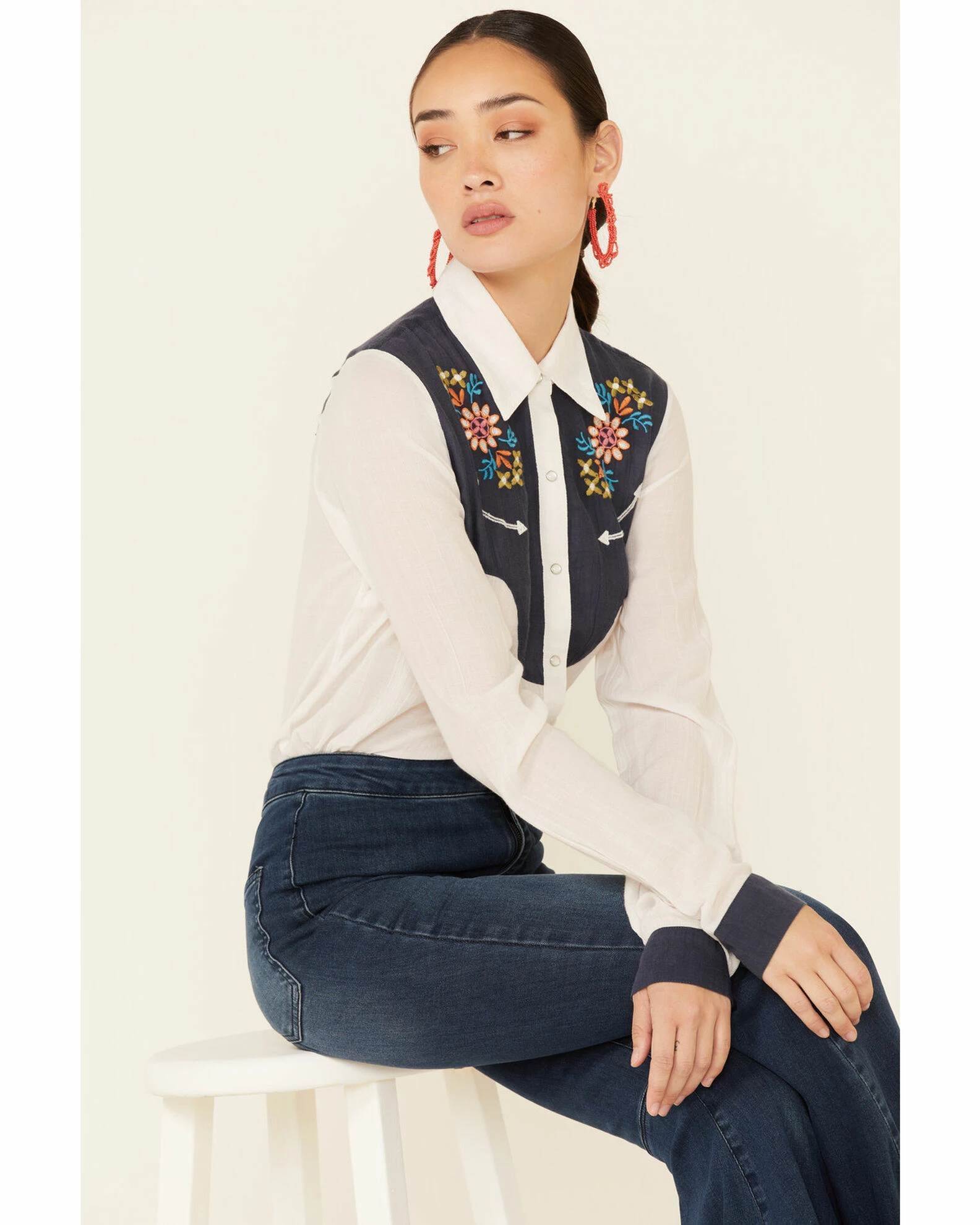 Roper Studio West Women’s White Embroidered Yoke Long Sleeve Snap Western Core Shirt
