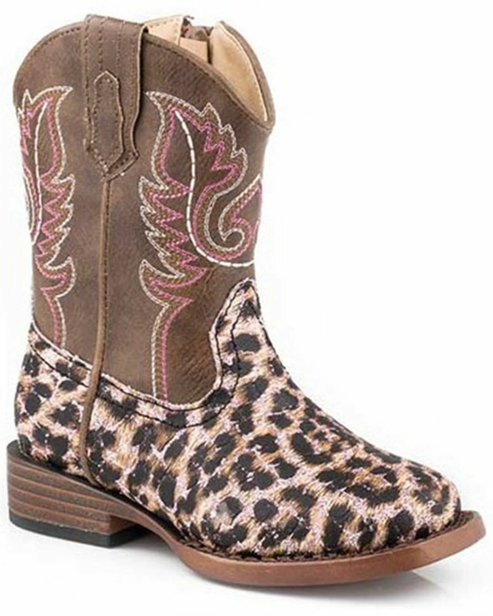 Roper Toddler Girls’ Glitter Leopard Western Boots – Square Toe For Toddler-Girls’