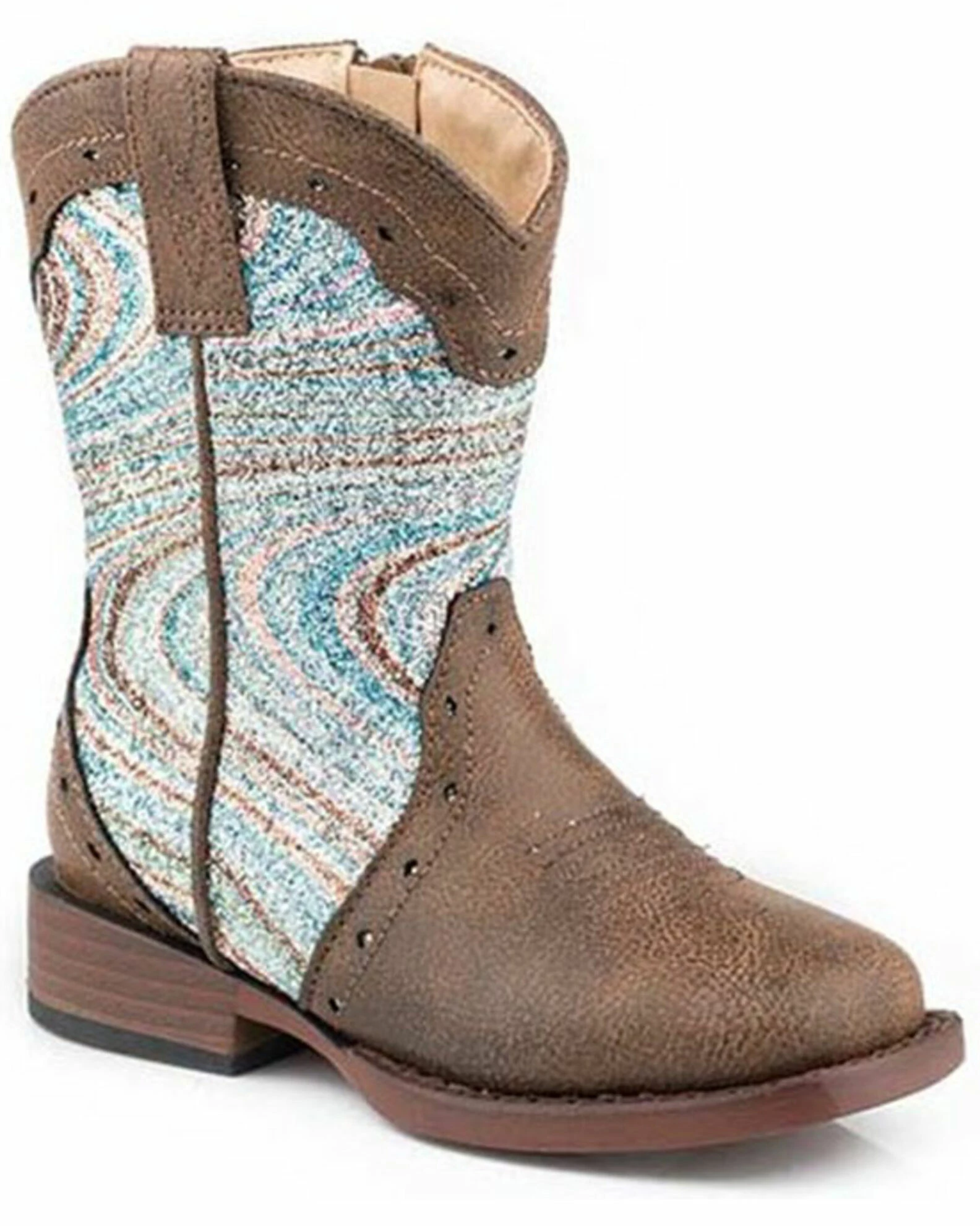 Roper Toddler Girls’ Glitter Swirl Western Boots – Square Toe For Toddler-Girls’