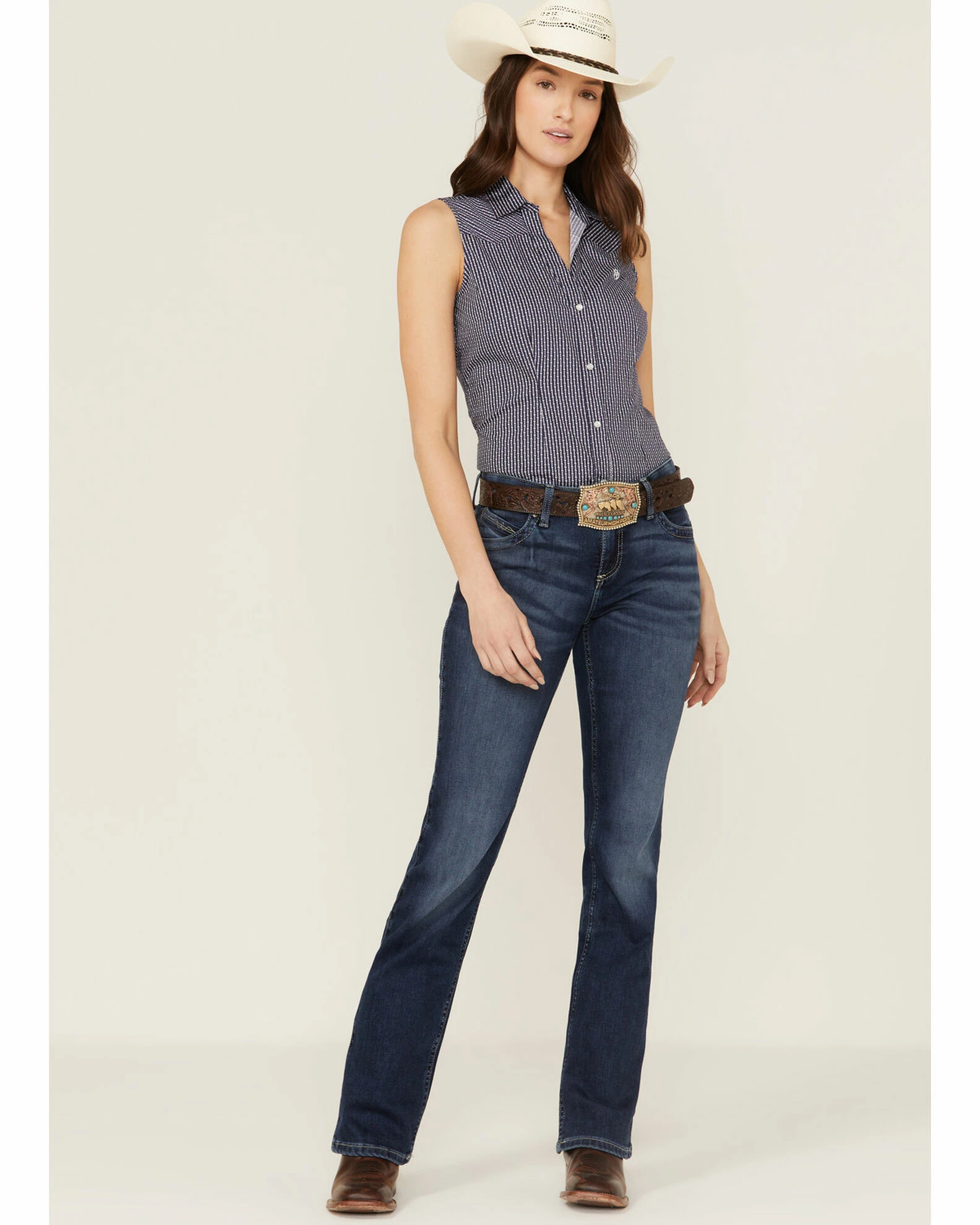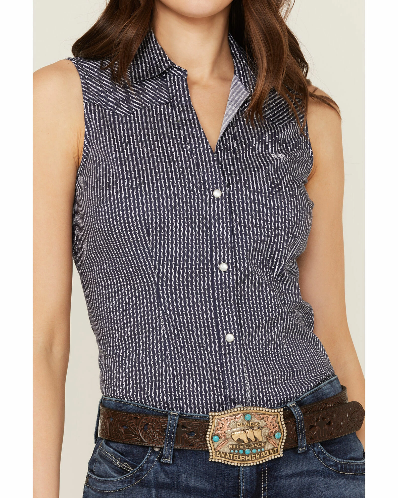 Roper Women’s Amarillo Poplin Sleeveless Snap Western Shirt Navy