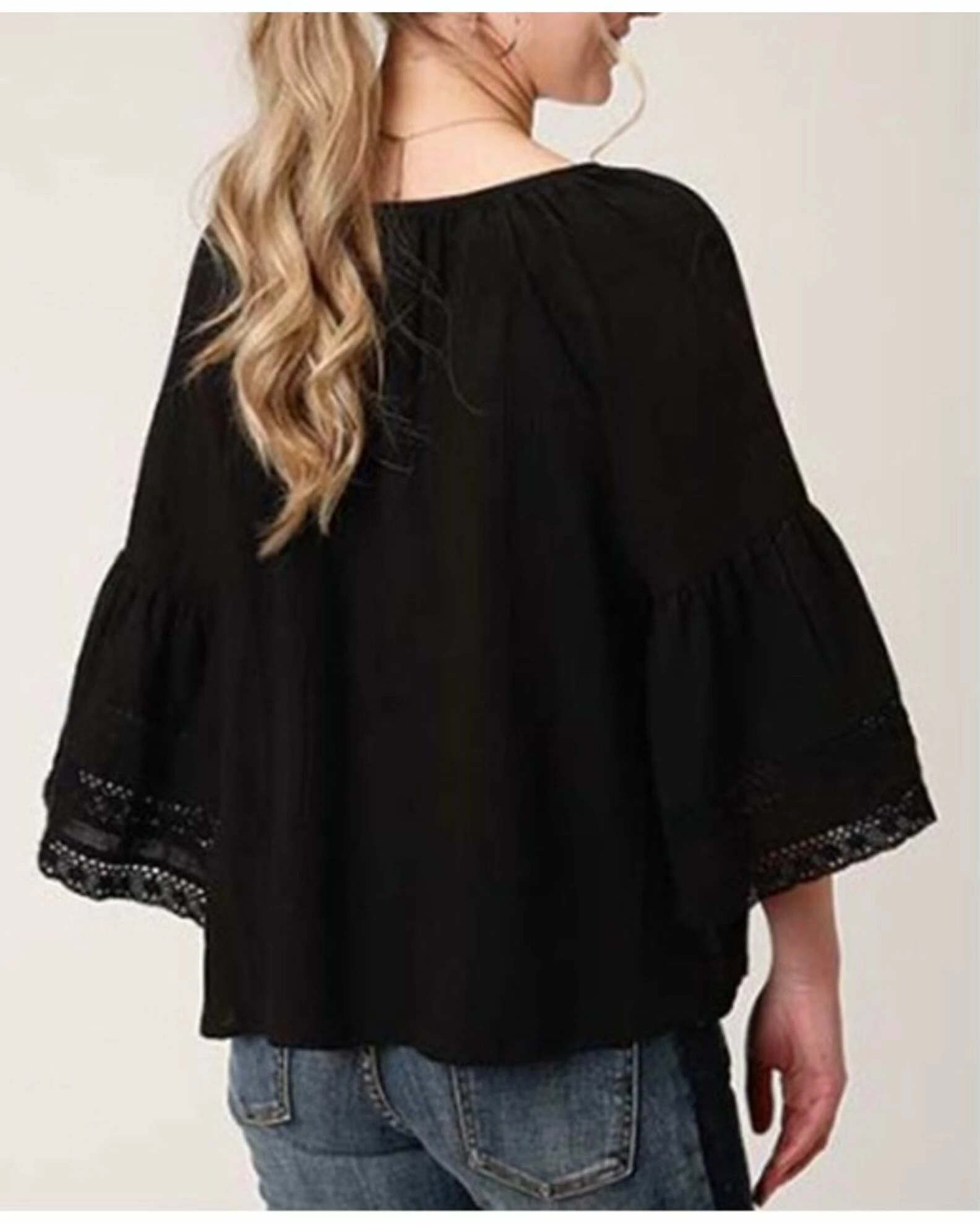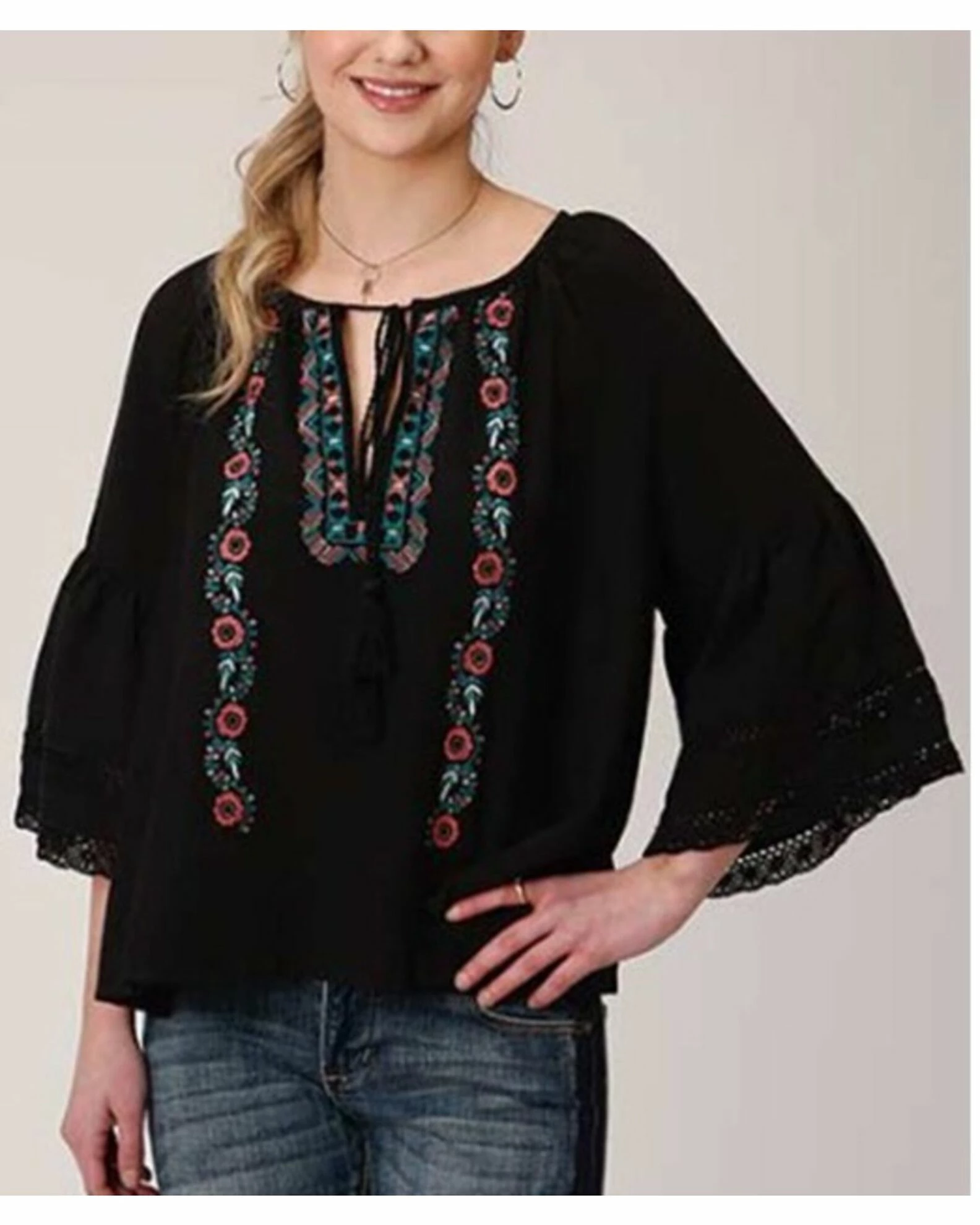 Roper Women’s Bell Sleeve Embroidered Peasant Blouse Black