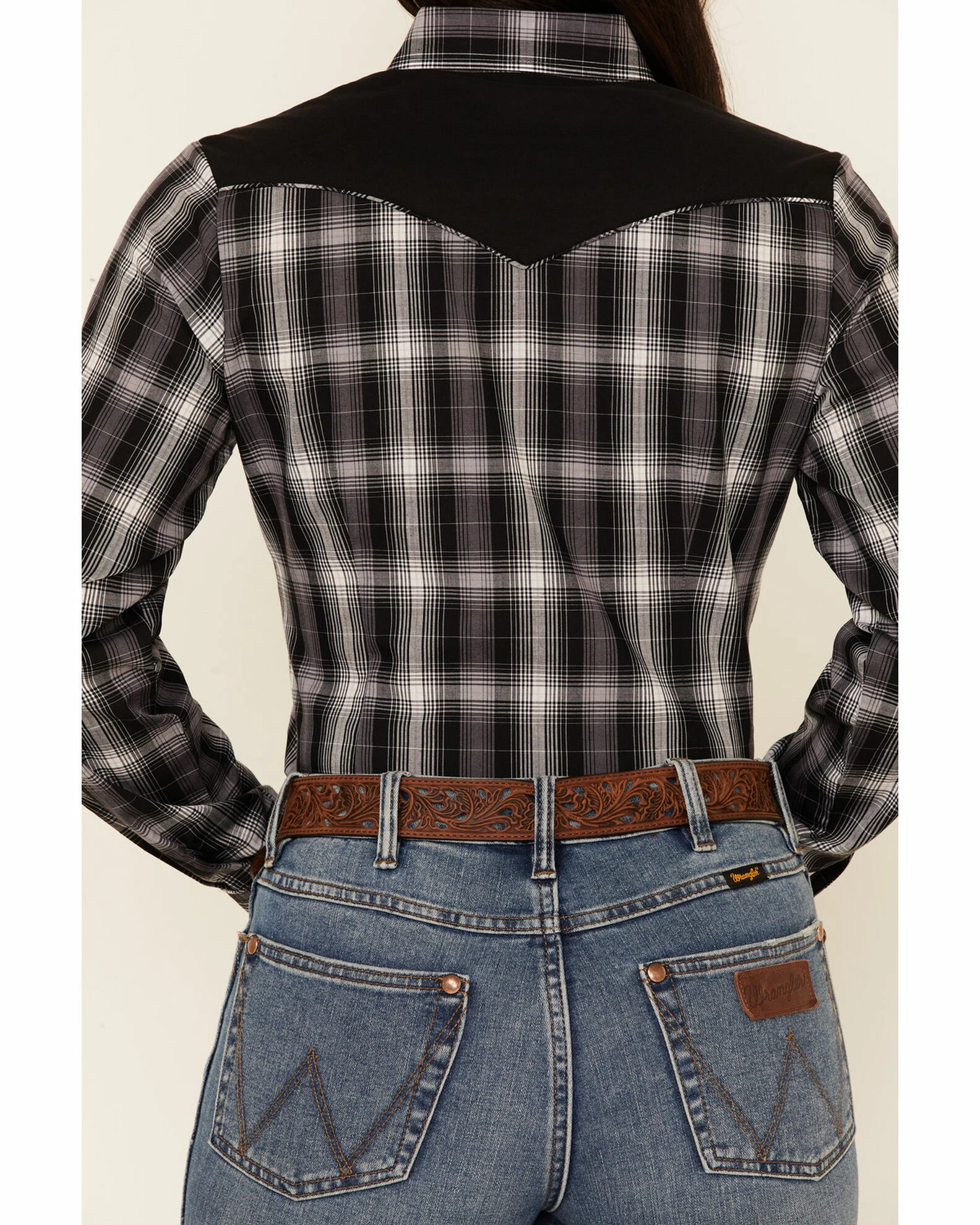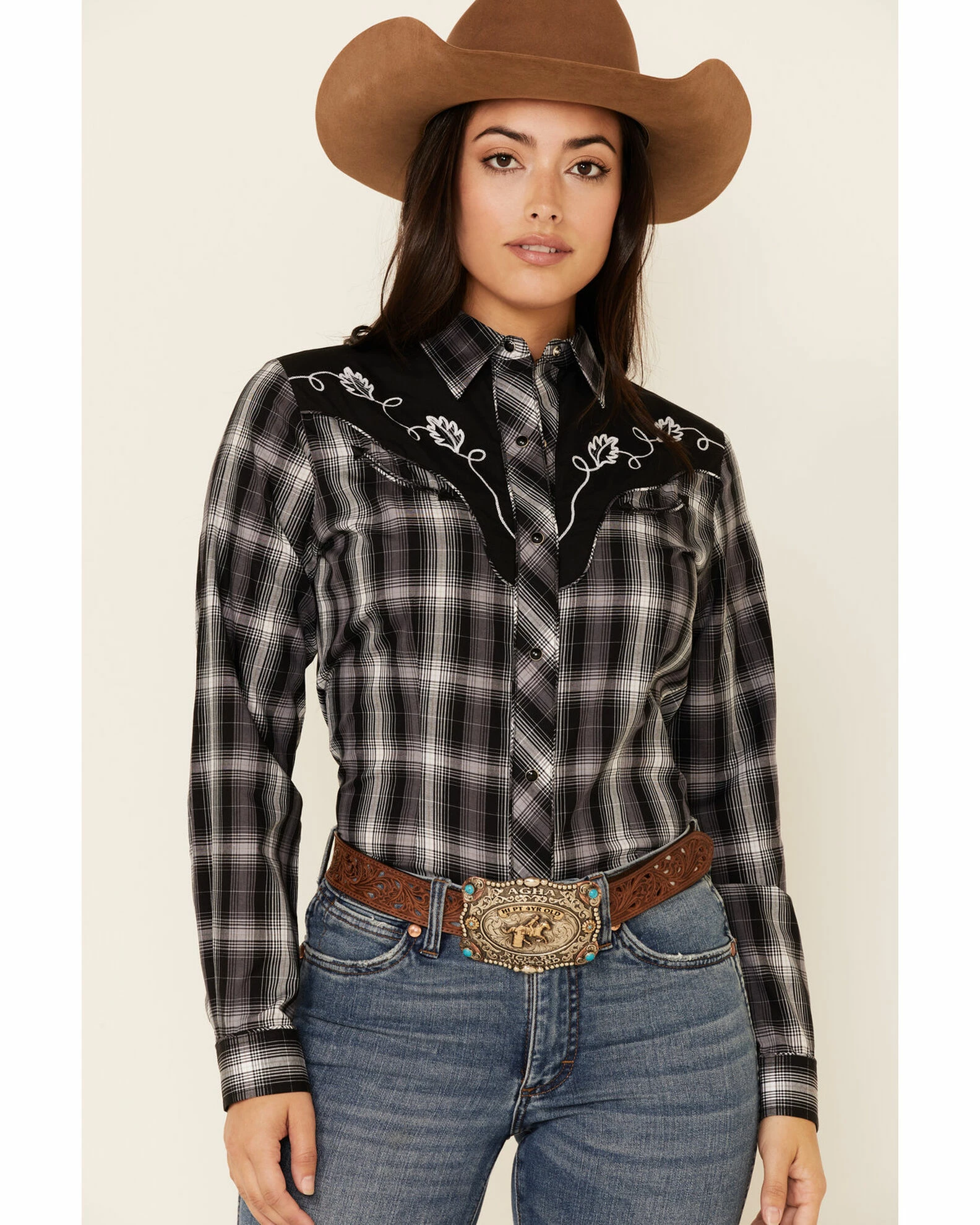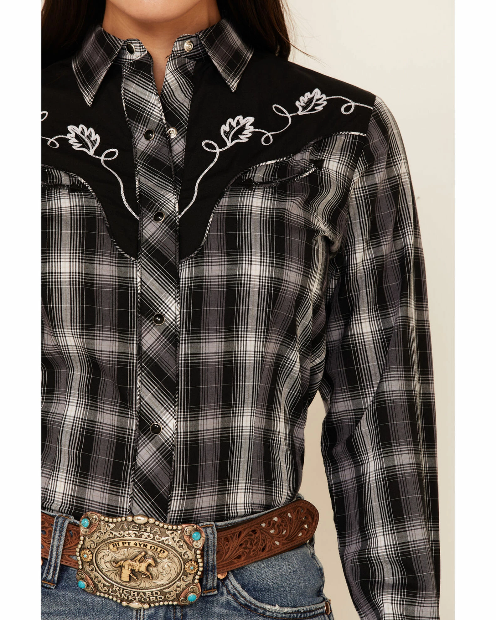 Roper Women’s Black Plaid Fancy Applique Yoke Long Sleeve Snap Western Shirt