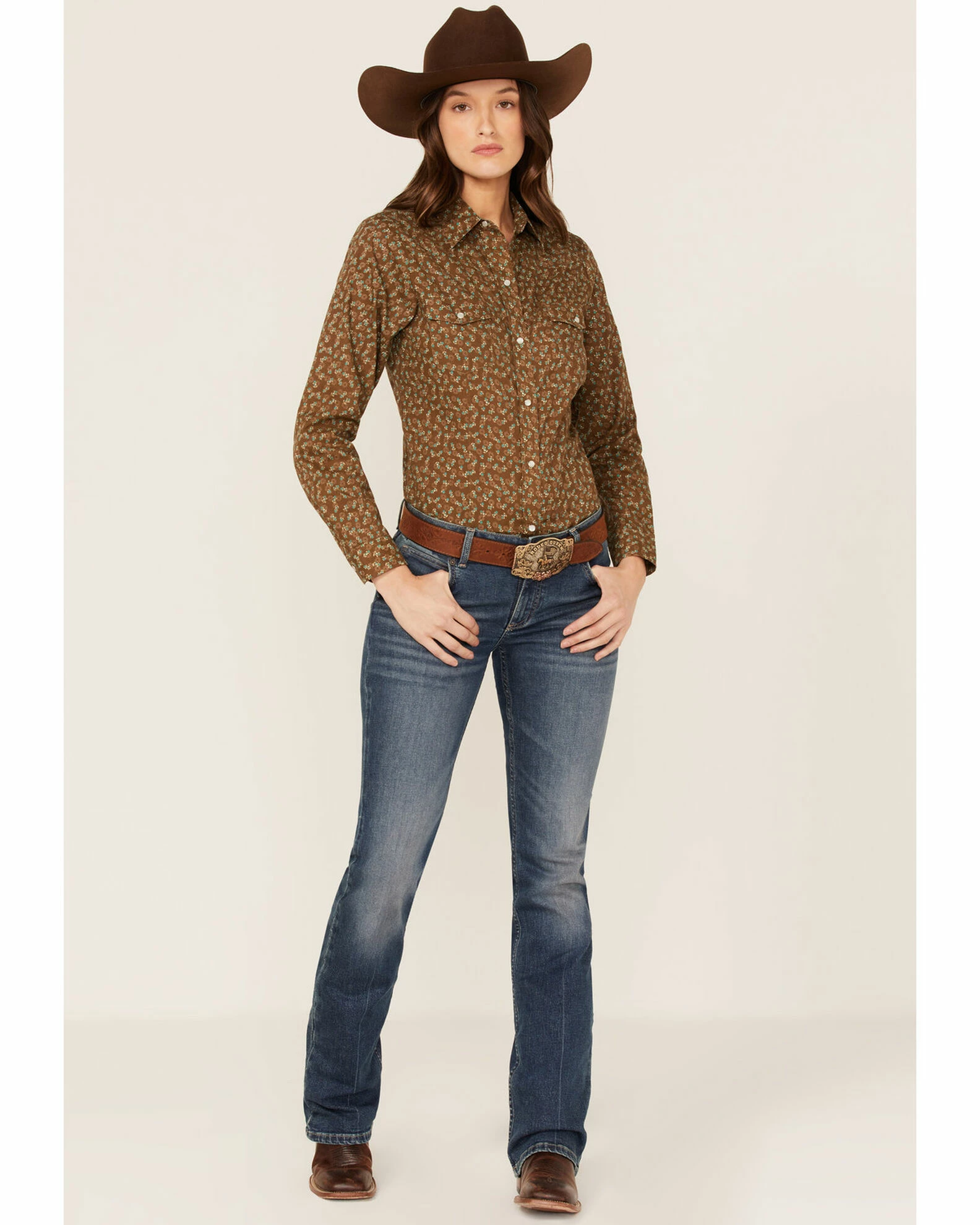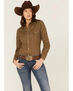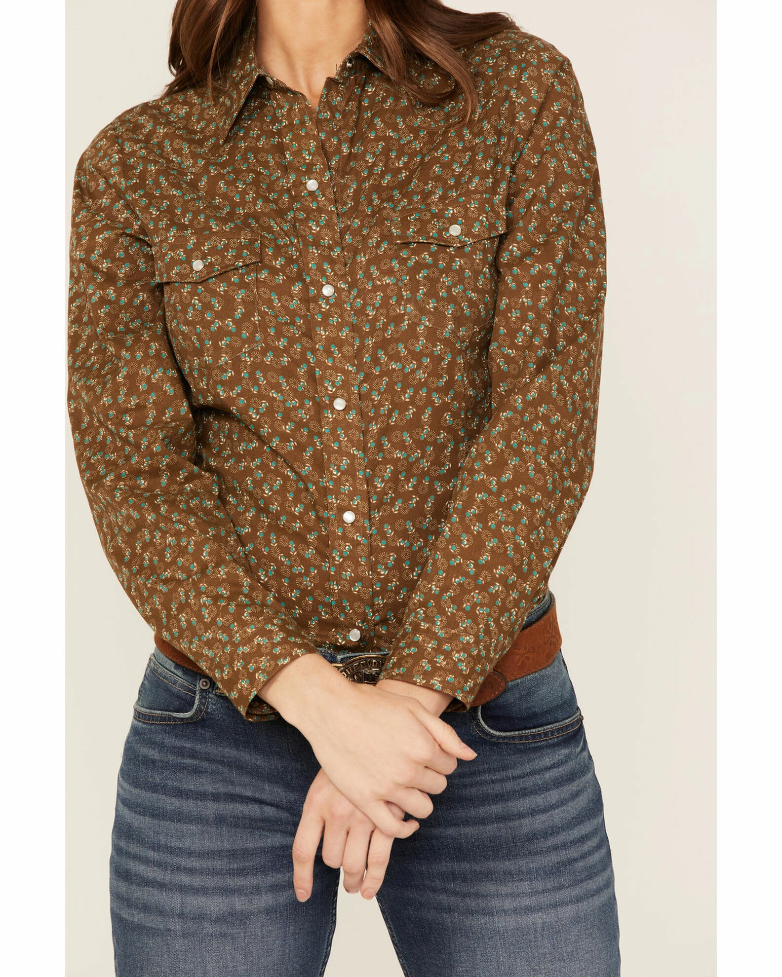 Roper Women’s Floral Geo Print Western Snap Shirt Brown