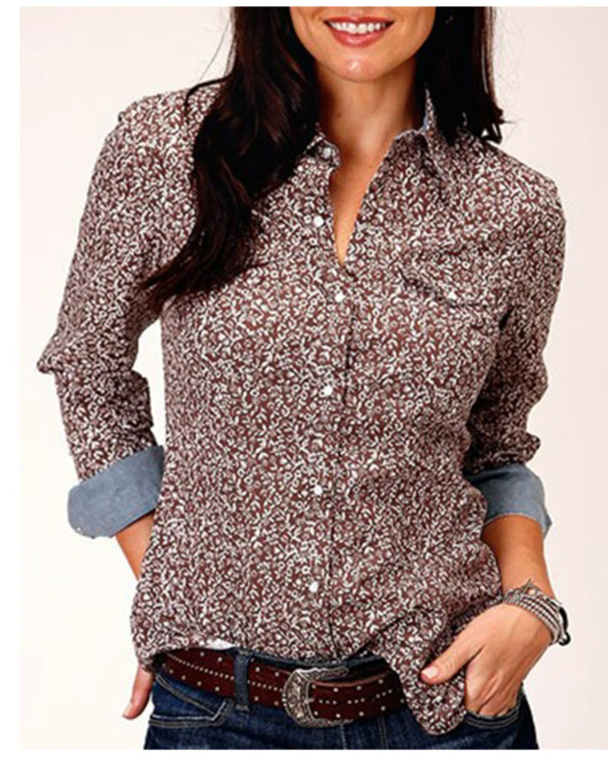 Be the first to review “Roper Women’s Floral Print Long Sleeve Snap Western Shirt – Plus Brown” Cancel reply