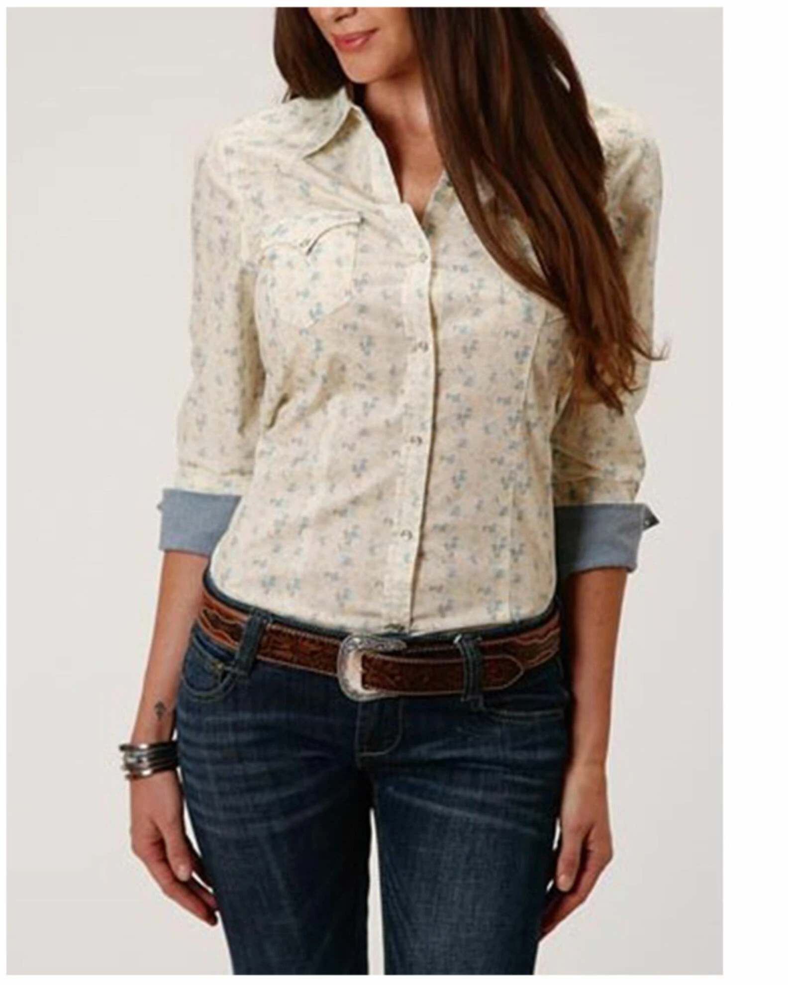 Be the first to review “Roper Women’s Floral Print Long Sleeve Snap Western Shirt – Plus Cream” Cancel reply