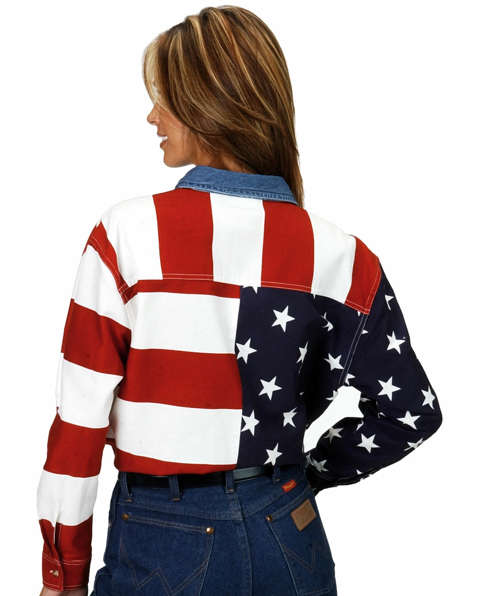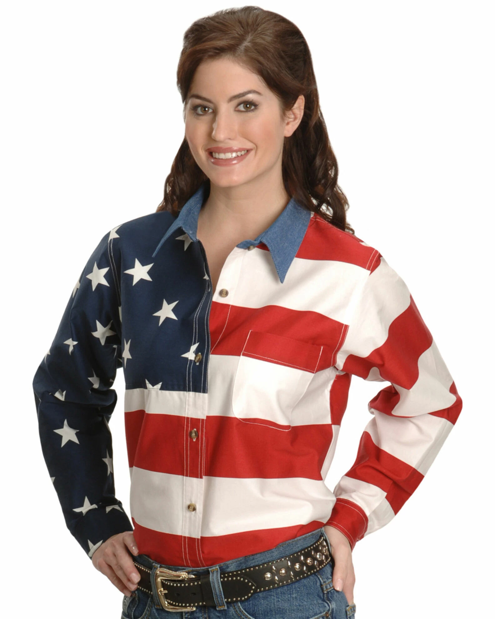 Roper Women’s Long Sleeve American Flag Shirt – Plus White