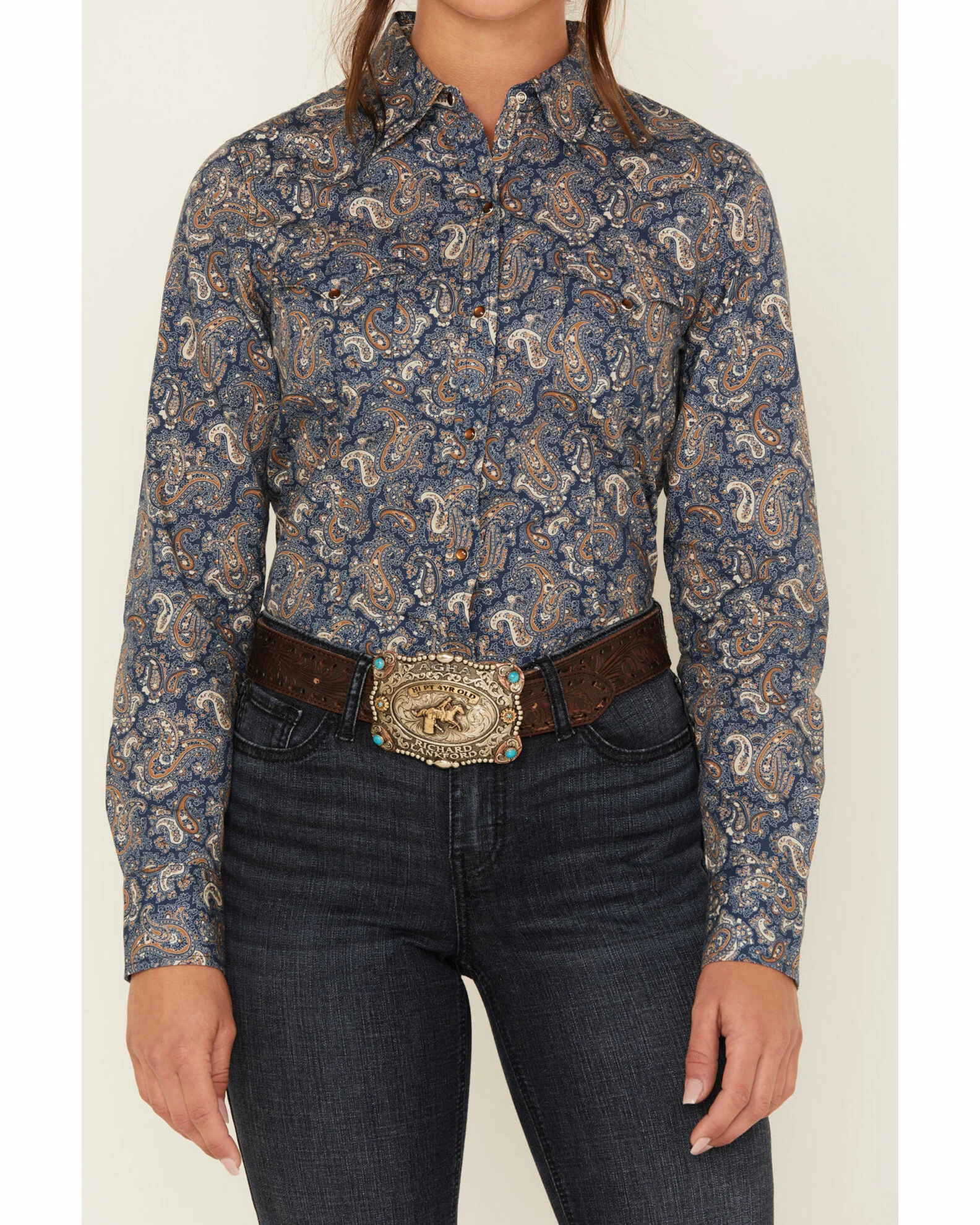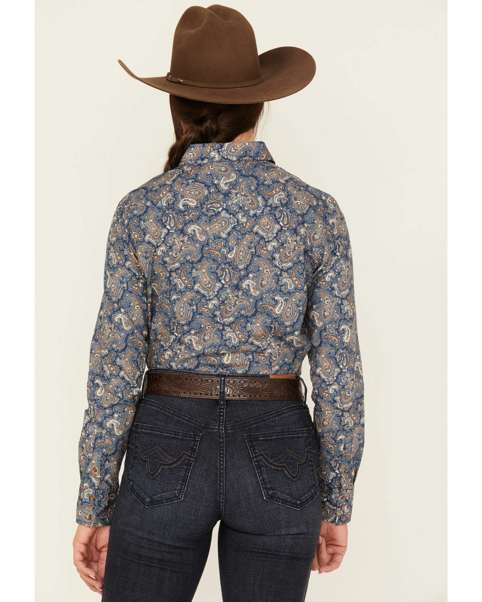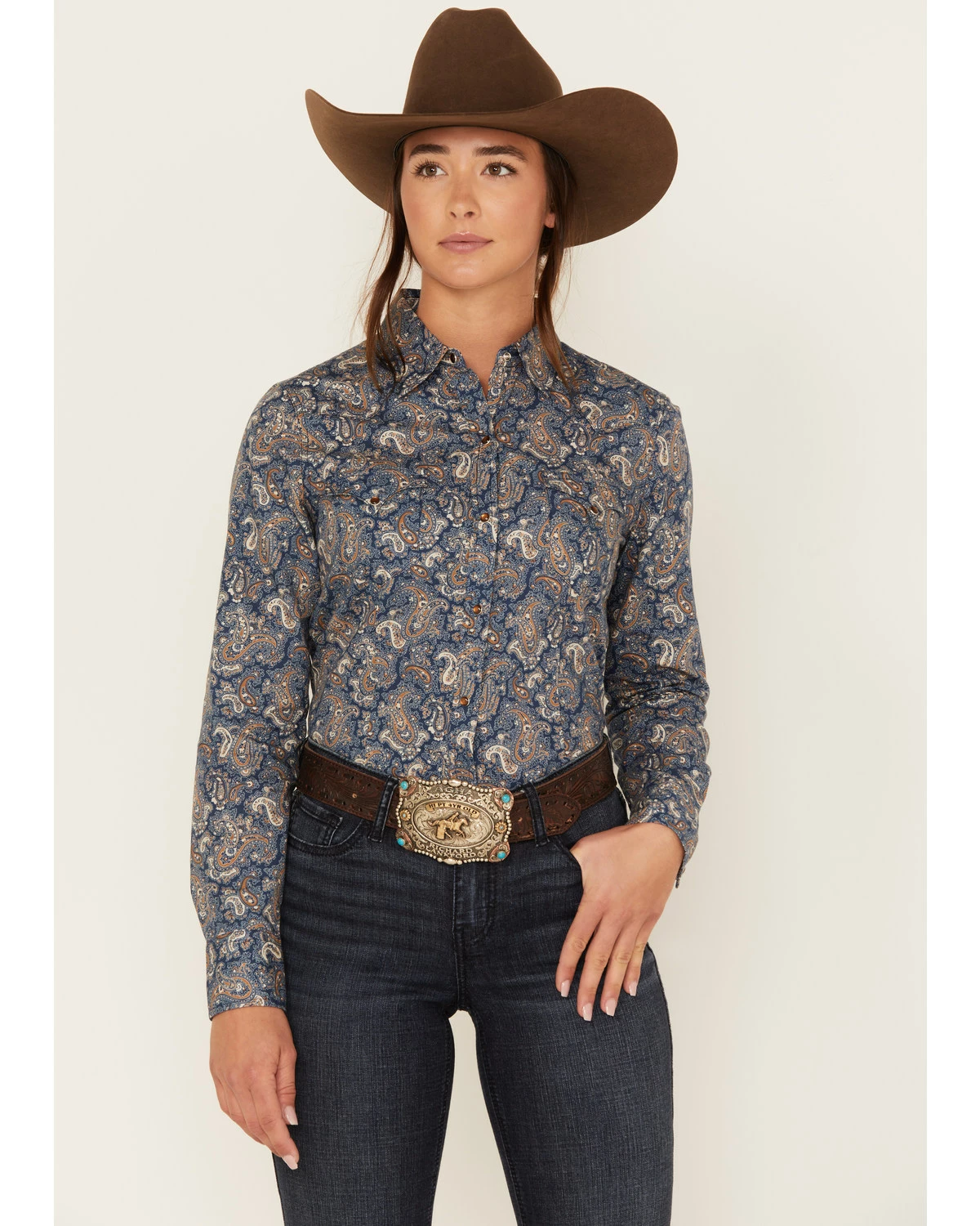Roper Women’s Paisley Print Long Sleeve Snap Western Shirt Blue