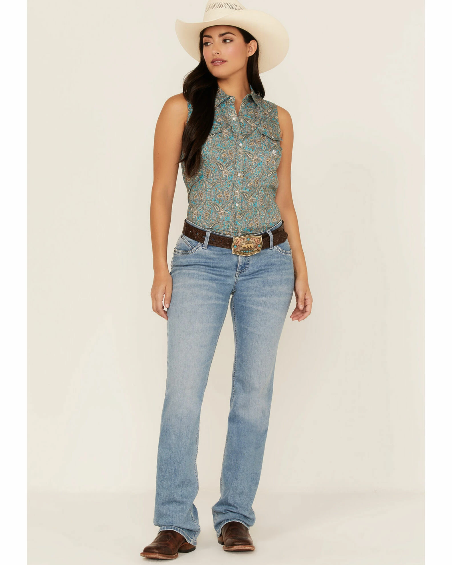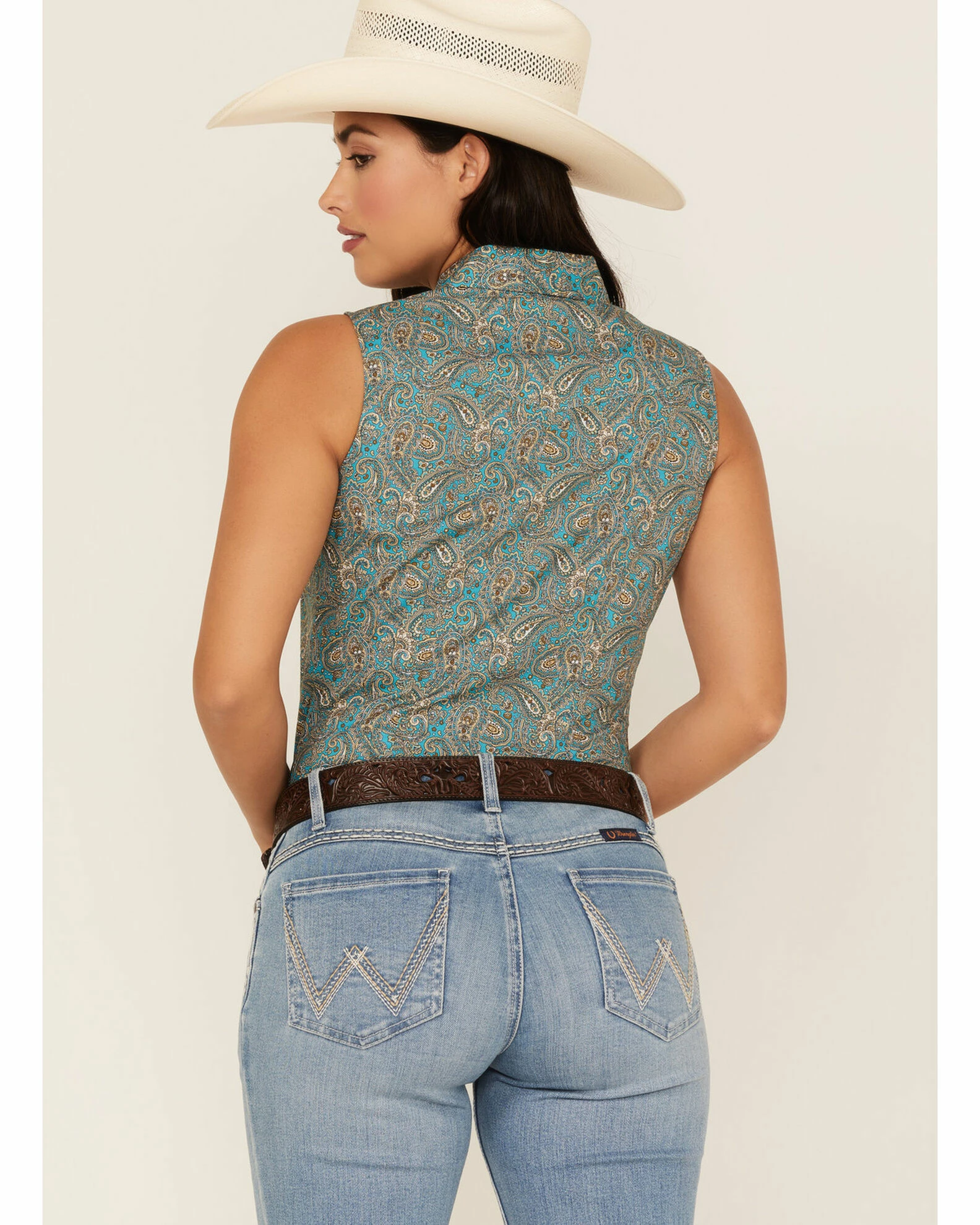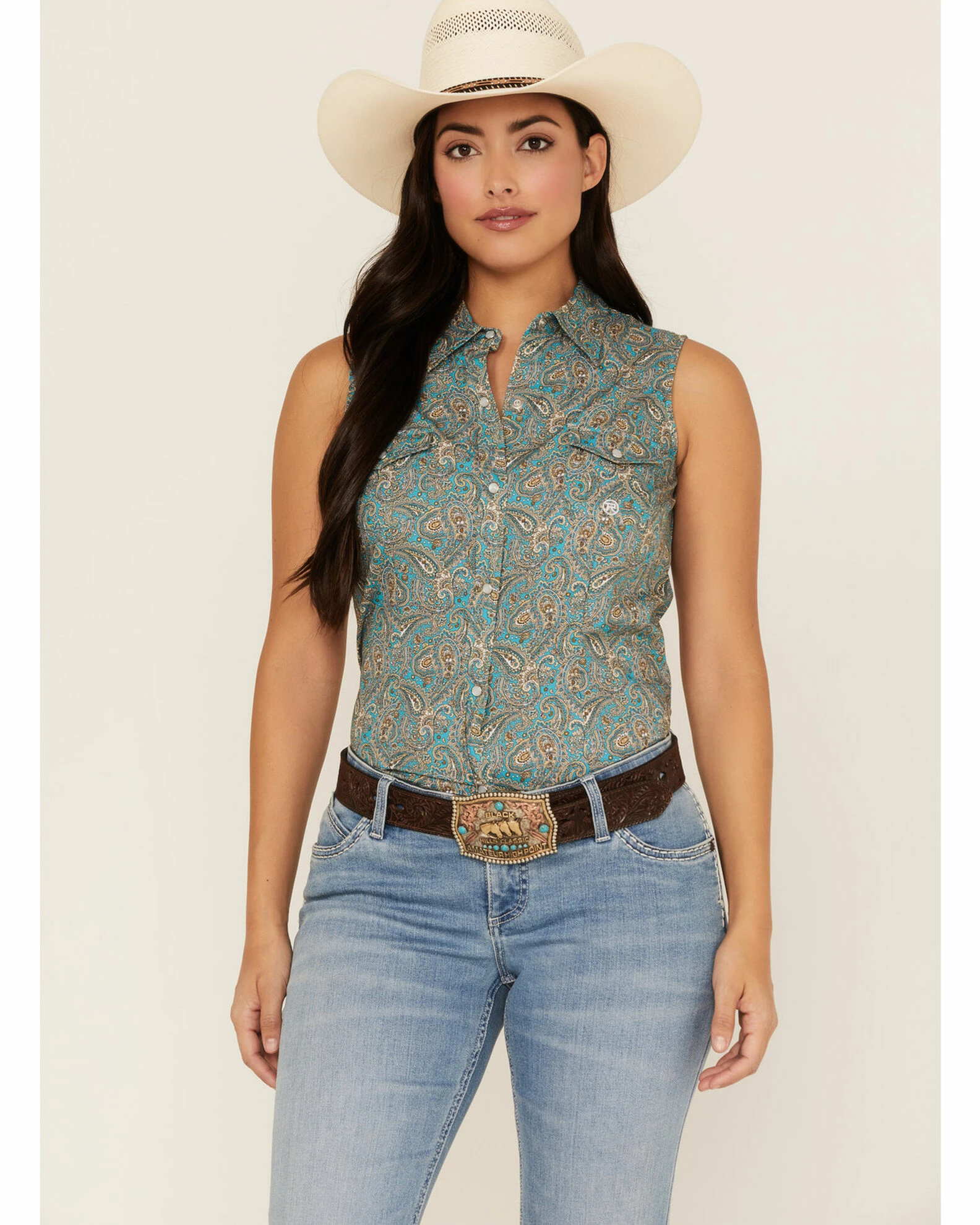 Be the first to review “Roper Women’s Paisley Sleeveless Snap Western Shirt Blue” Cancel reply