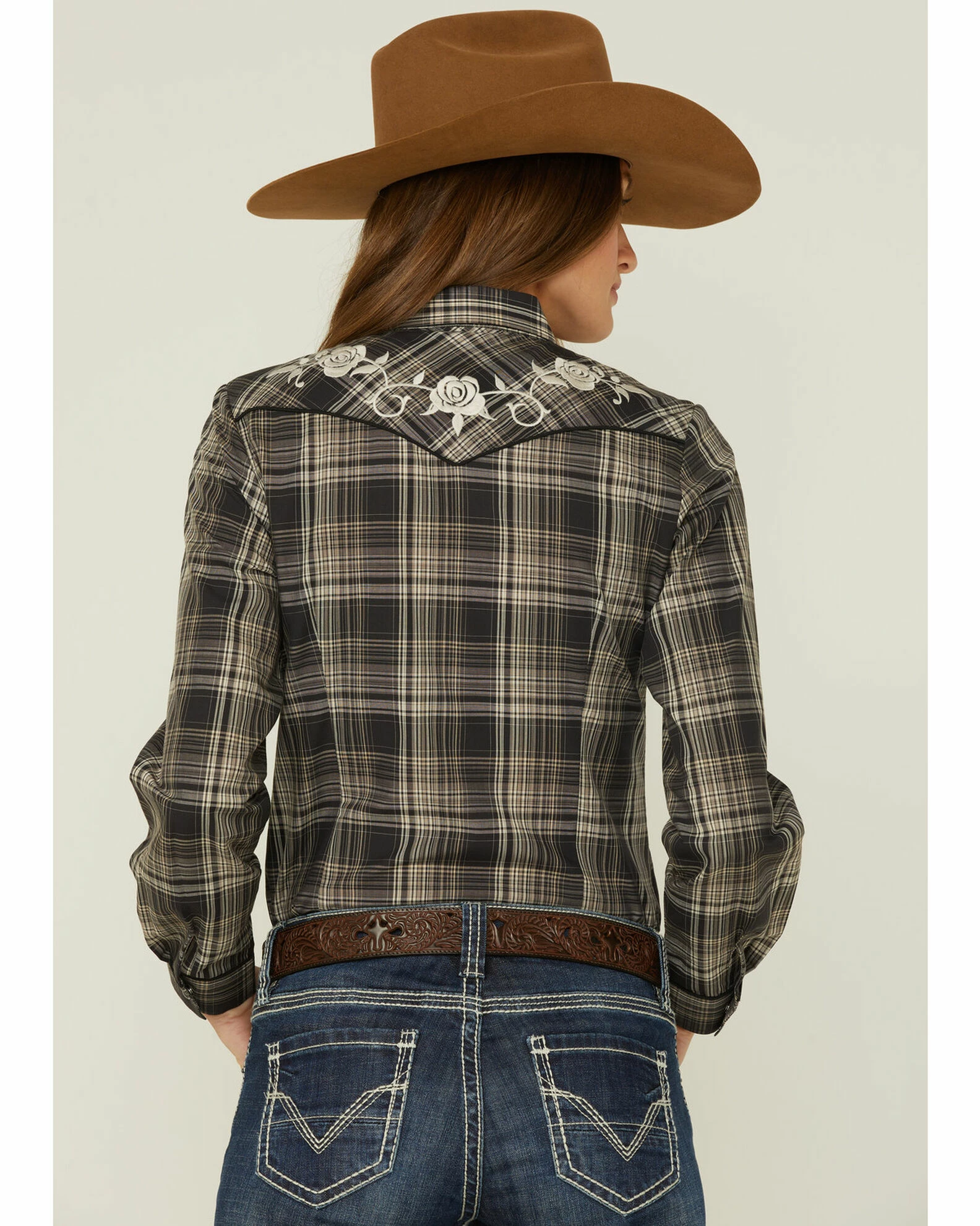 Roper Women’s Plaid Embroidered Black Long Sleeve Western Shirt