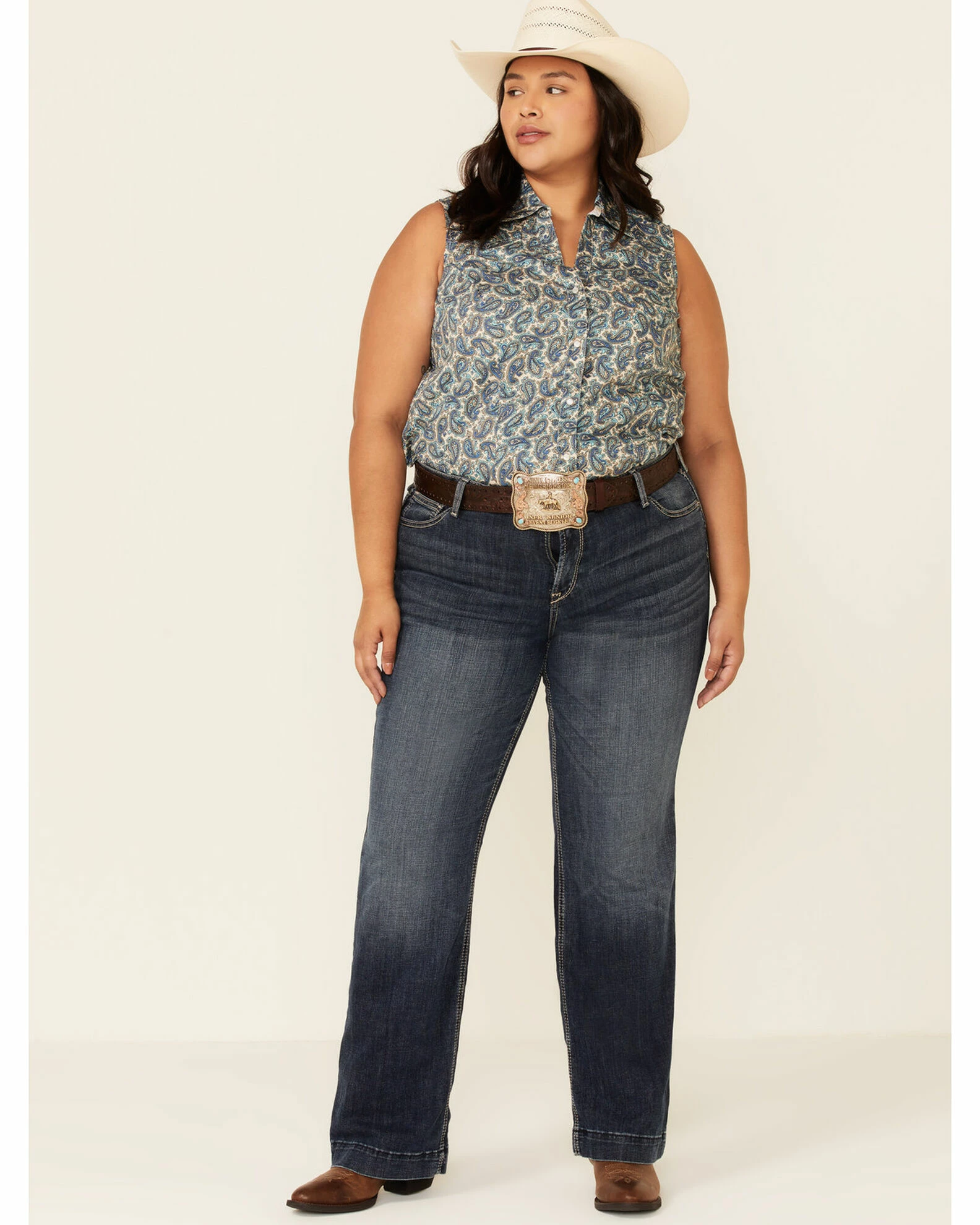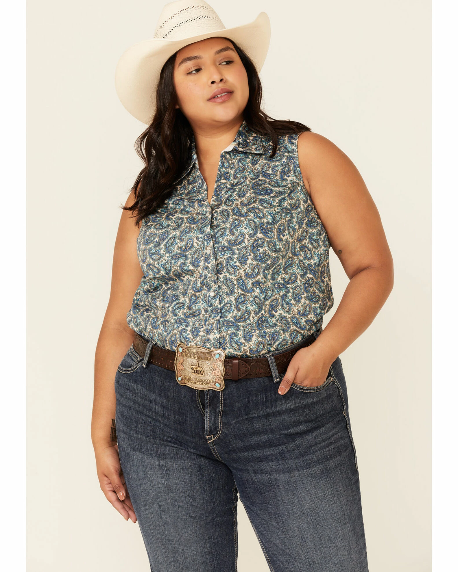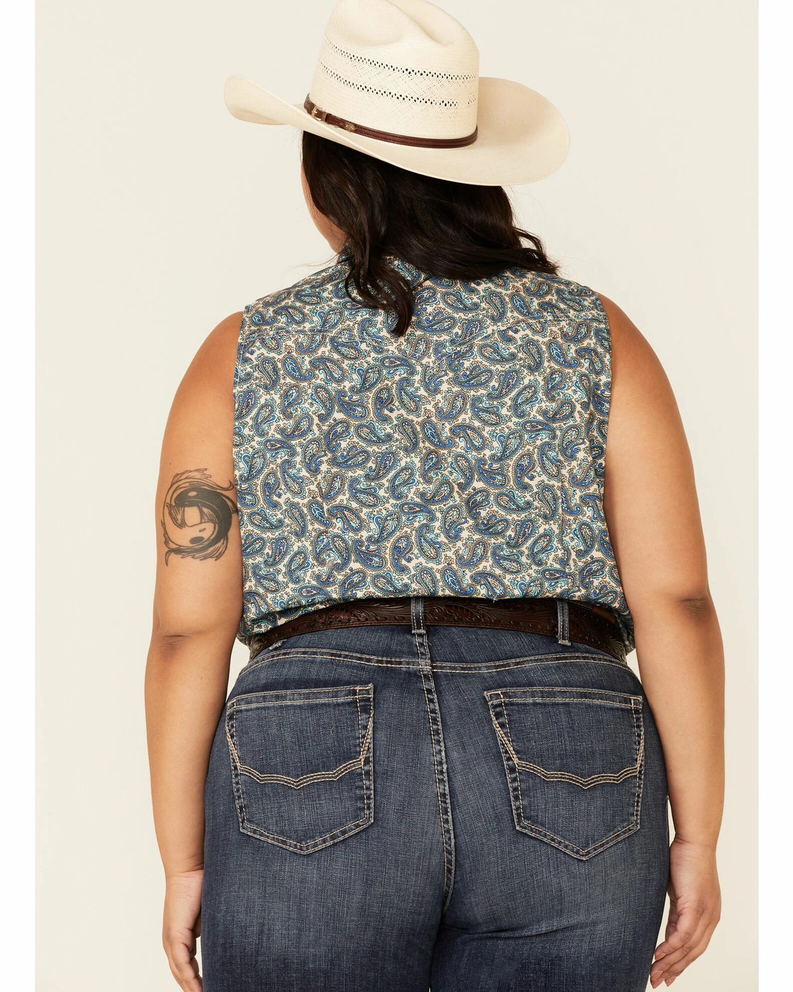 Roper Women’s Plaza Paisley Print Sleeveless Snap Western Core Shirt – Plus