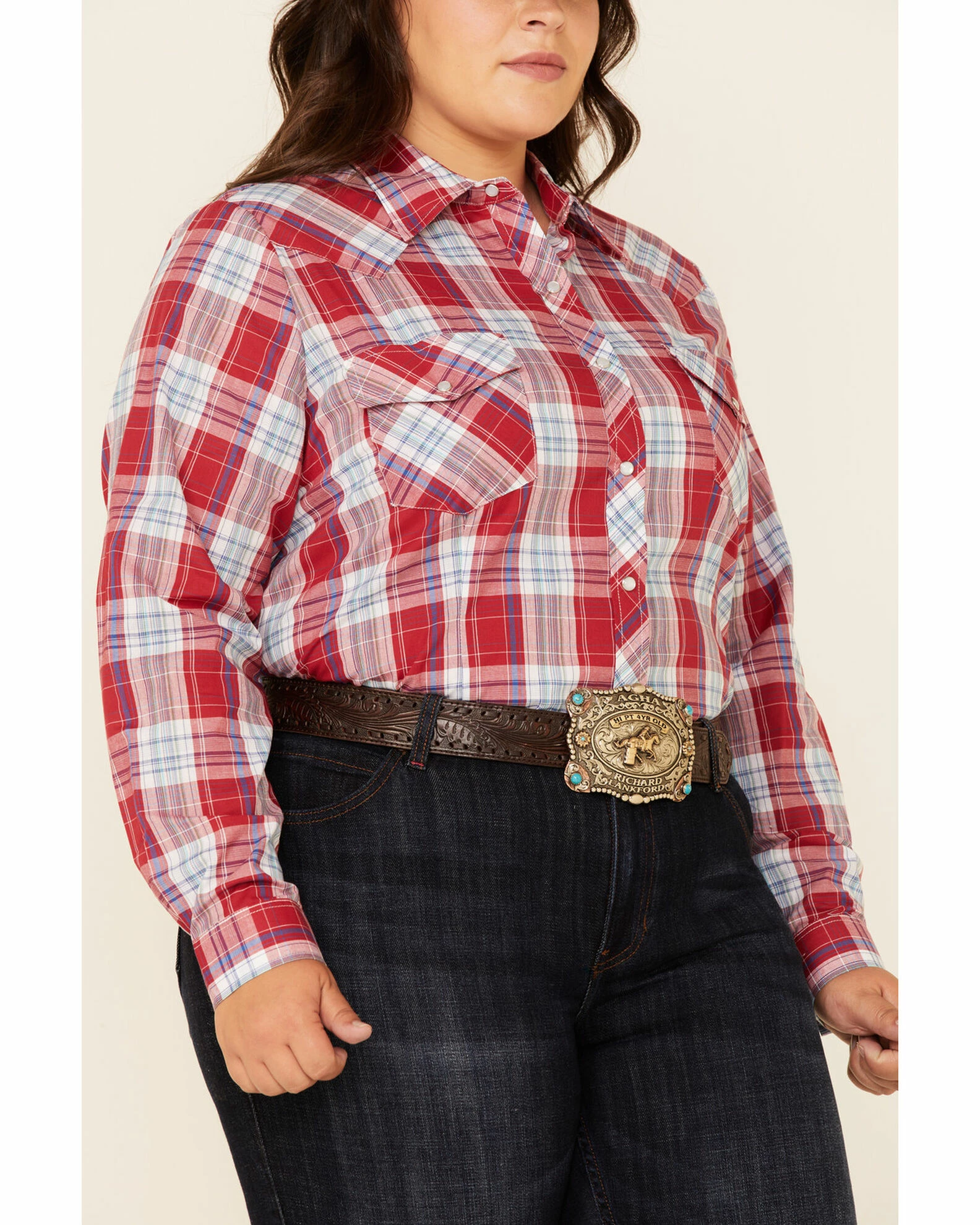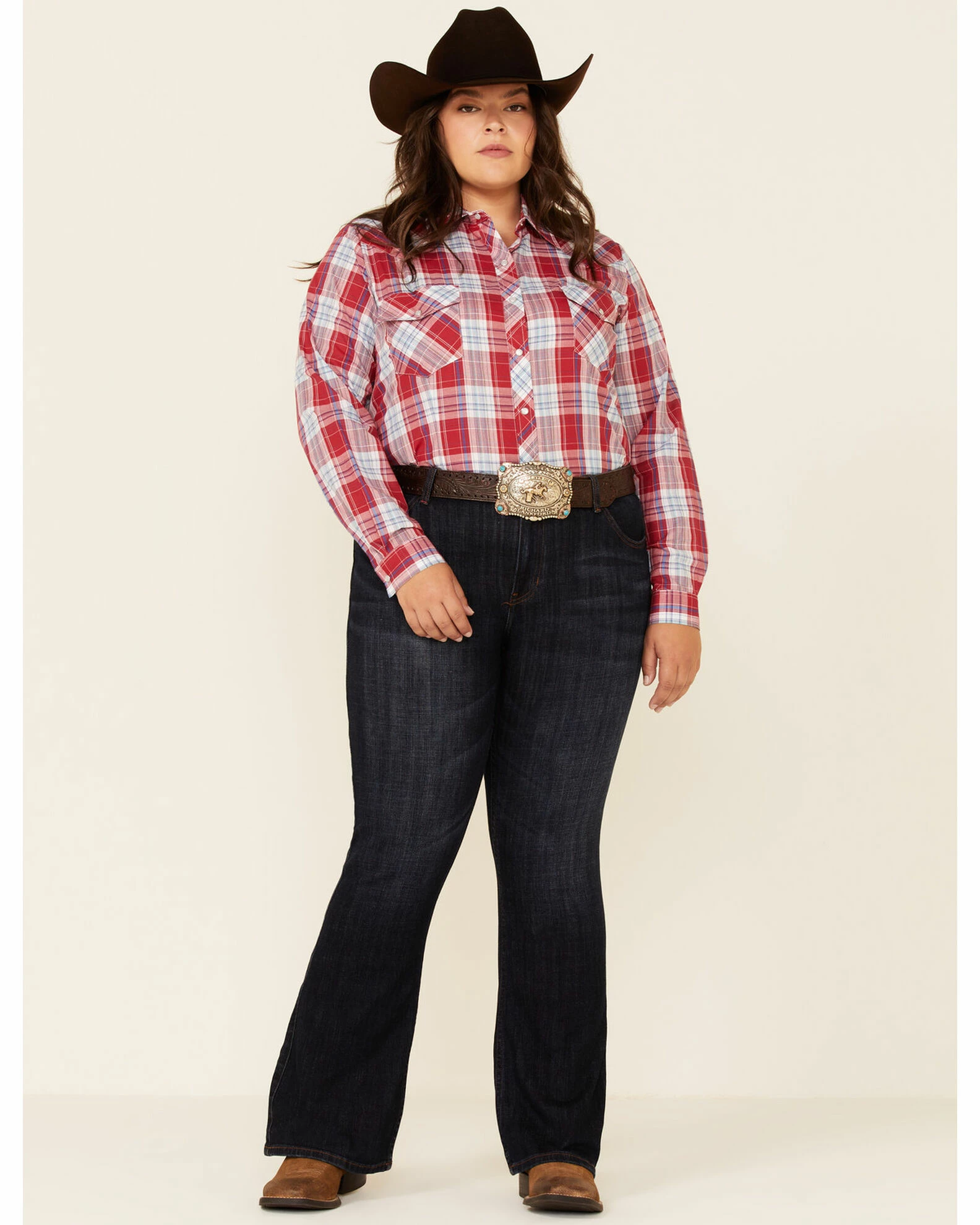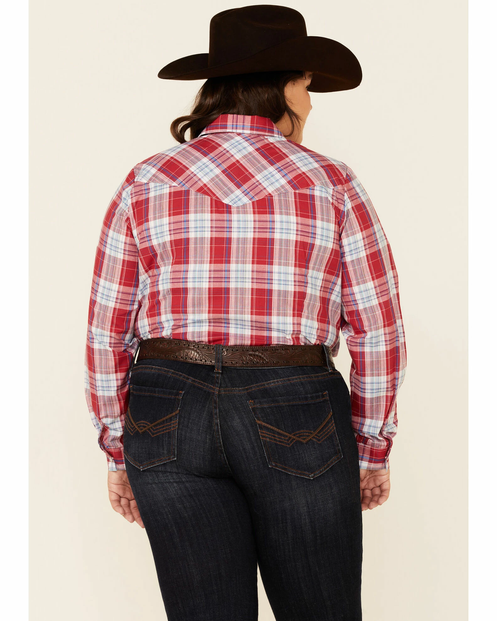 Roper Women’s Red Plaid Long Sleeve Snap Western Core Shirt – Plus