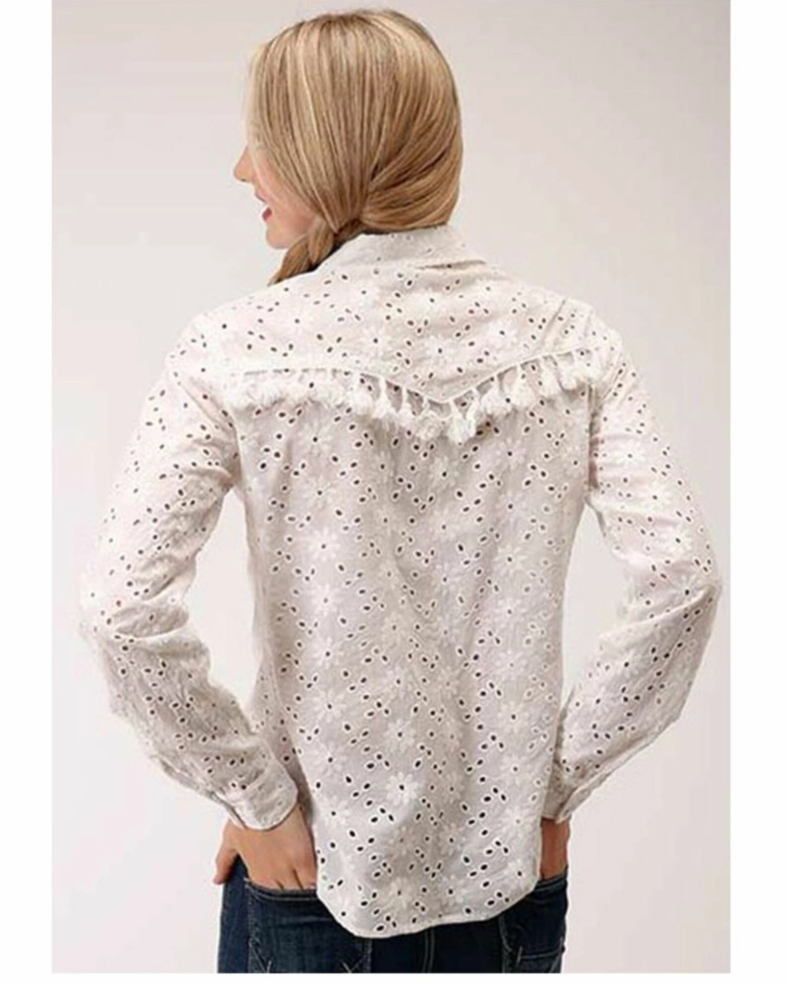 Roper Women’s White Floral Eyelet Long Sleeve Snap Western Shirt